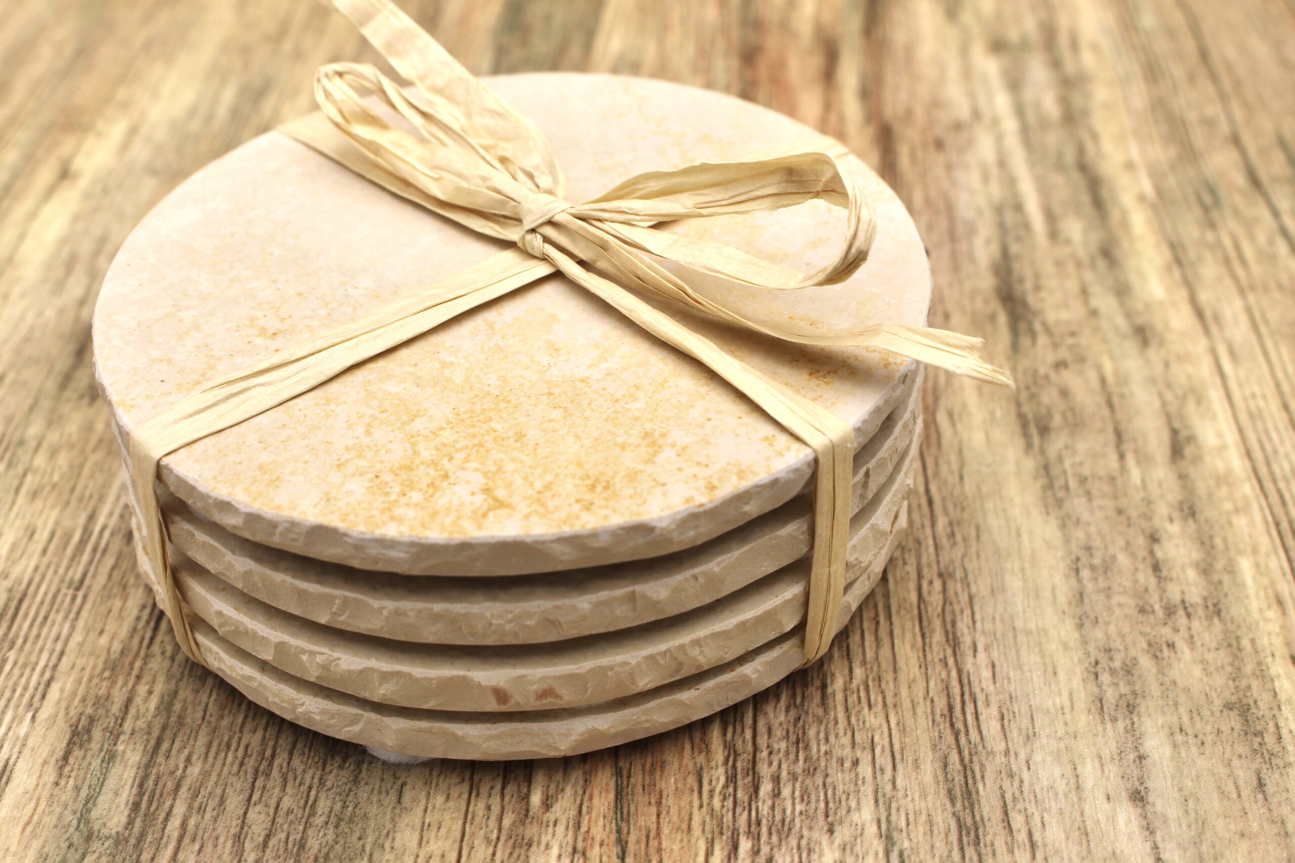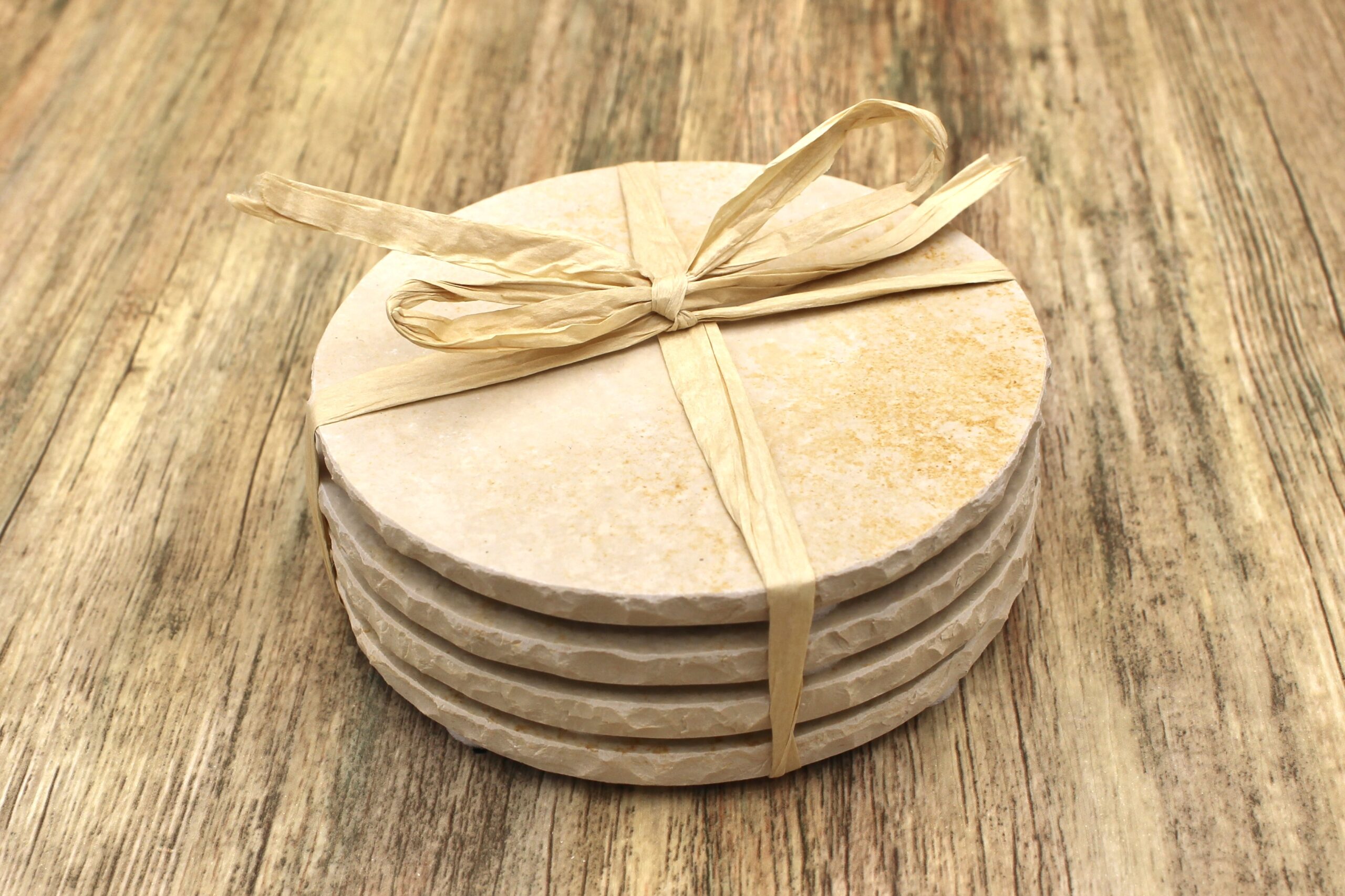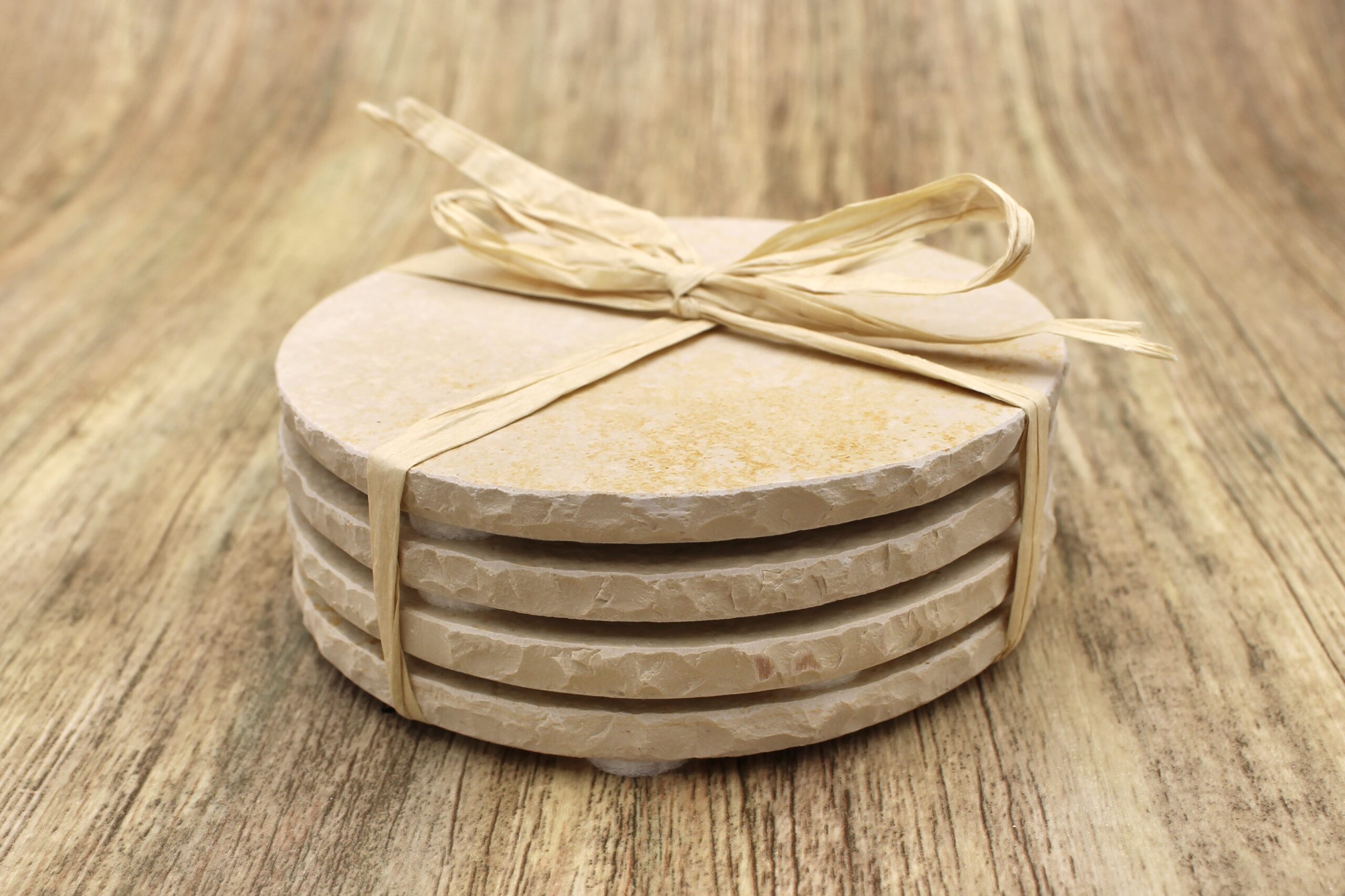 4er Set natürliche Färbung – Natursteinuntersetzer rund