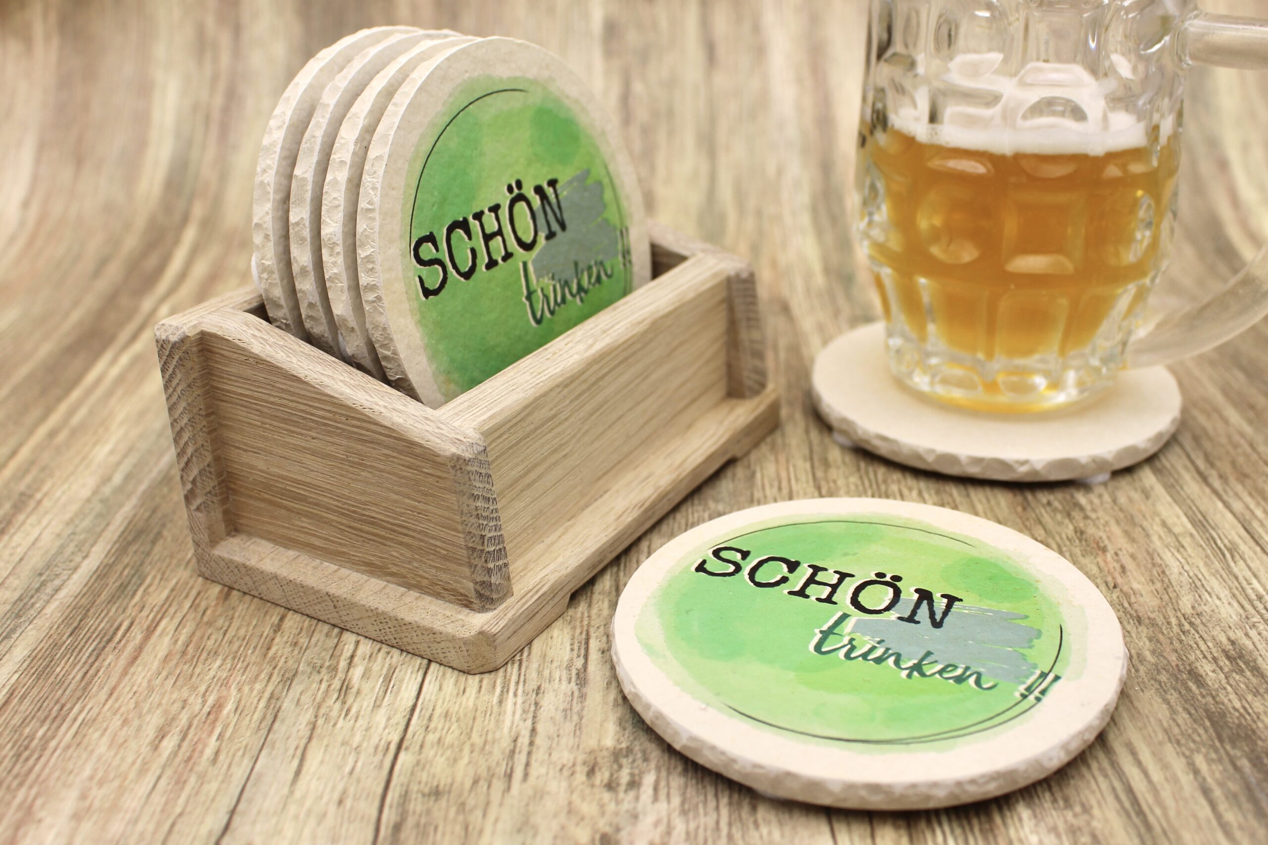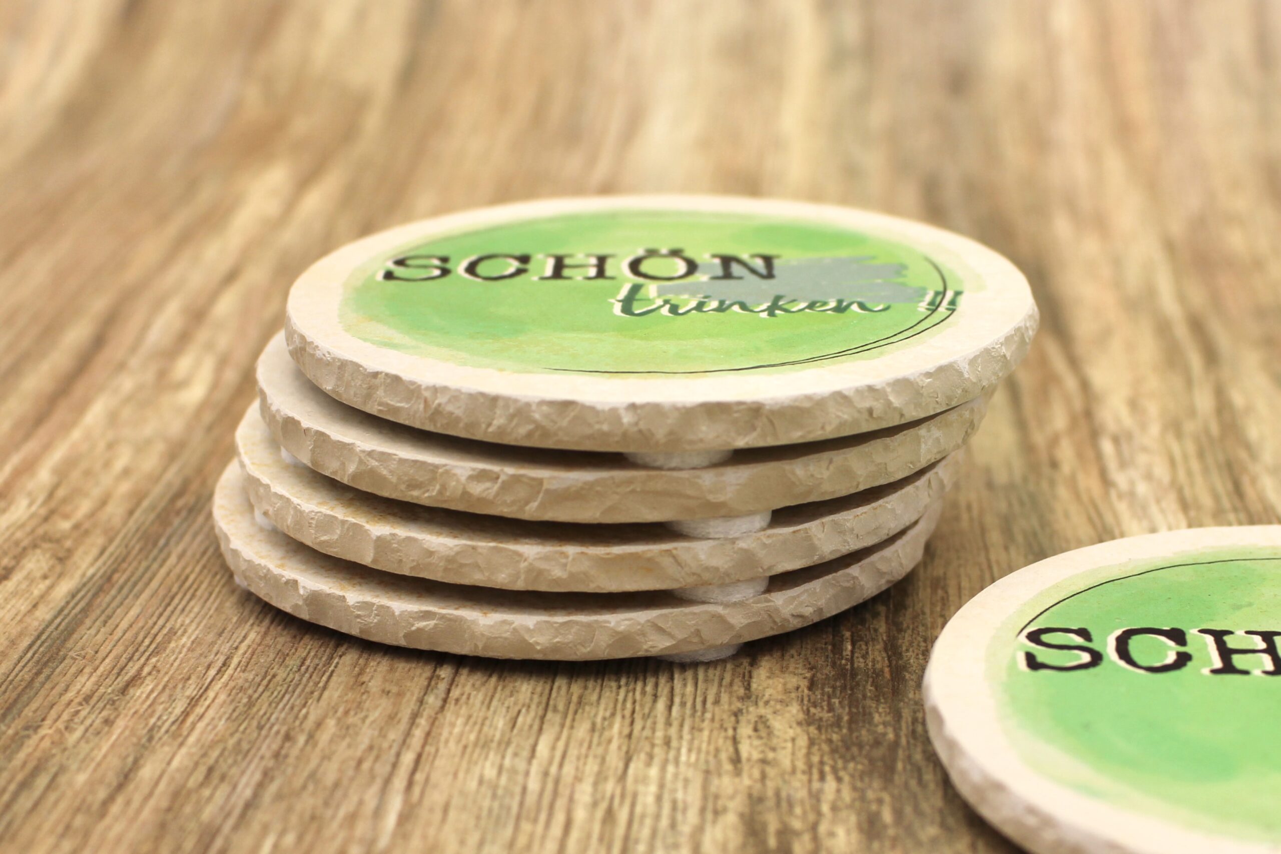 Untersetzer aus Naturstein mit dem Spruch „Schön Trinken“ ✓ Dein Fützl: ein persönliches Geschenk zur Hochzeit ✓ Echt biologisch: Aus Solnhofer Naturstein handgemacht in Bayern ➨ Jetzt bestellen!
