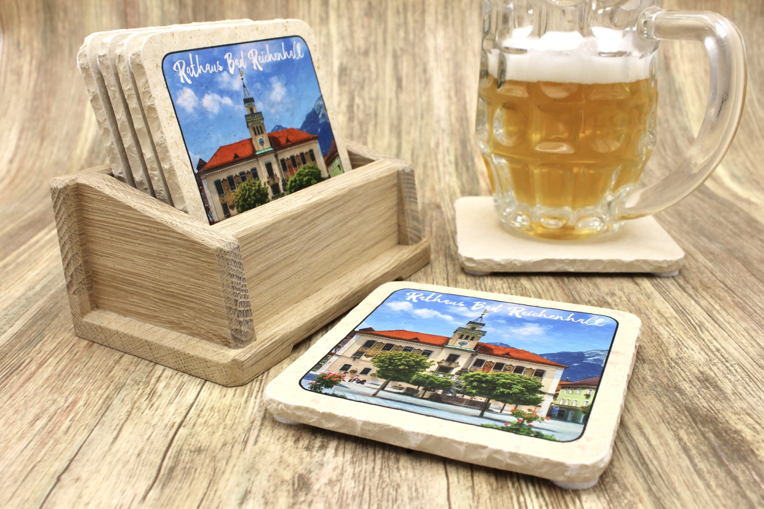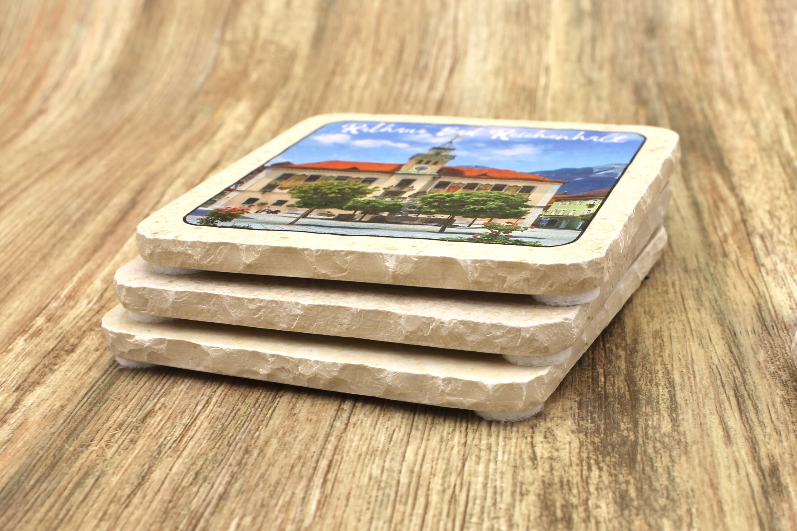 Untersetzer aus Naturstein mit dem Motiv Bad Reichenhall ✓ Dein Fützl: perfekt als Geschenk & Fanartikel & für Sammler ✓ Echt biologisch: Aus Solnhofer Naturstein handgemacht in Bayern ➨ Jetzt bestellen!