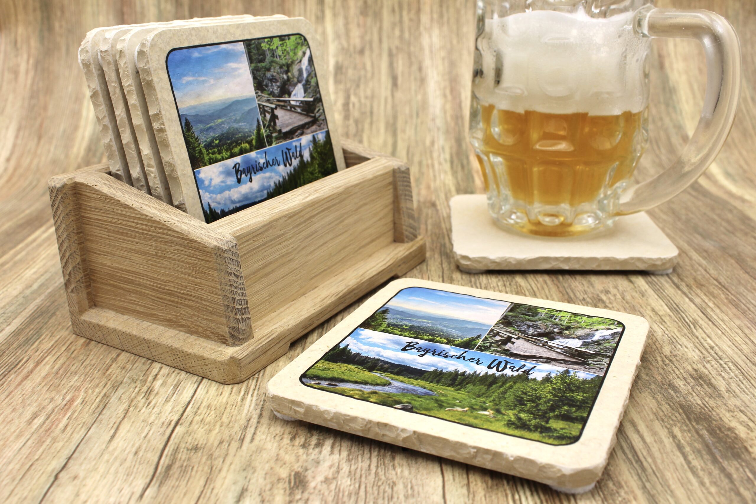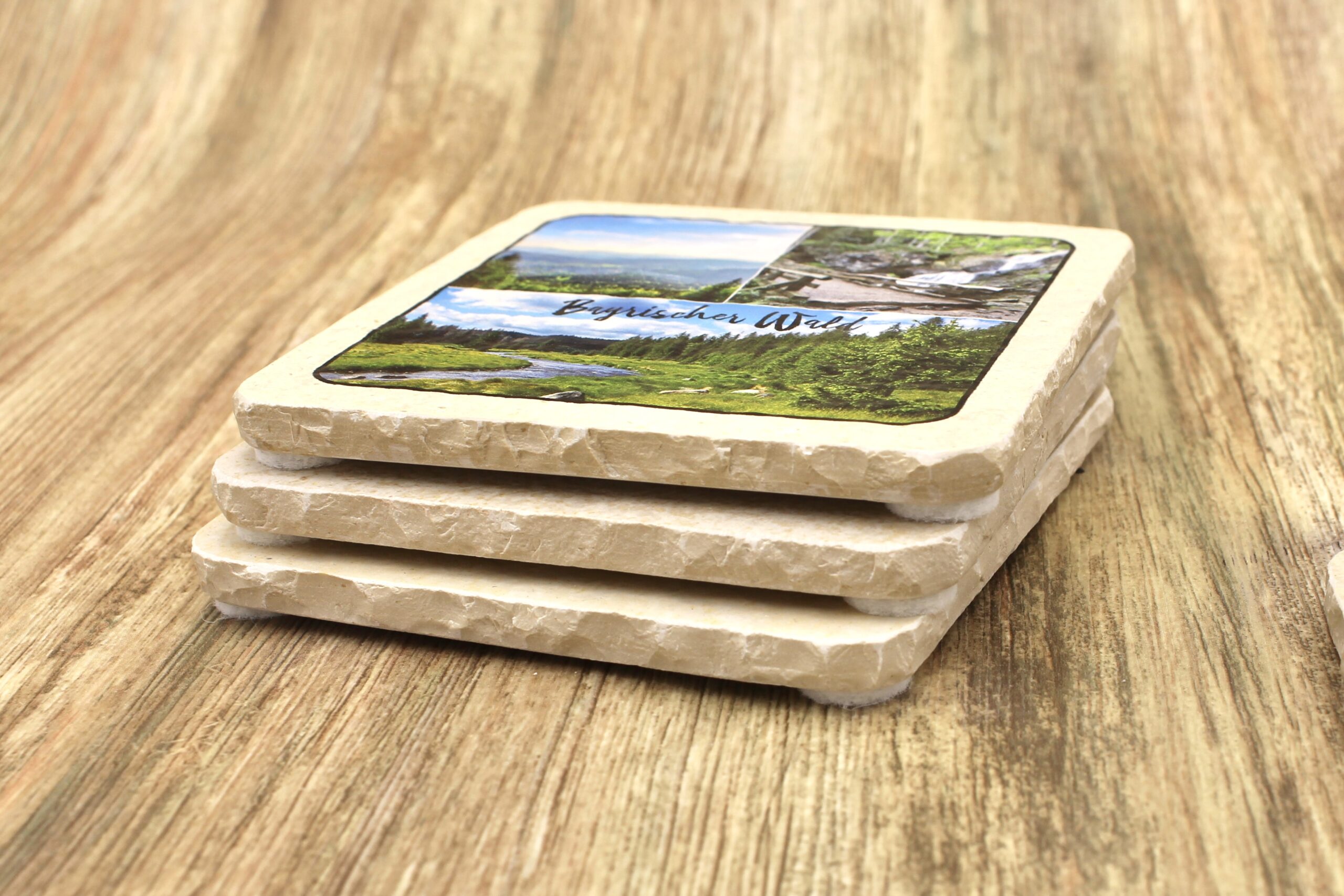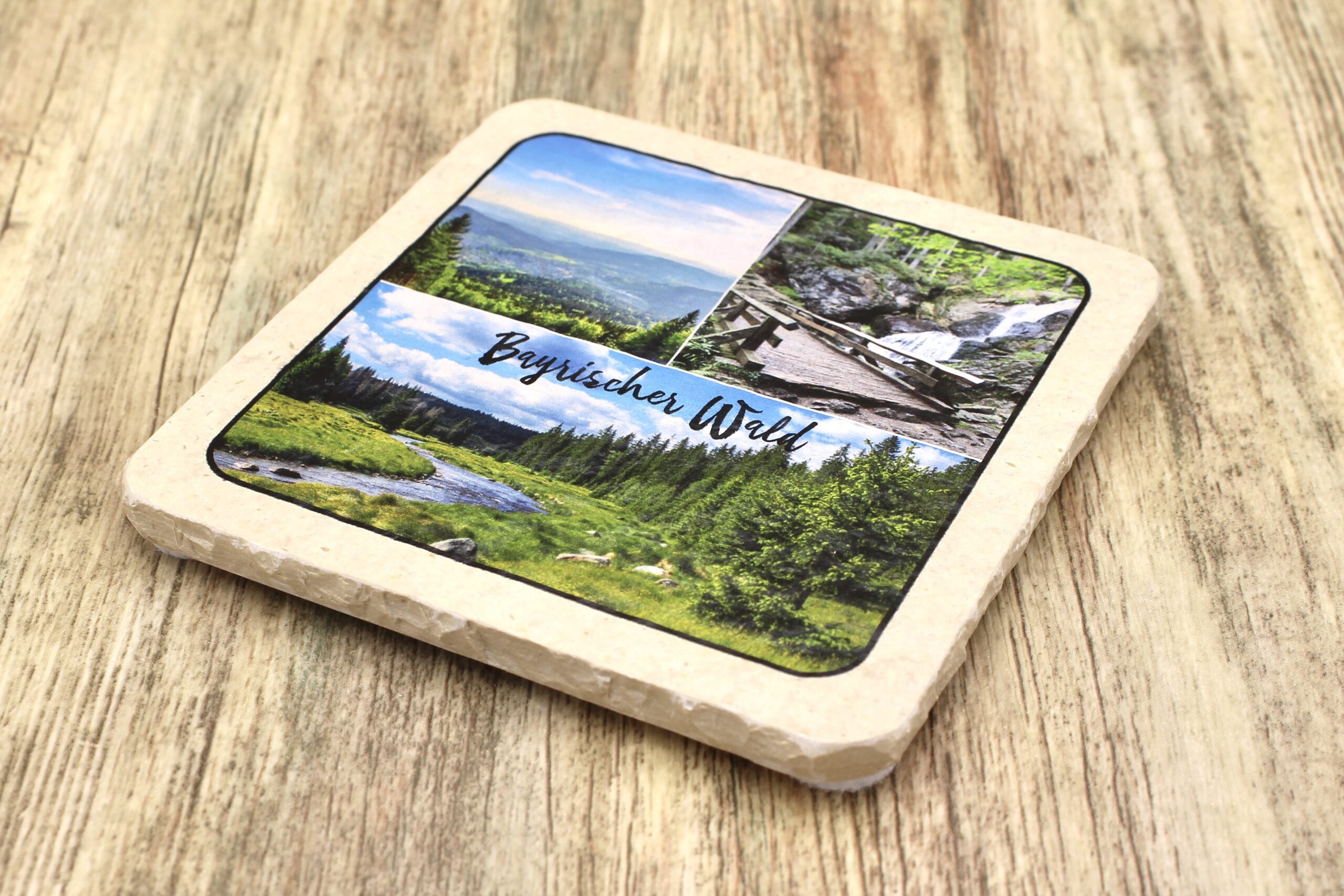 Untersetzer aus Naturstein mit dem Motiv Bayrischer Wald ✓ Dein Fützl: perfekt als Geschenk & Fanartikel & für Sammler ✓ Echt biologisch: Aus Solnhofer Naturstein handgemacht in Bayern ➨ Jetzt bestellen!