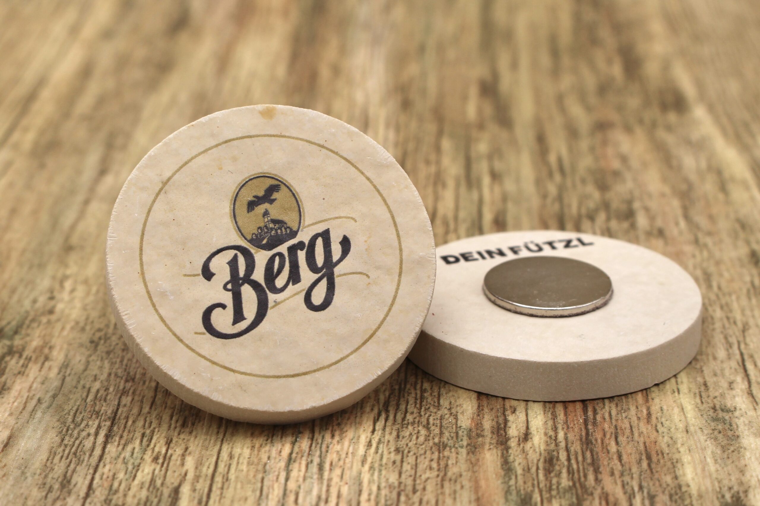 Magnet für den Kühlschrank aus Stein mit dem Logo der Brauerei Berg ✓ Dein Fützl: perfekt als Geschenk & Fanartikel ✓ Echt nachhaltig: Aus Solnhofer Naturstein handgemacht in Bayern ➨ Jetzt bestellen!