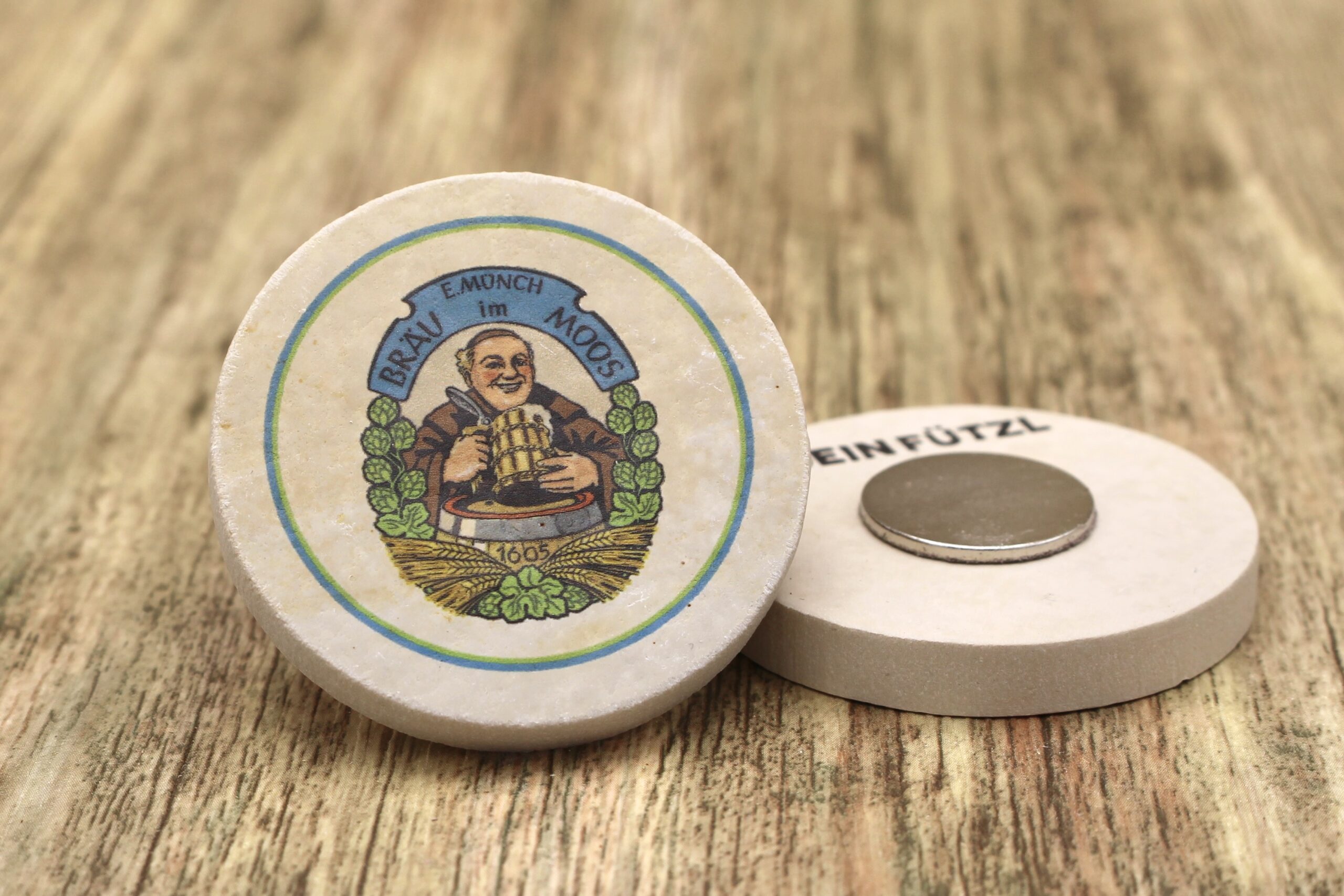 Magnet für den Kühlschrank aus Stein mit dem Logo vom Bräu im Moos ✓ Dein Fützl: perfekt als Geschenk & Fanartikel ✓ Echt nachhaltig: Aus Solnhofer Naturstein handgemacht in Bayern ➨ Jetzt bestellen!