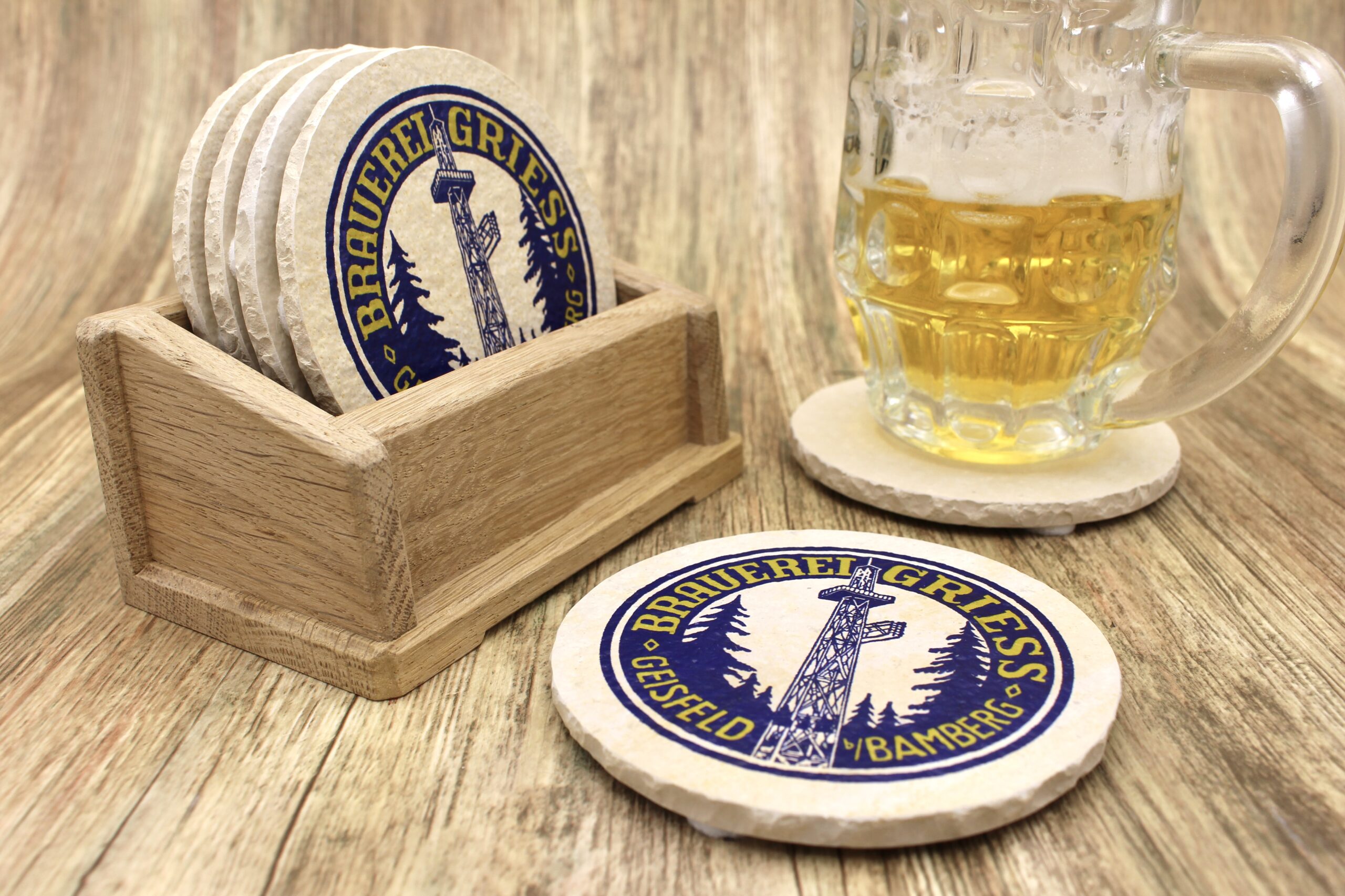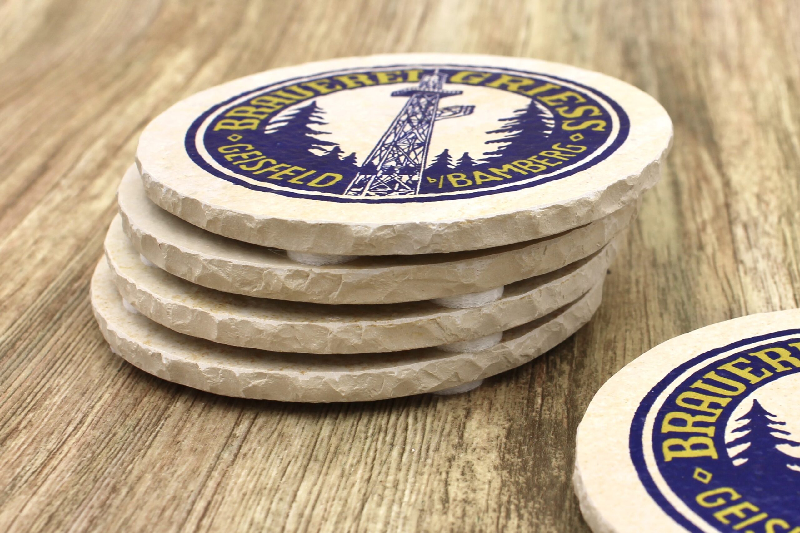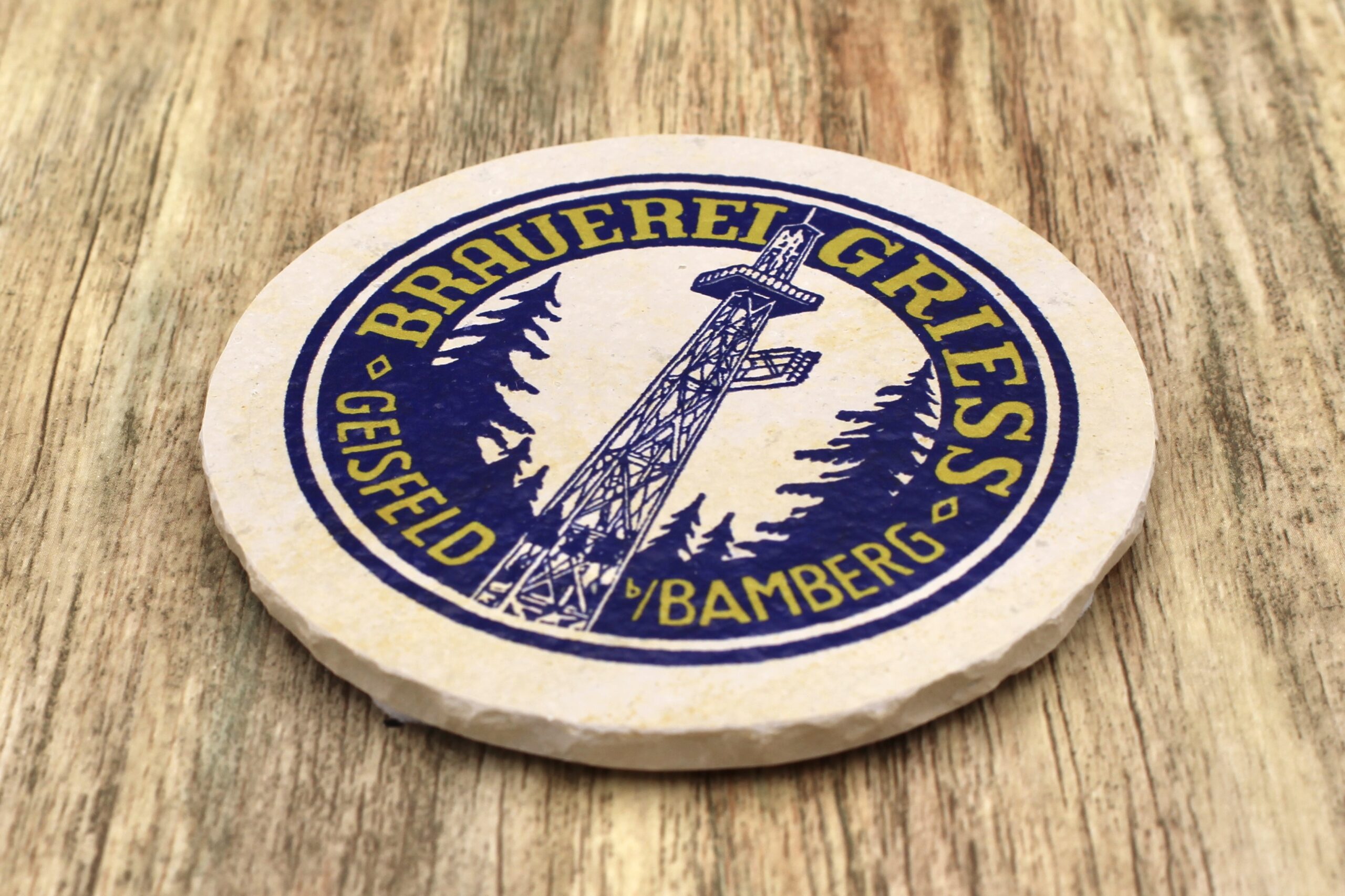 Bierdeckel aus Naturstein mit Logo der Brauerei Griess in Geisfeld ✓ Dein Fützl: perfekt als Geschenk & Fanartikel & für Sammler ✓ Echt biologisch: Aus Solnhofer Naturstein handgemacht in Bayern ➨ Jetzt bestellen!