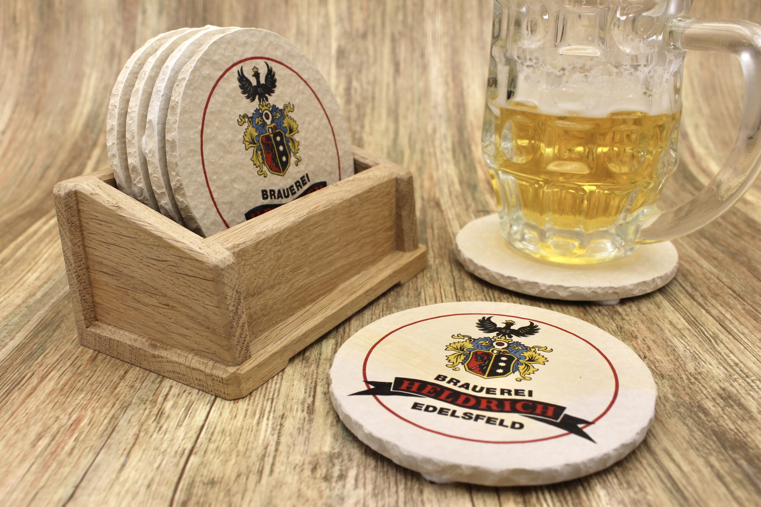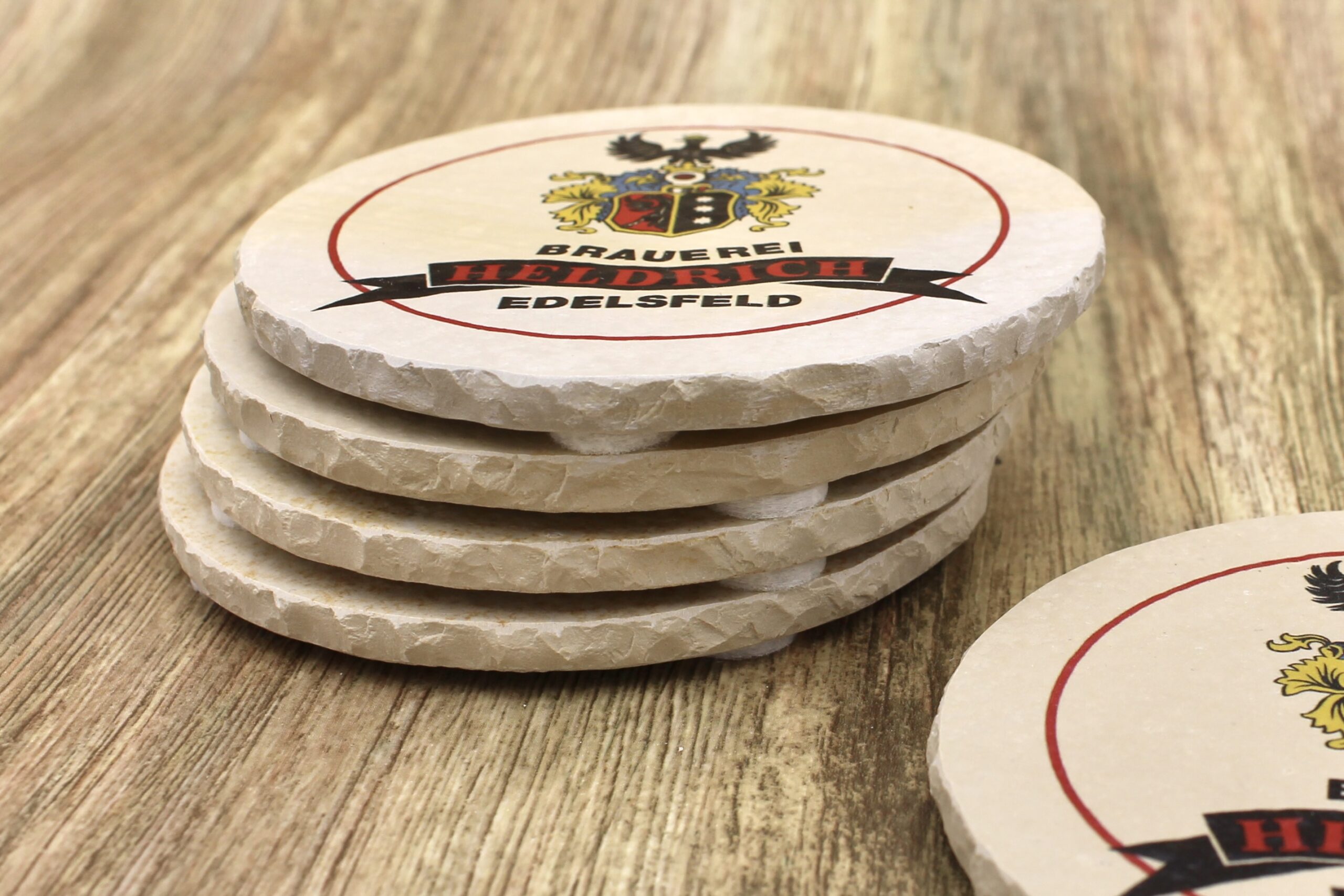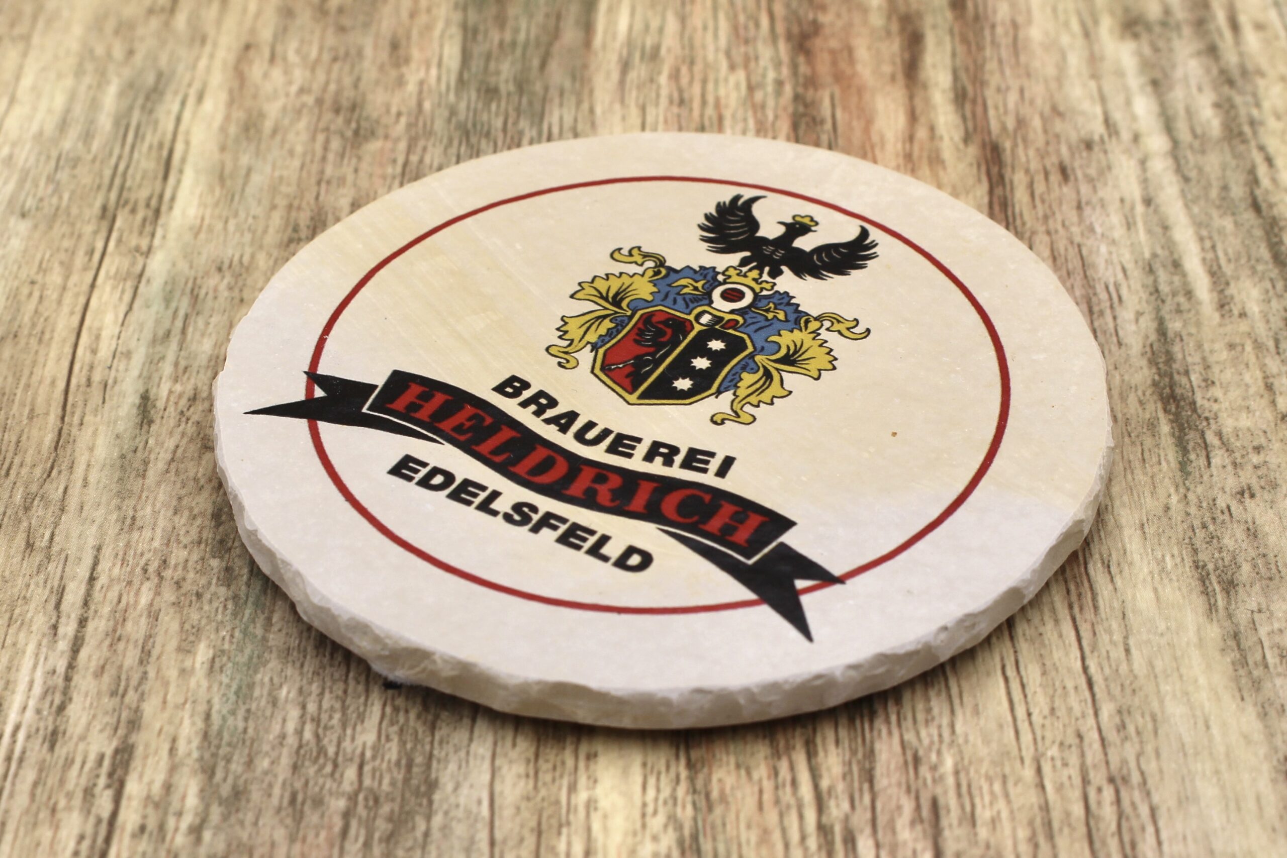 Bierdeckel aus Naturstein mit Logo der Brauerei Heldrich in Edelsfeld ✓ Dein Fützl: perfekt als Geschenk & Fanartikel & für Sammler ✓ Echt biologisch: Aus Solnhofer Naturstein handgemacht in Bayern ➨ Jetzt bestellen!