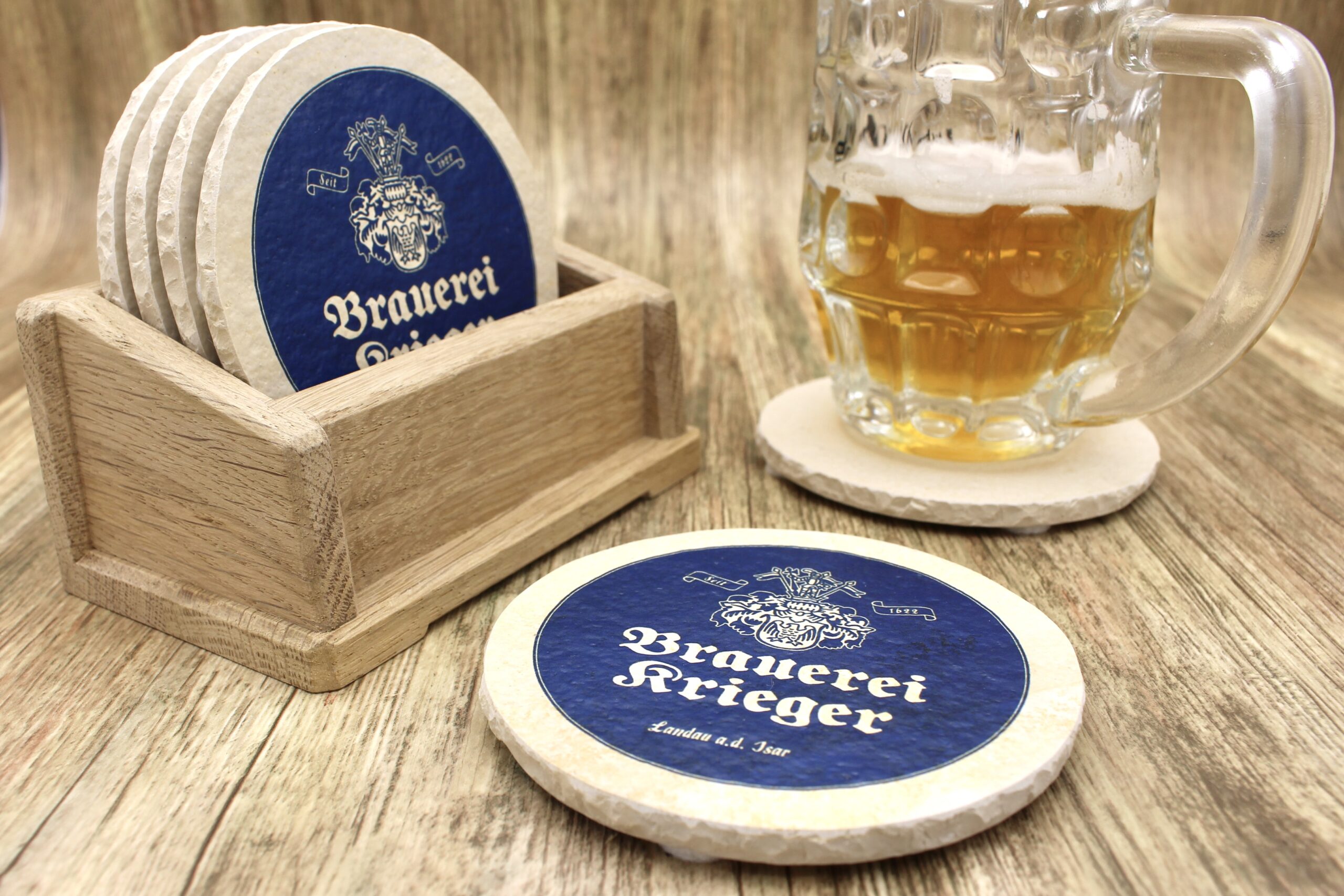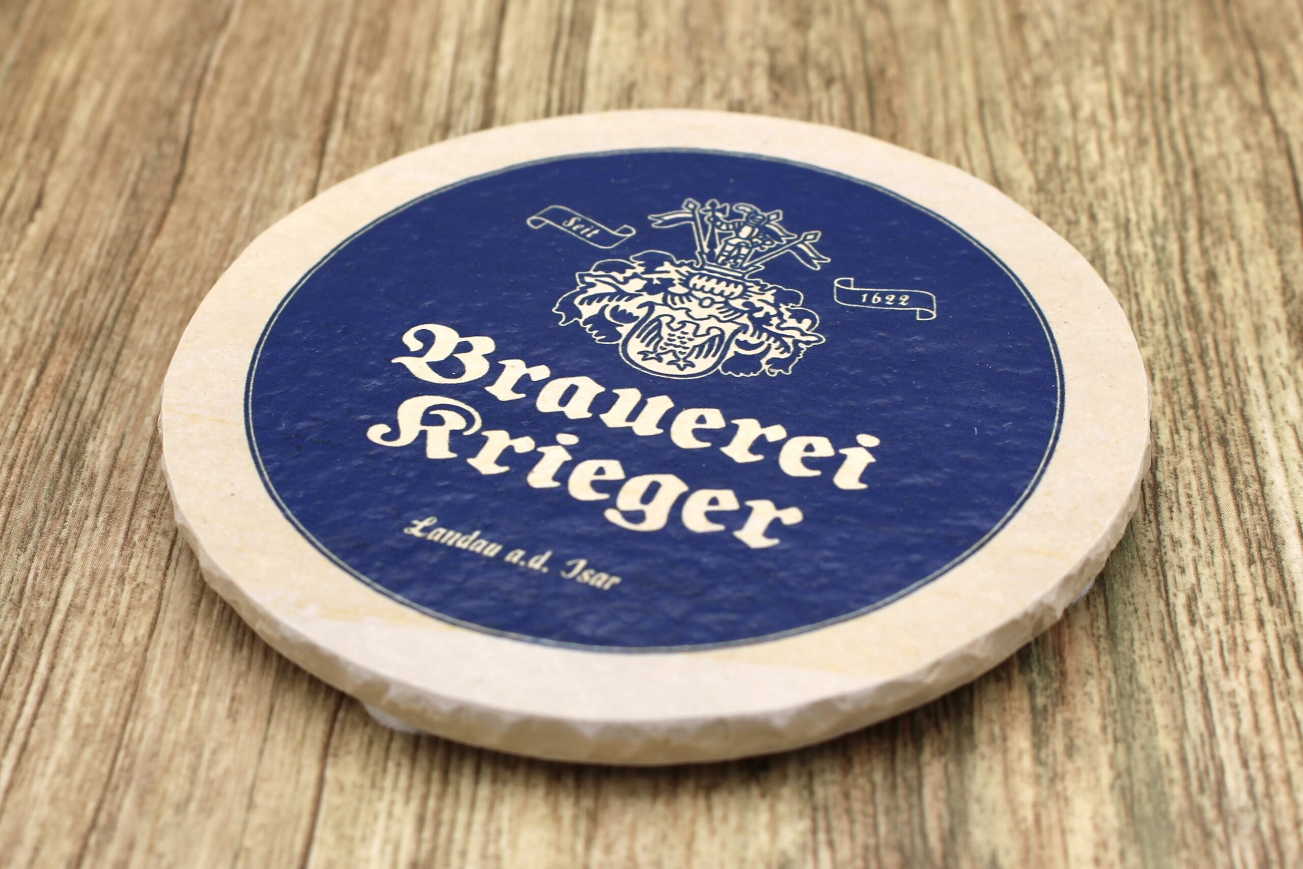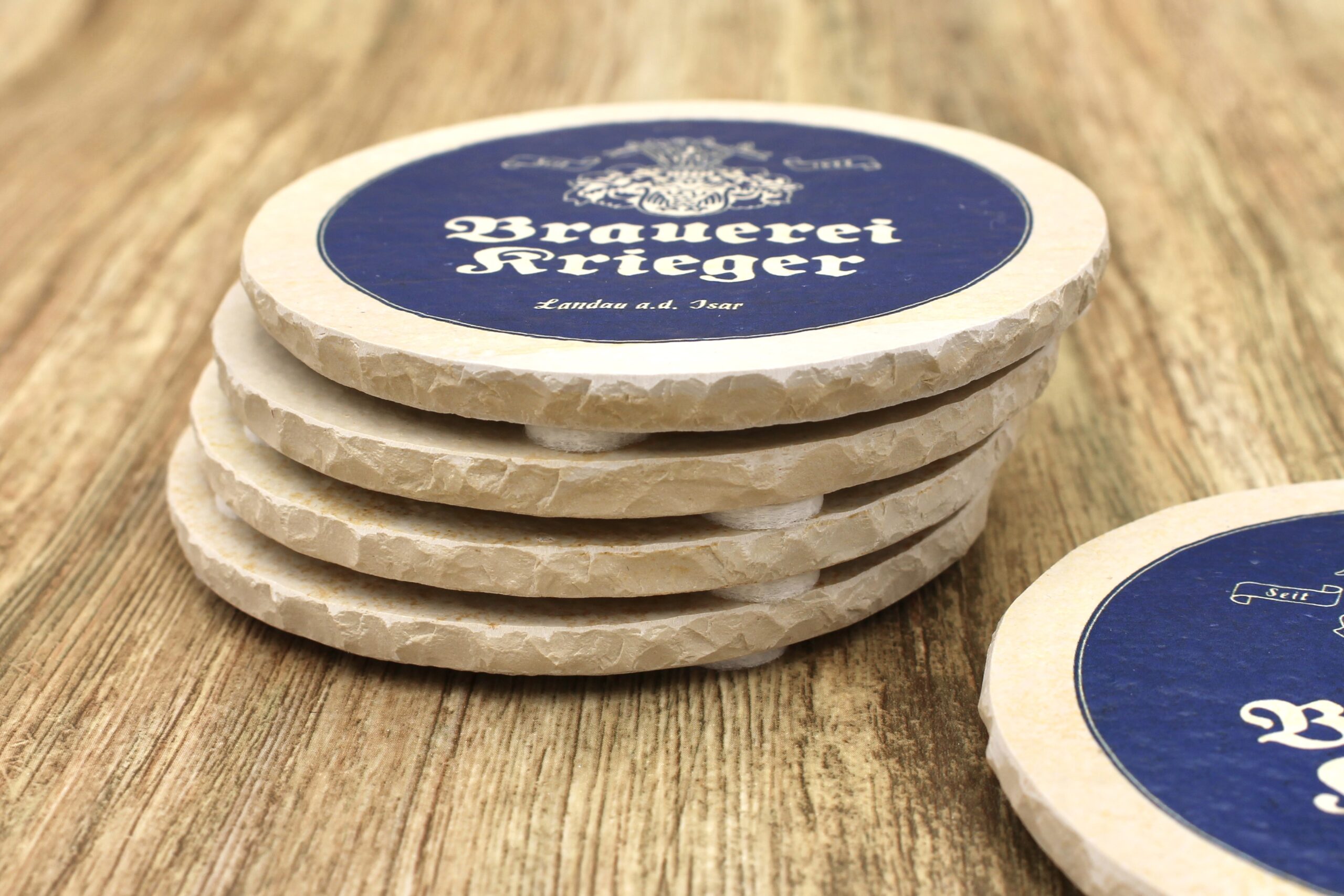 Bierdeckel aus Naturstein mit Logo der Brauerei Krieger aus Landau ✓ Dein Fützl: perfekt als Geschenk & Fanartikel & für Sammler ✓ Echt biologisch: Aus Solnhofer Naturstein handgemacht in Bayern ➨ Jetzt bestellen!