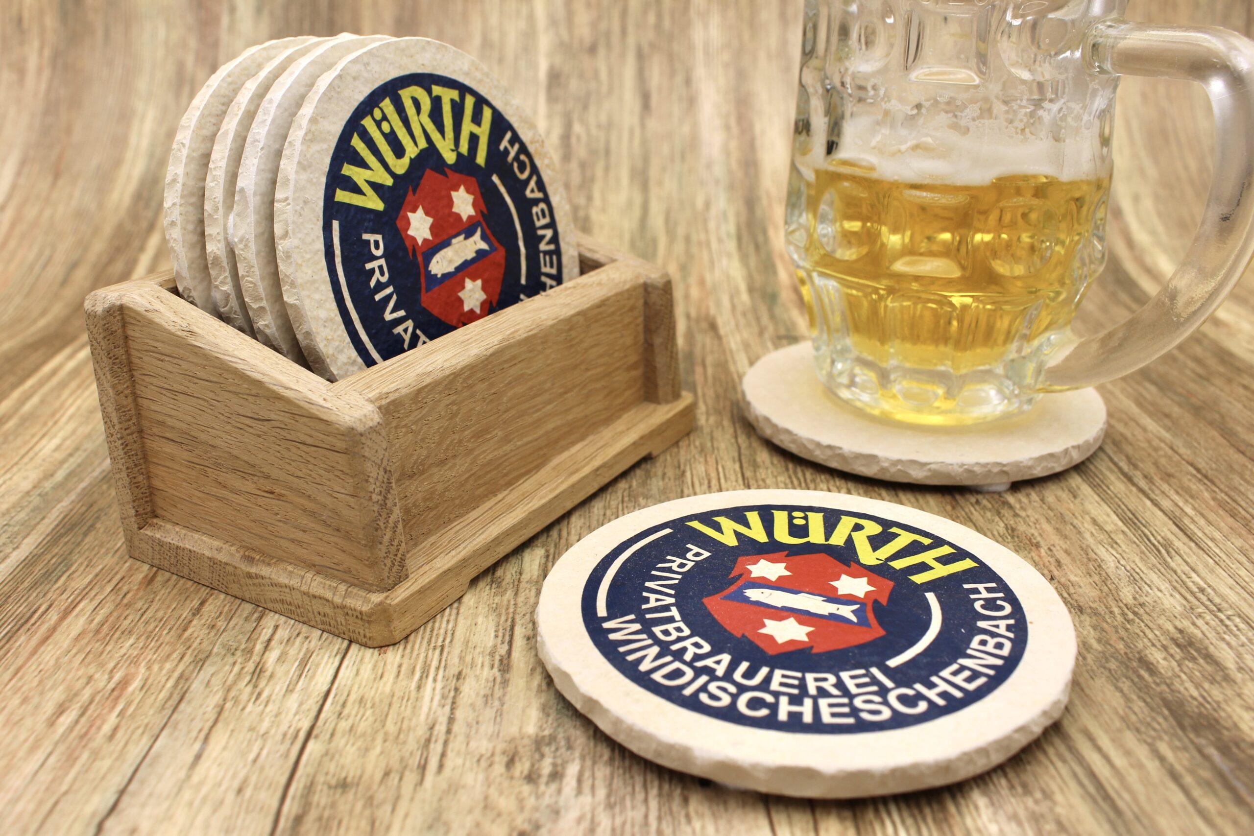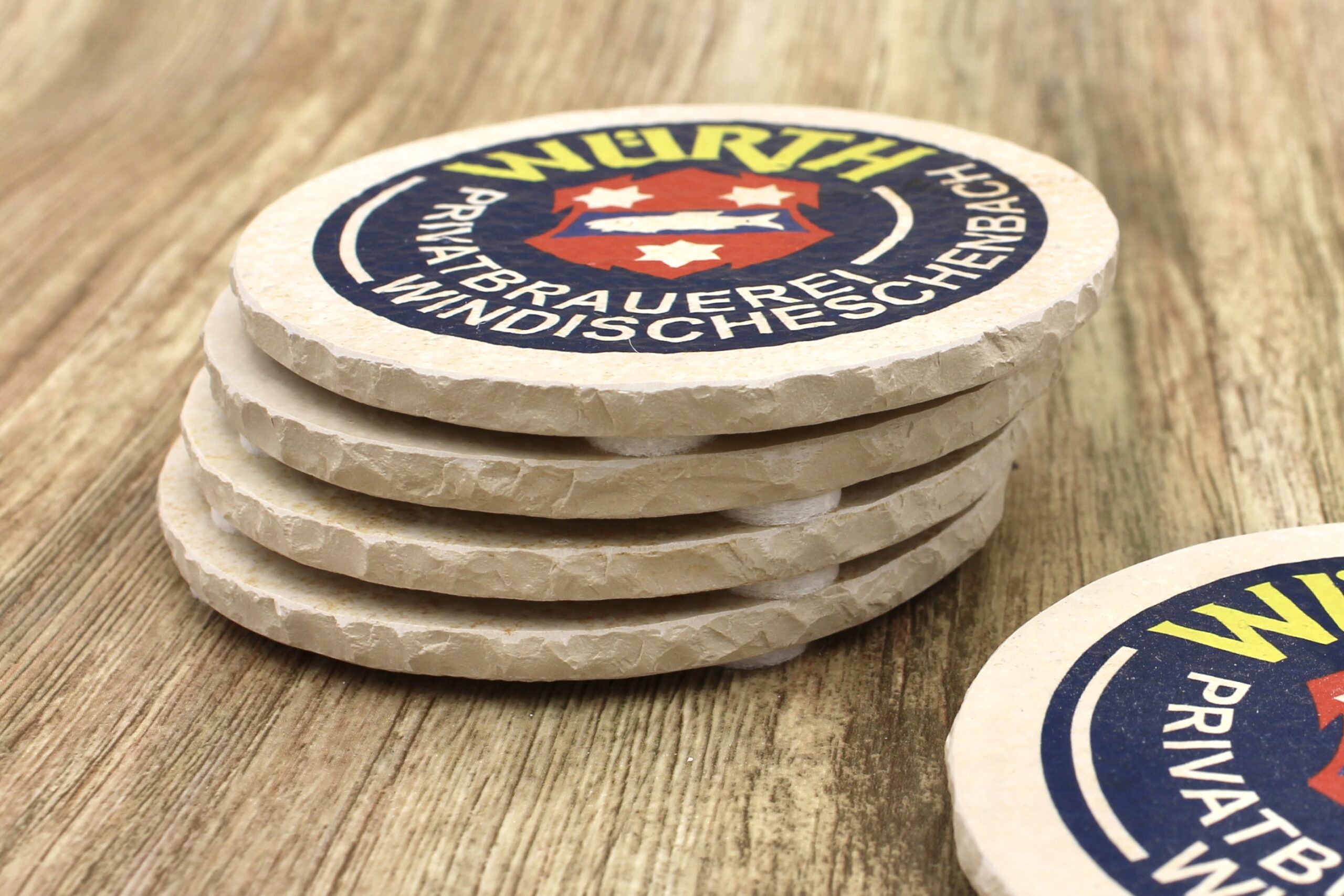 Bierdeckel aus Naturstein mit Logo der Brauerei Würth aus Windischeschenbach ✓ Dein Fützl: perfekt als Geschenk & Fanartikel & für Sammler ✓ Echt biologisch: Aus Solnhofer Naturstein handgemacht in Bayern ➨ Jetzt bestellen!