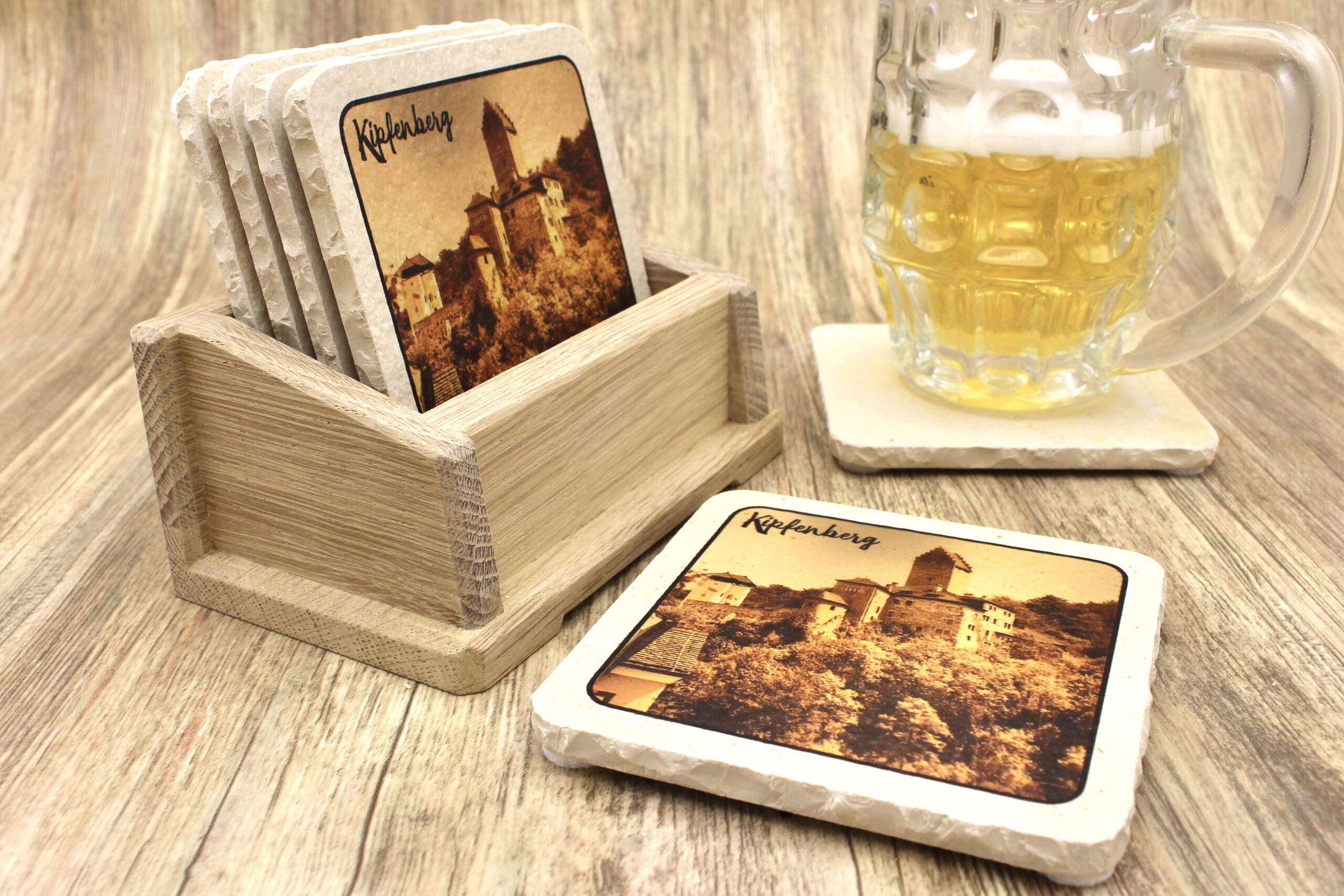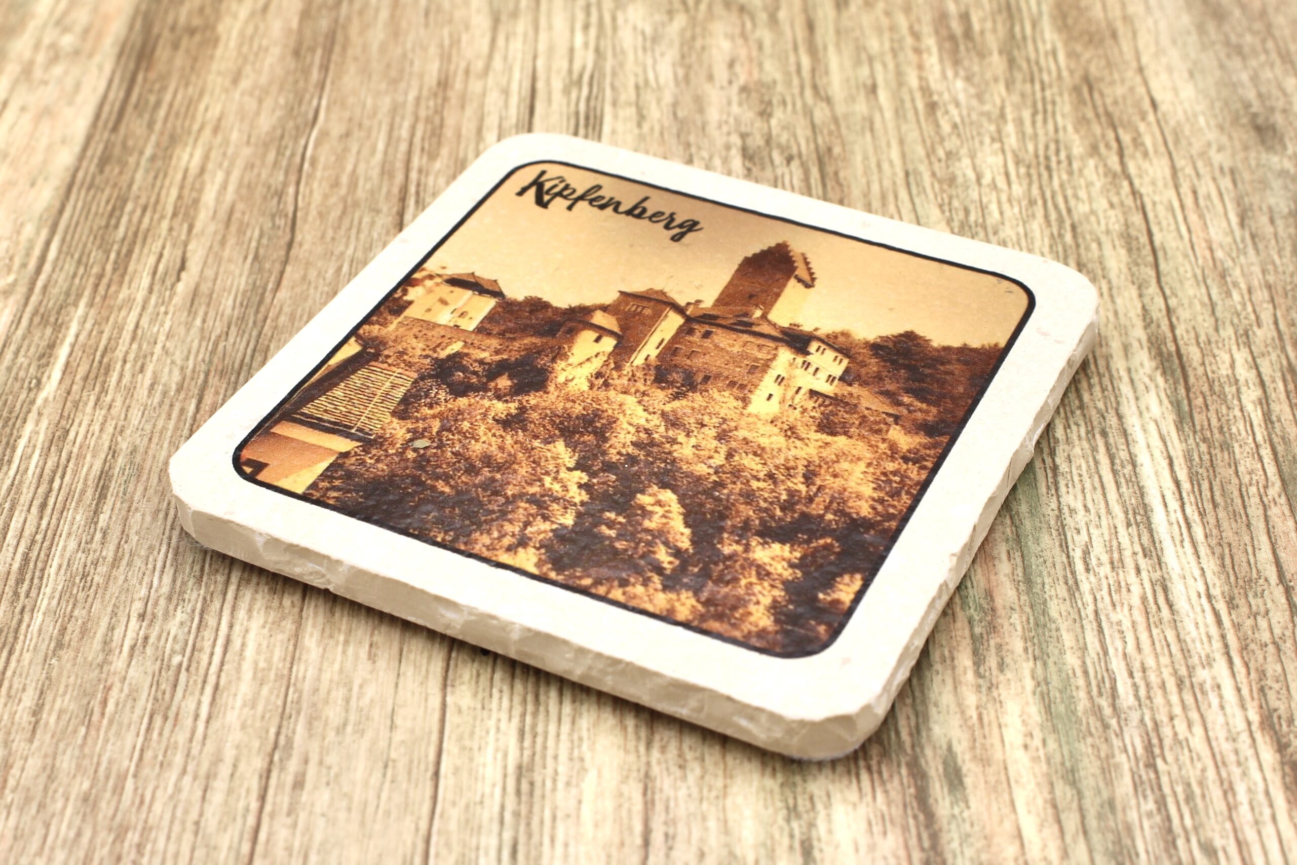 Untersetzer aus Naturstein mit dem Motiv der Burg in Kipfenberg ✓ Dein Fützl: perfekt als Geschenk & Fanartikel & für Sammler ✓ Echt biologisch: Aus Solnhofer Naturstein handgemacht in Bayern ➨ Jetzt bestellen!