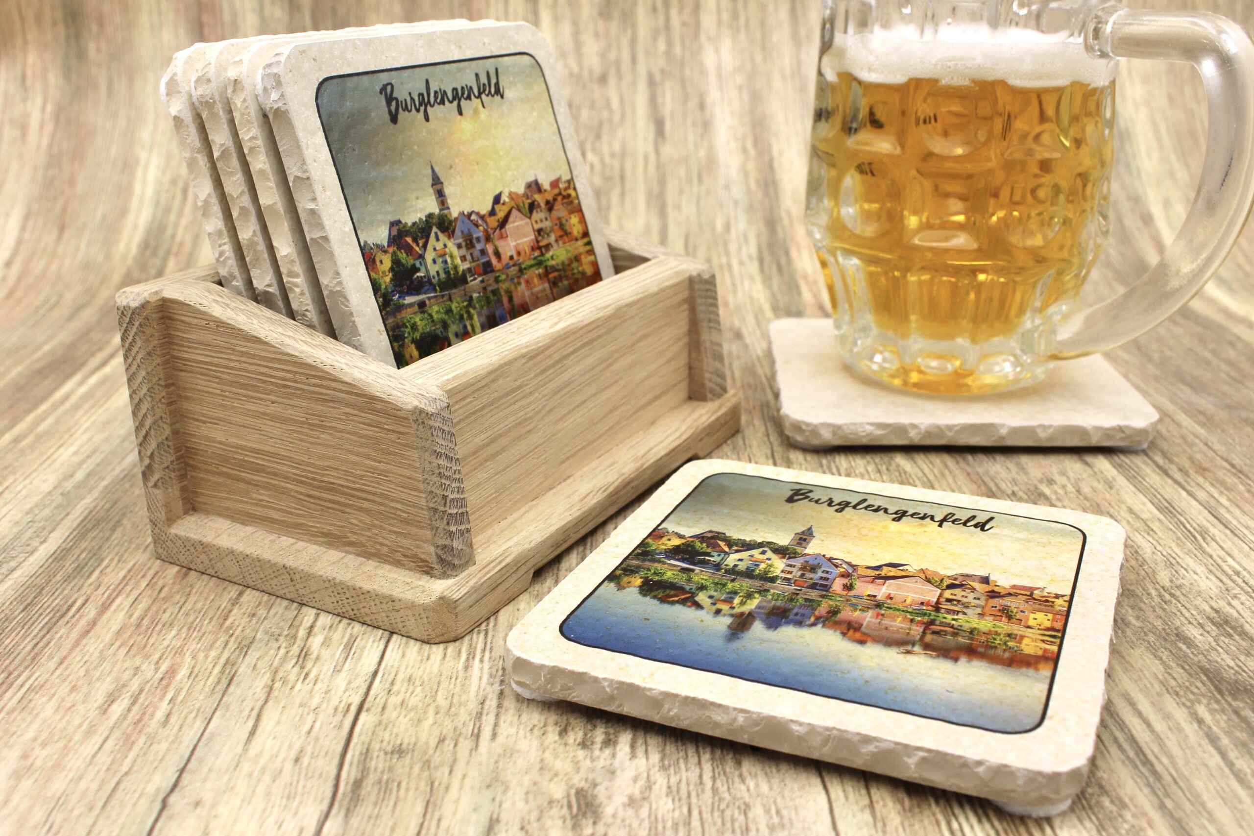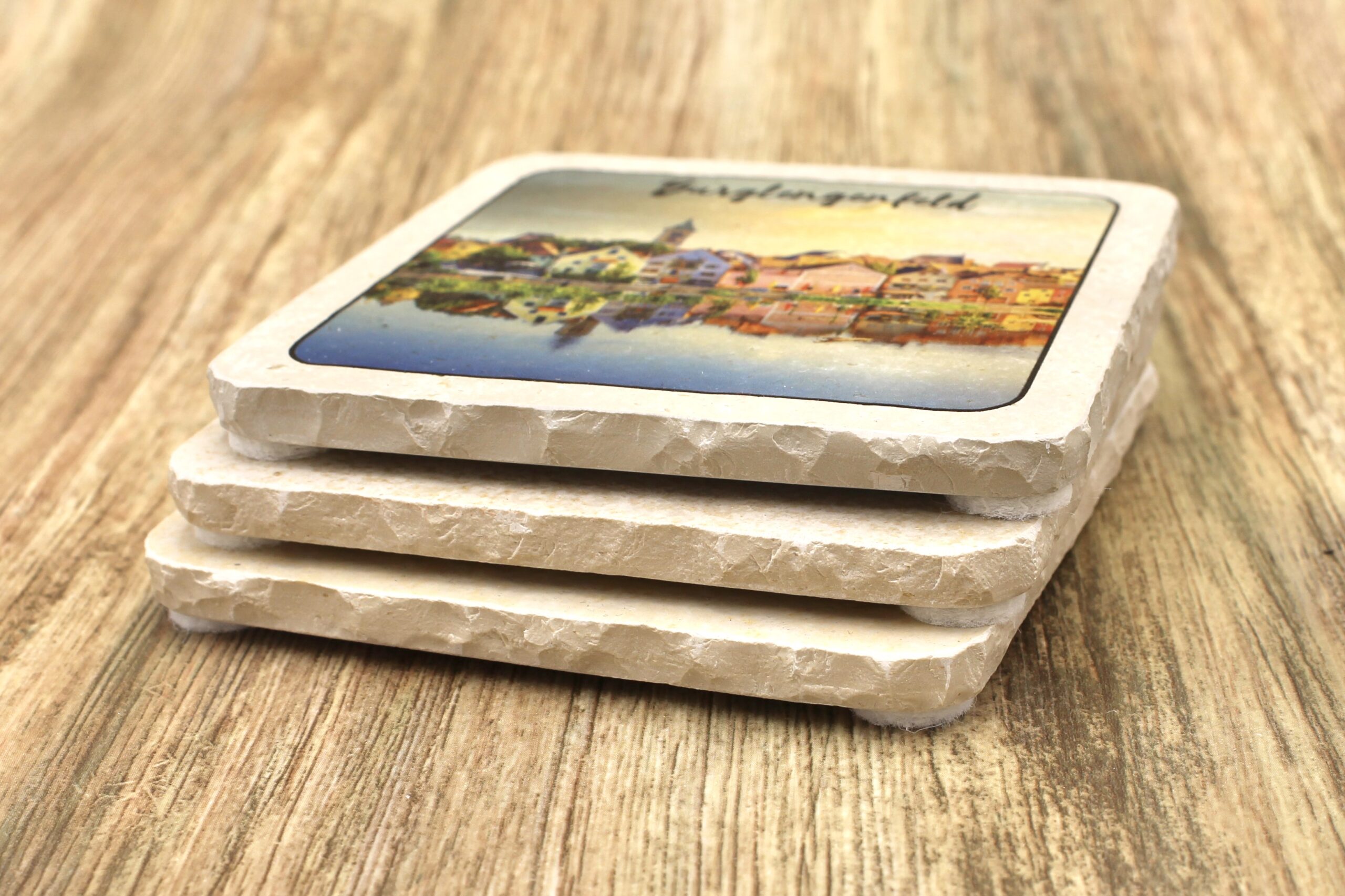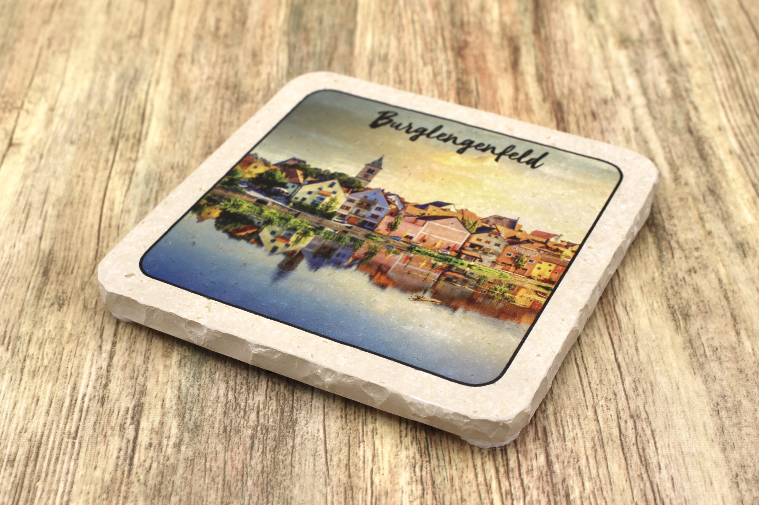 Untersetzer aus Naturstein mit dem Motiv Burglengenfeld ✓ Dein Fützl: perfekt als Geschenk & Fanartikel & für Sammler ✓ Echt biologisch: Aus Solnhofer Naturstein handgemacht in Bayern ➨ Jetzt bestellen!