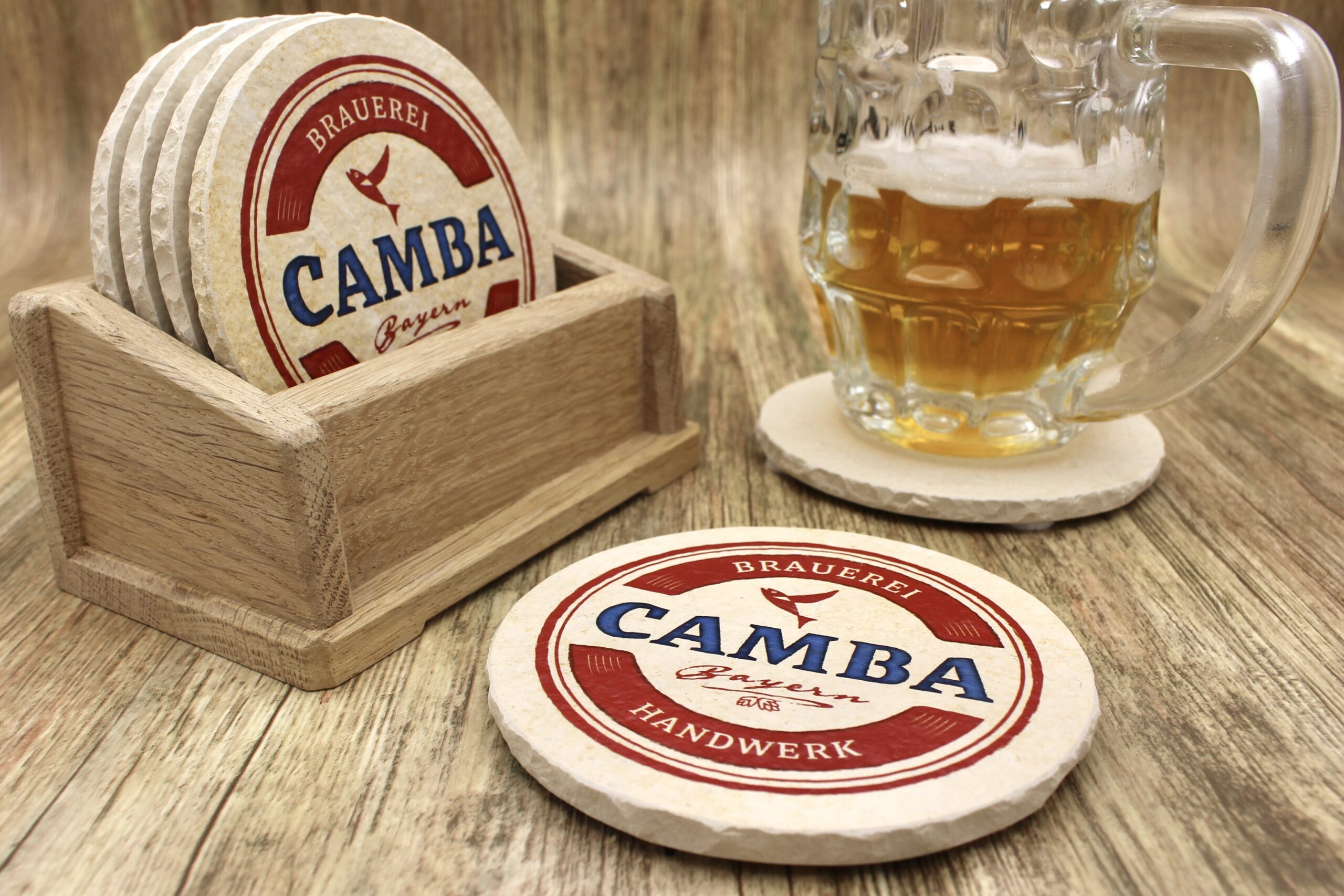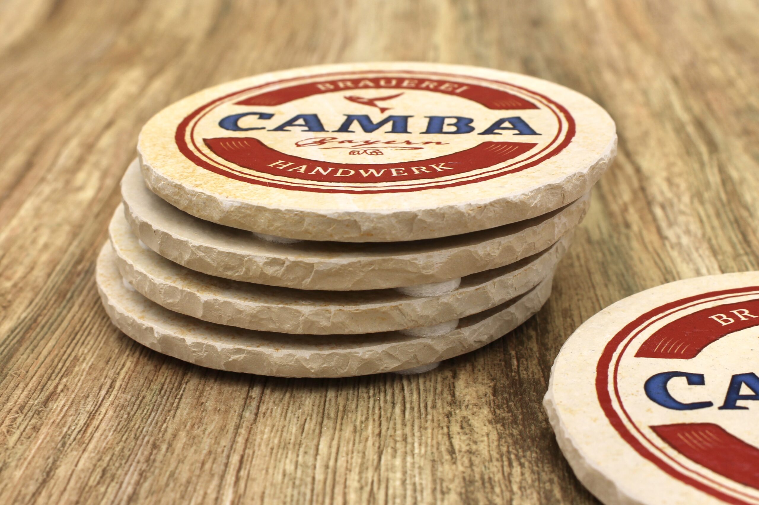 Bierdeckel aus Naturstein mit Logo des Camba Bavaria Biers aus Seeon ✓ Dein Fützl: perfekt als Geschenk & Fanartikel & für Sammler ✓ Echt biologisch: Aus Solnhofer Naturstein handgemacht in Bayern ➨ Jetzt bestellen!