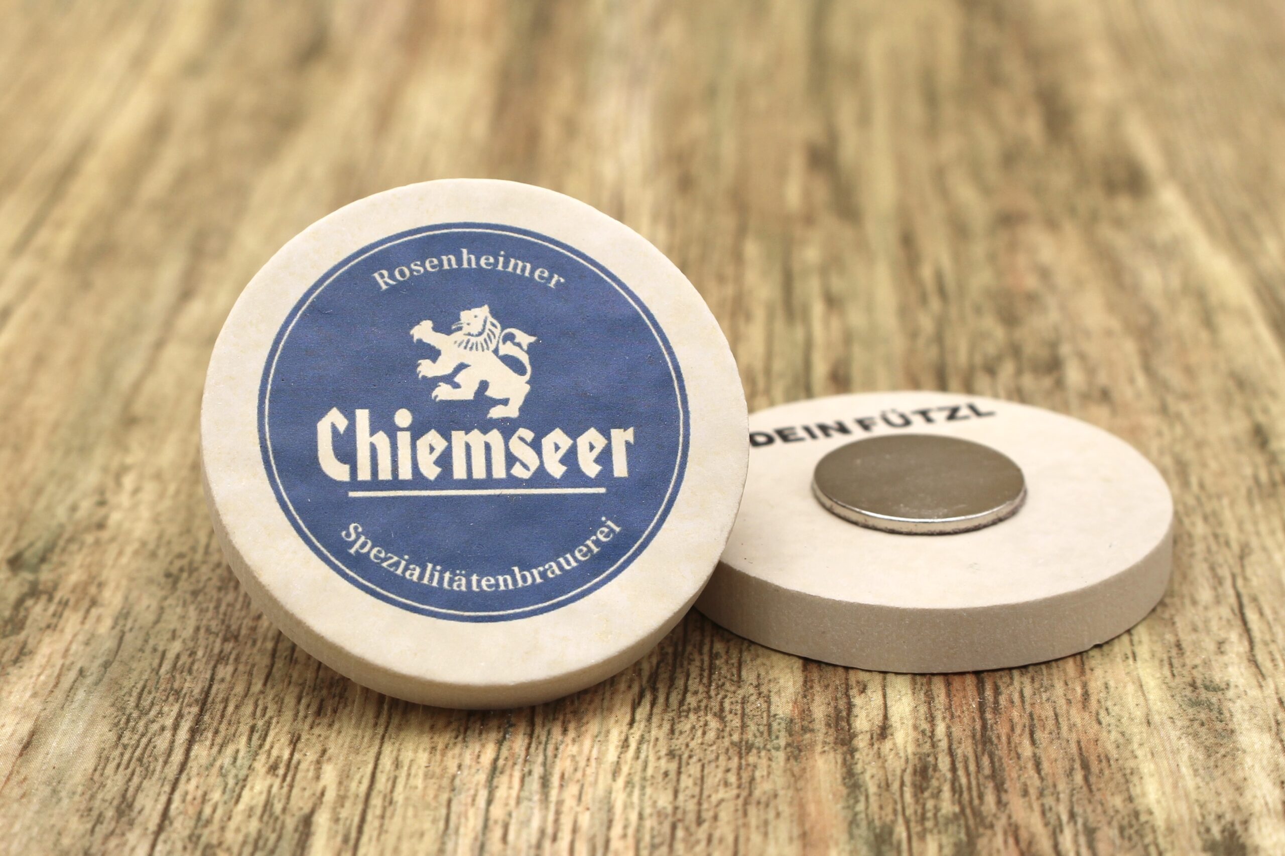 Magnet für den Kühlschrank aus Stein mit dem Logo der Chiemseer Brauerei ✓ Dein Fützl: perfekt als Geschenk & Fanartikel ✓ Echt nachhaltig: Aus Solnhofer Naturstein handgemacht in Bayern ➨ Jetzt bestellen!