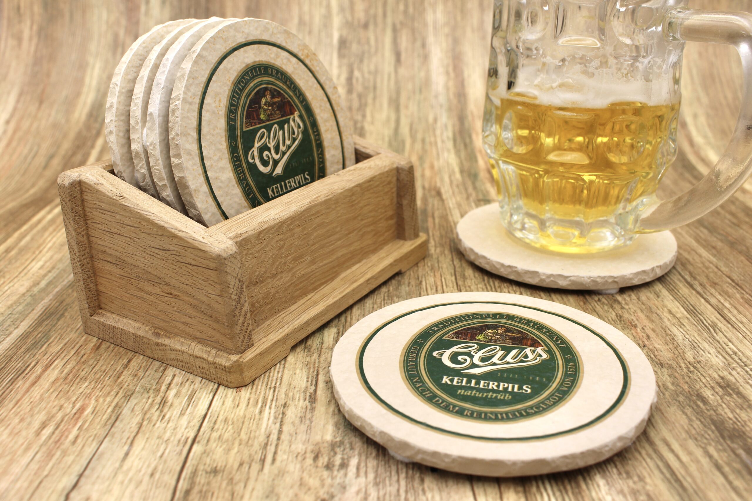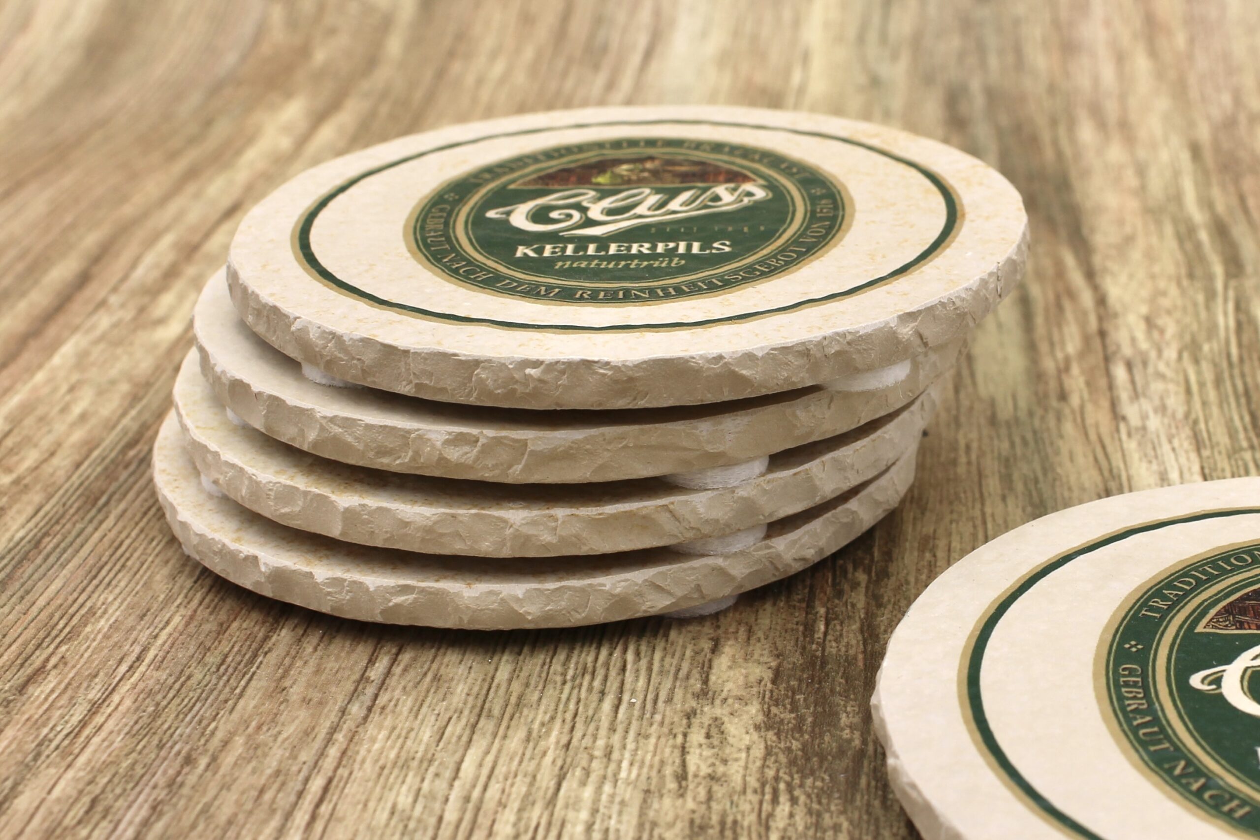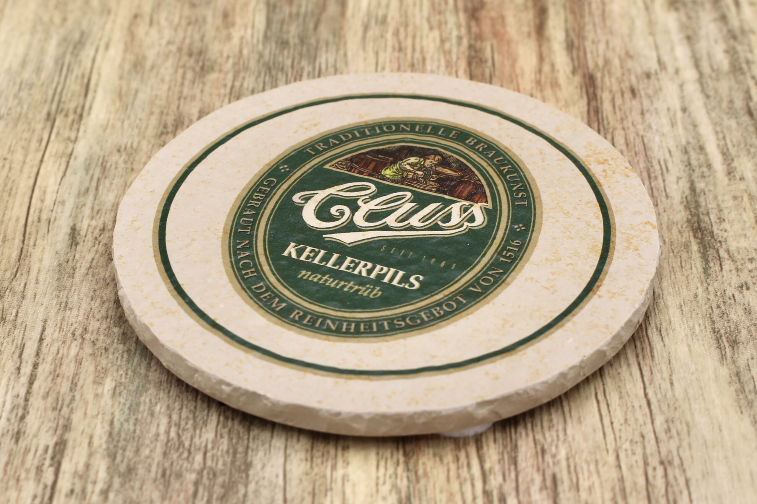 Bierdeckel aus Naturstein mit Logo der Brauerei Cluss aus Heilbronn ✓ Dein Fützl: perfekt als Geschenk & Fanartikel & für Sammler ✓ Echt biologisch: Aus Solnhofer Naturstein handgemacht in Bayern ➨ Jetzt bestellen!