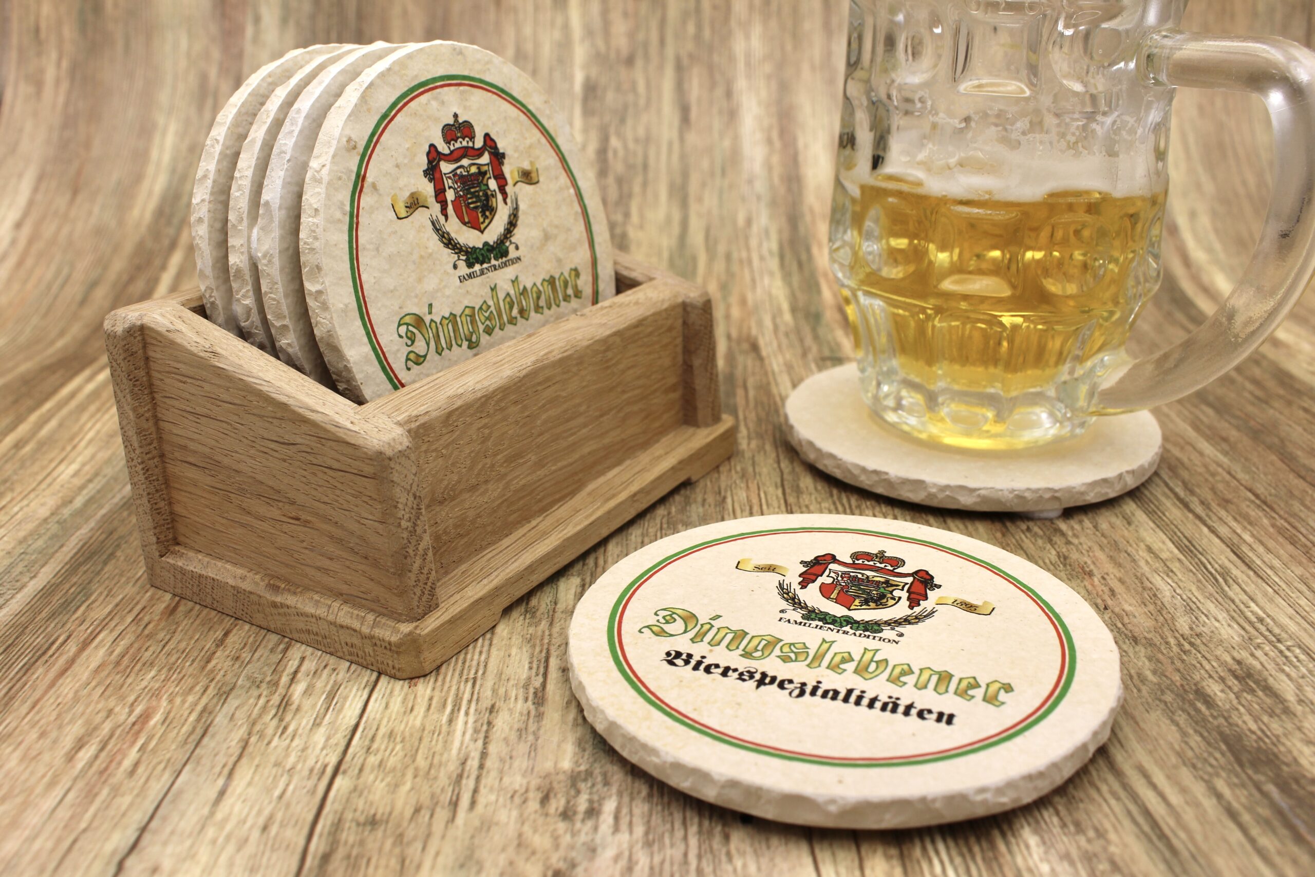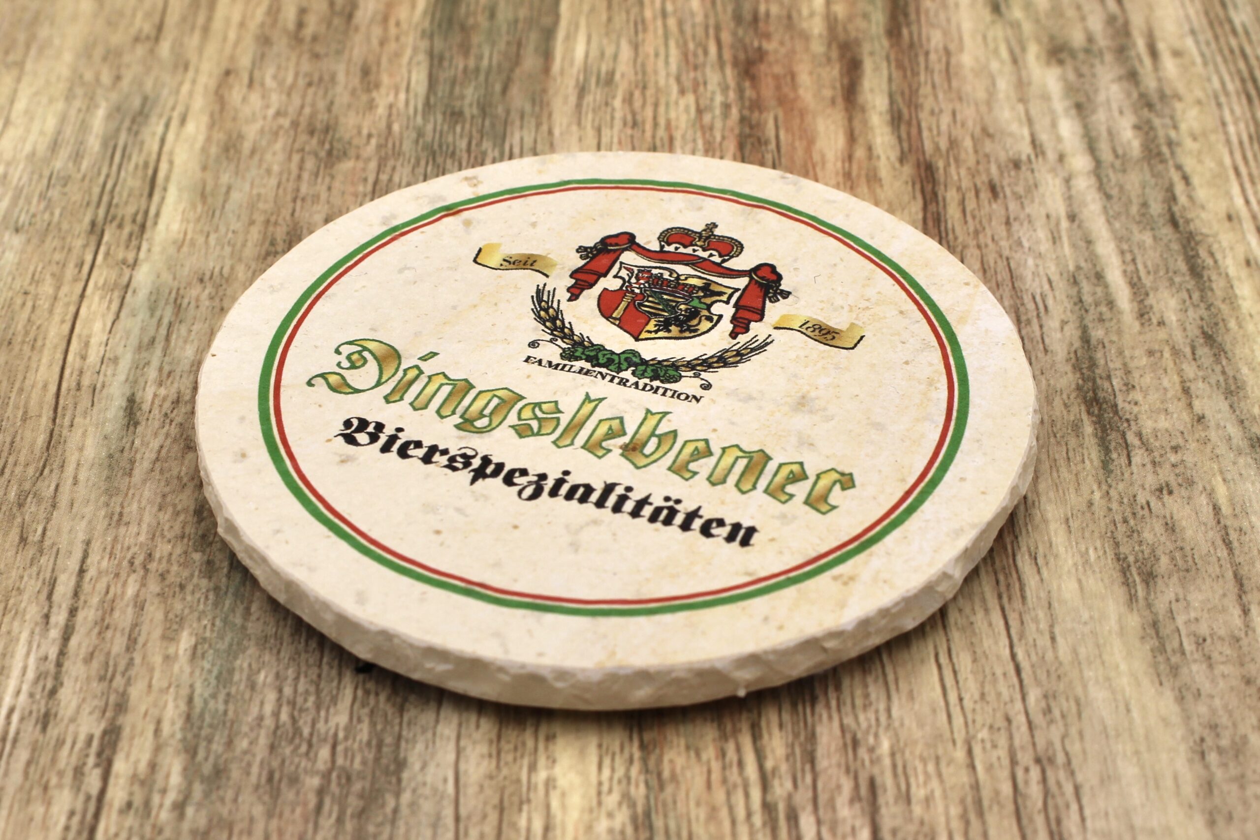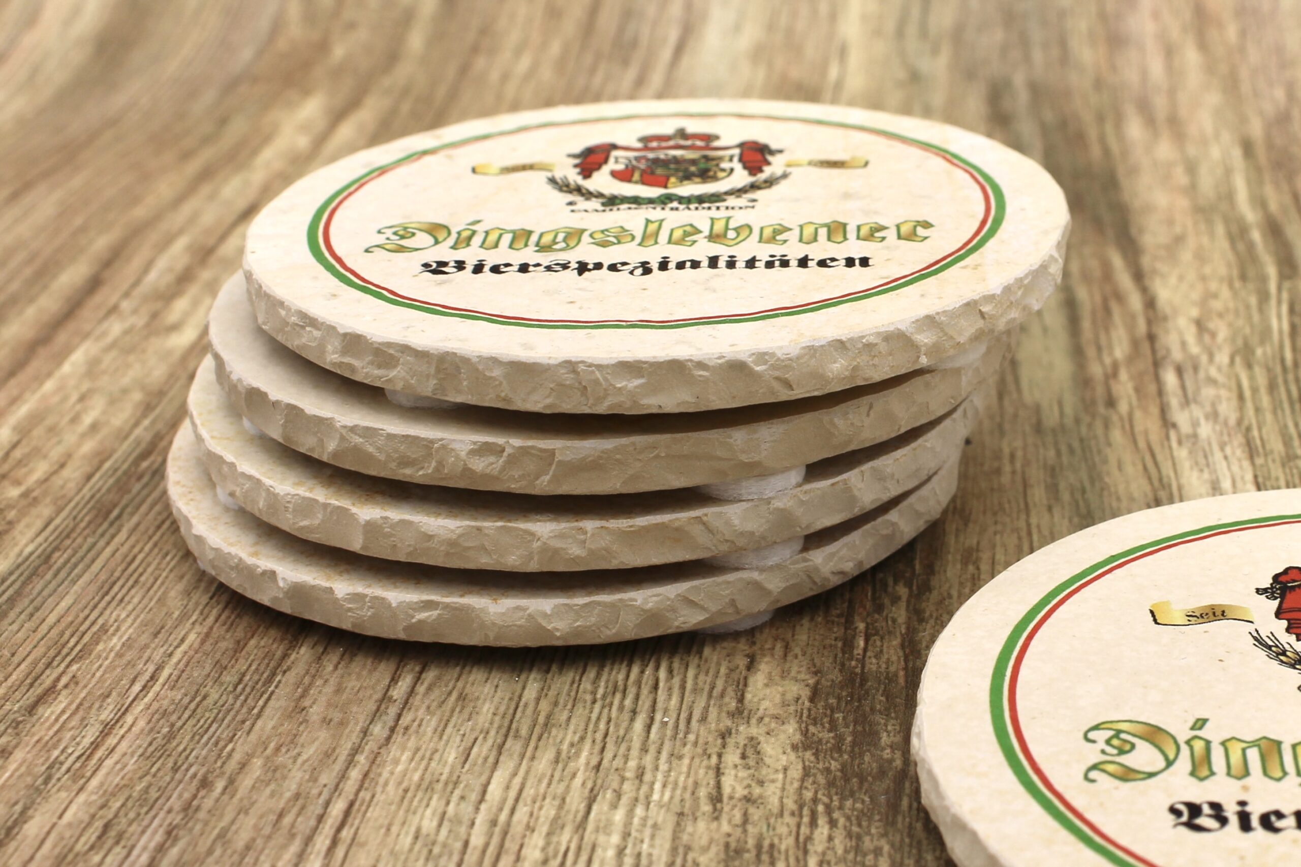 Bierdeckel aus Naturstein mit Logo der Brauerei Metzler aus Dingsleben ✓ Dein Fützl: perfekt als Geschenk & Fanartikel & für Sammler ✓ Echt biologisch: Aus Solnhofer Naturstein handgemacht in Bayern ➨ Jetzt bestellen!