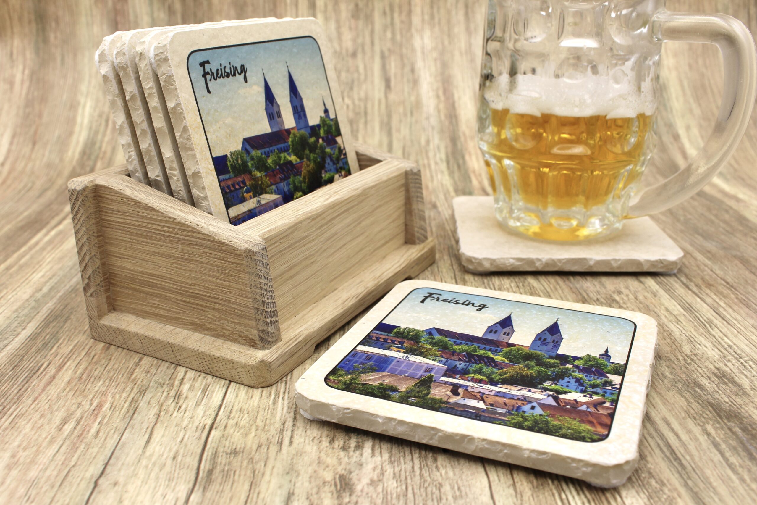 Untersetzer aus Naturstein mit dem Motiv Freising ✓ Dein Fützl: perfekt als Geschenk & Fanartikel & für Sammler ✓ Echt biologisch: Aus Solnhofer Naturstein handgemacht in Bayern ➨ Jetzt bestellen!