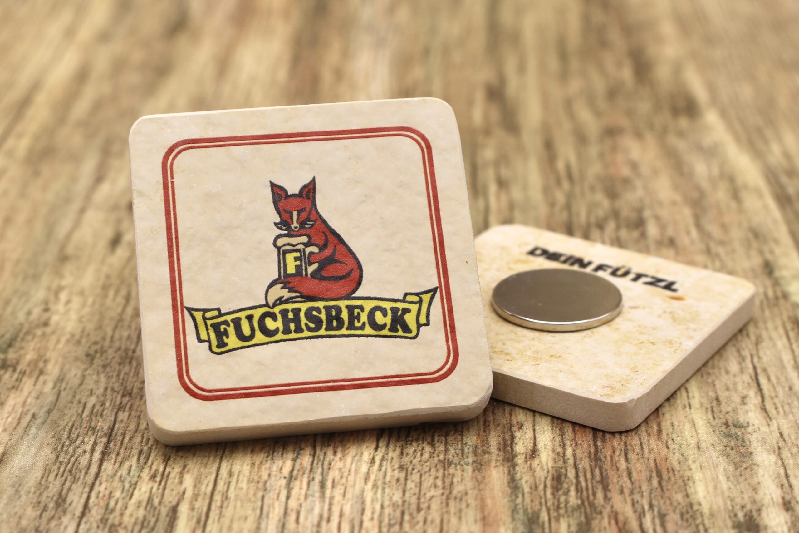 Magnet für den Kühlschrank aus Stein mit dem Logo der Brauerei Fuchsbeck ✓ Dein Fützl: perfekt als Geschenk & Fanartikel ✓ Echt nachhaltig: Aus Solnhofer Naturstein handgemacht in Bayern ➨ Jetzt bestellen!