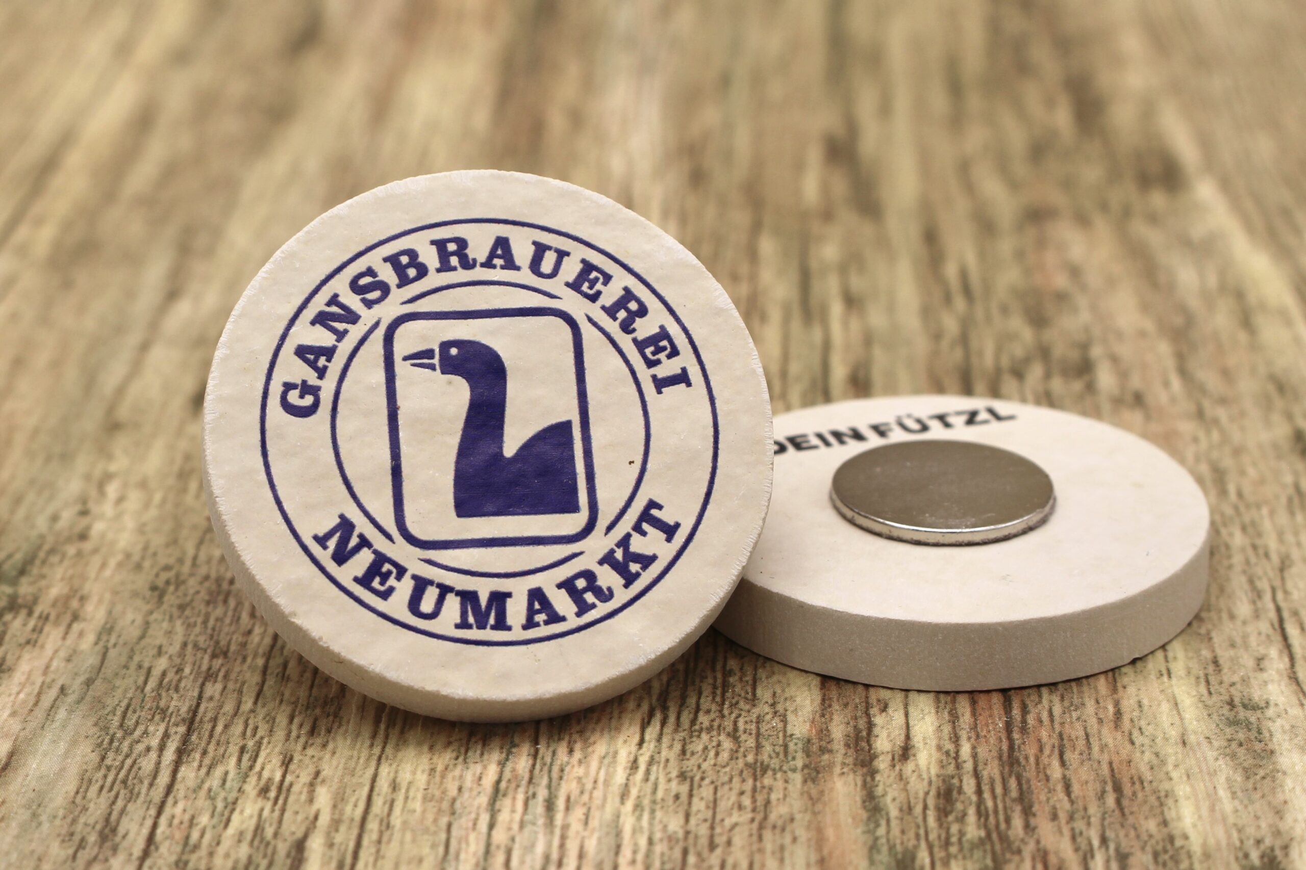 Magnet für Kühlschrank aus Stein mit dem Logo der Gans Brauerei aus Neumarkt ✓ Dein Fützl: perfekt als Geschenk & Fanartikel ✓ Echt nachhaltig: Aus Solnhofer Naturstein handgemacht in Bayern ➨ Jetzt bestellen!