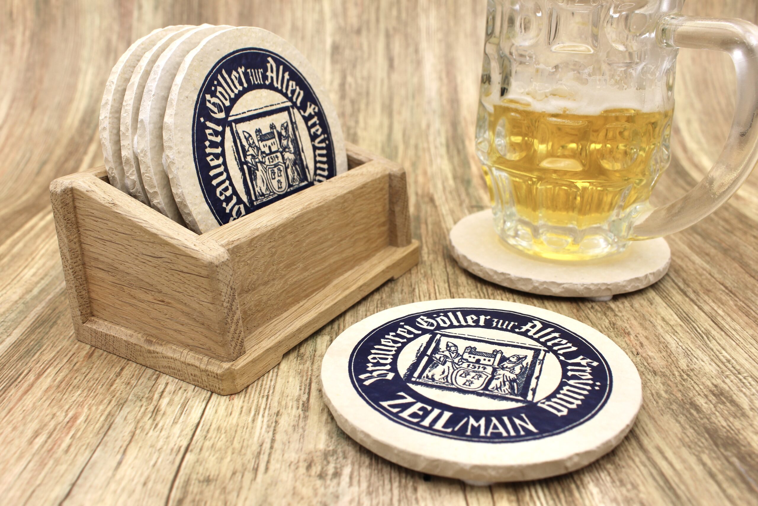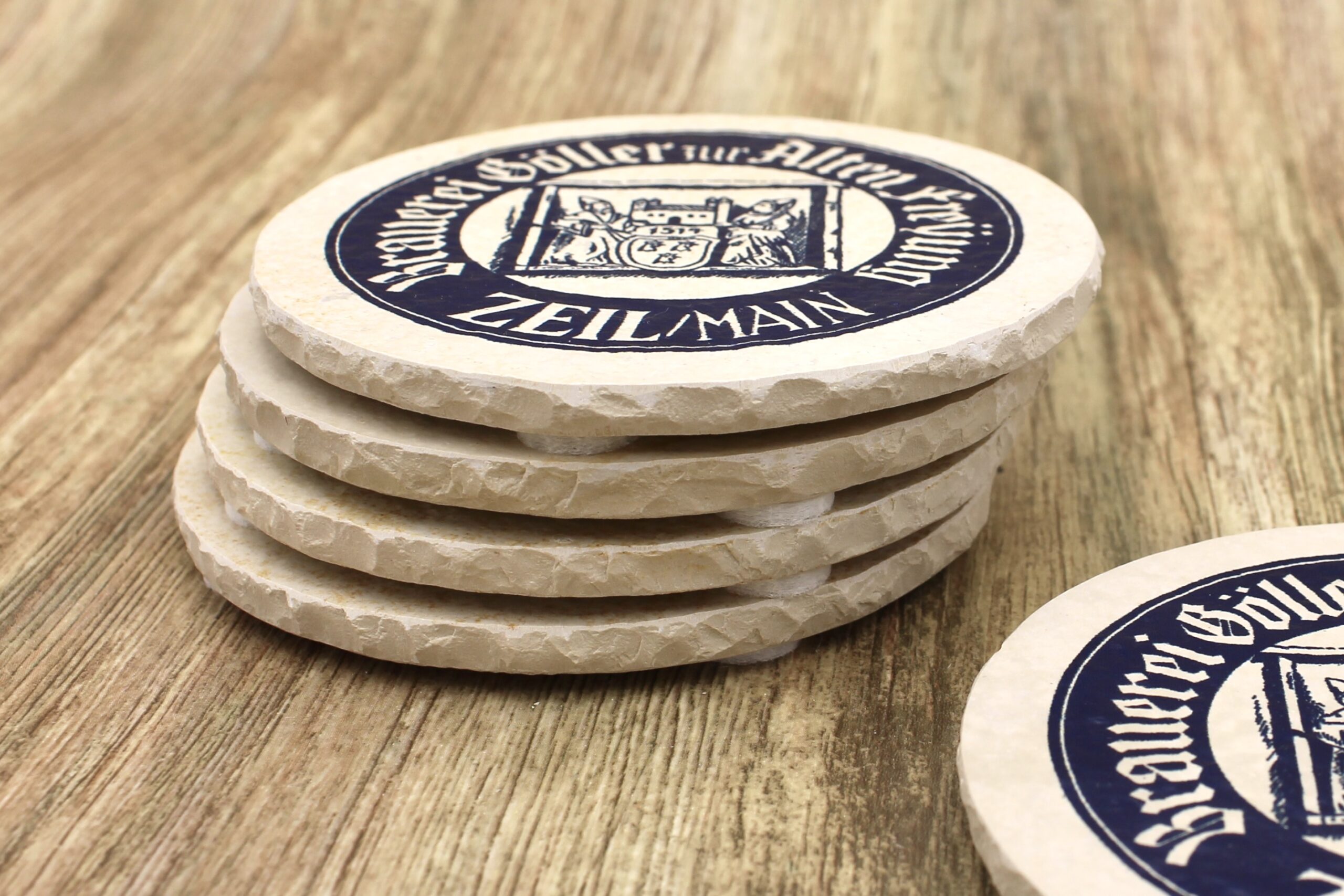Bierdeckel aus Naturstein mit Logo der Brauerei Göller aus Zeil am Main ✓ Dein Fützl: perfekt als Geschenk & Fanartikel & für Sammler ✓ Echt biologisch: Aus Solnhofer Naturstein handgemacht in Bayern ➨ Jetzt bestellen!