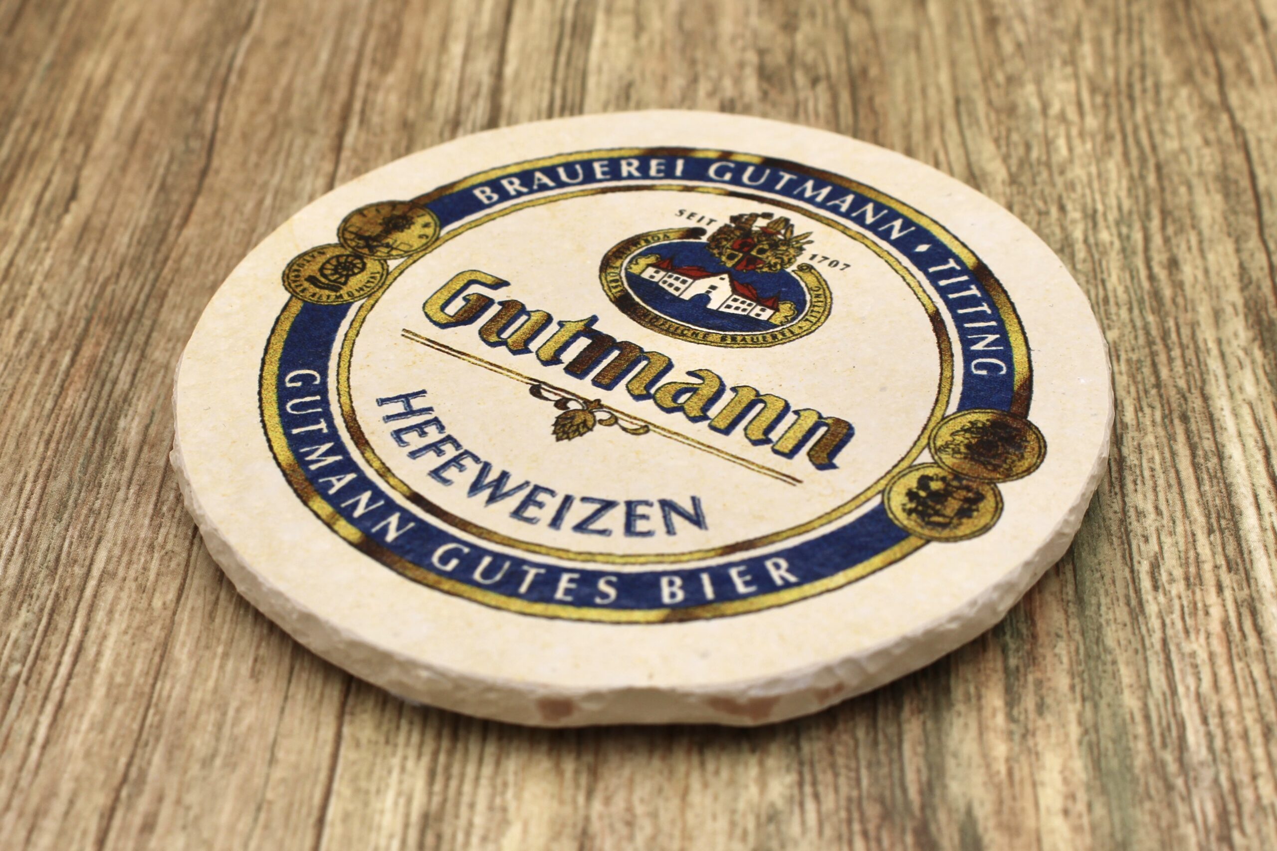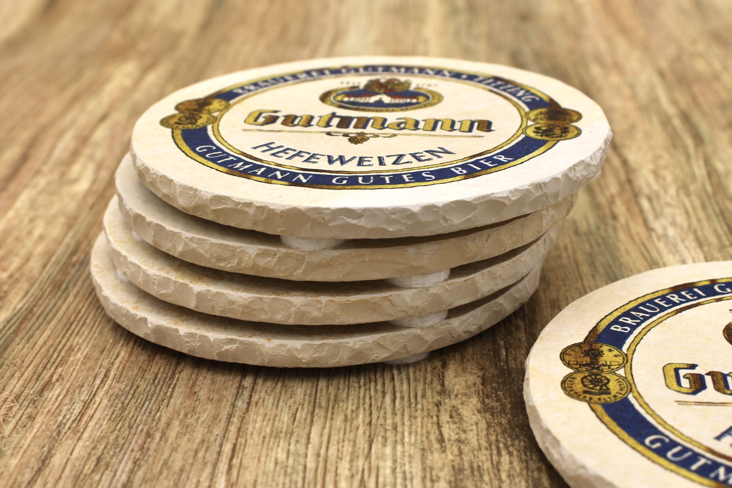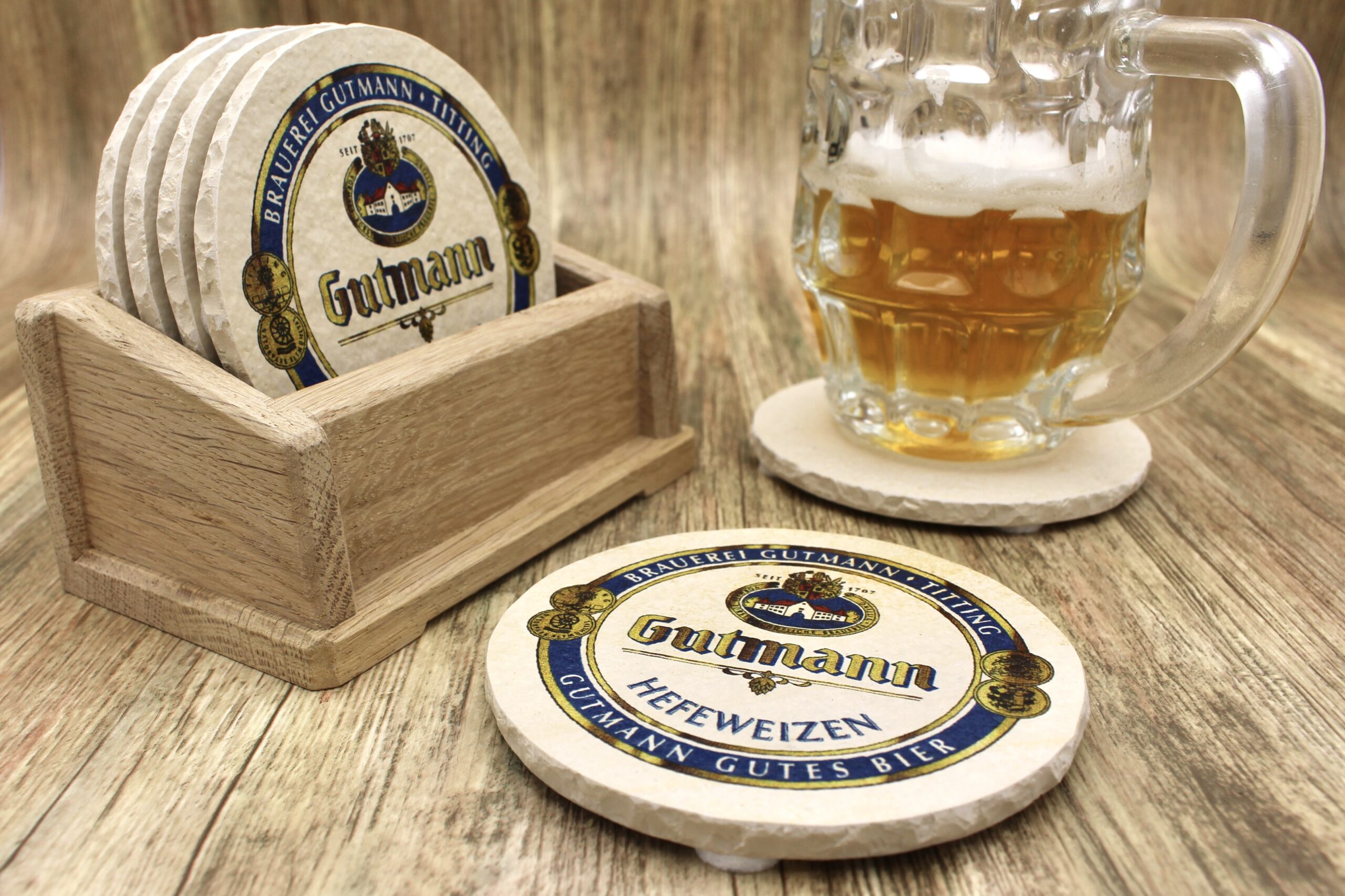 Bierdeckel aus Naturstein mit Logo der Brauerei Gutmann aus Titting ✓ Dein Fützl: perfekt als Geschenk & Fanartikel & für Sammler ✓ Echt biologisch: Aus Solnhofer Naturstein handgemacht in Bayern ➨ Jetzt bestellen!