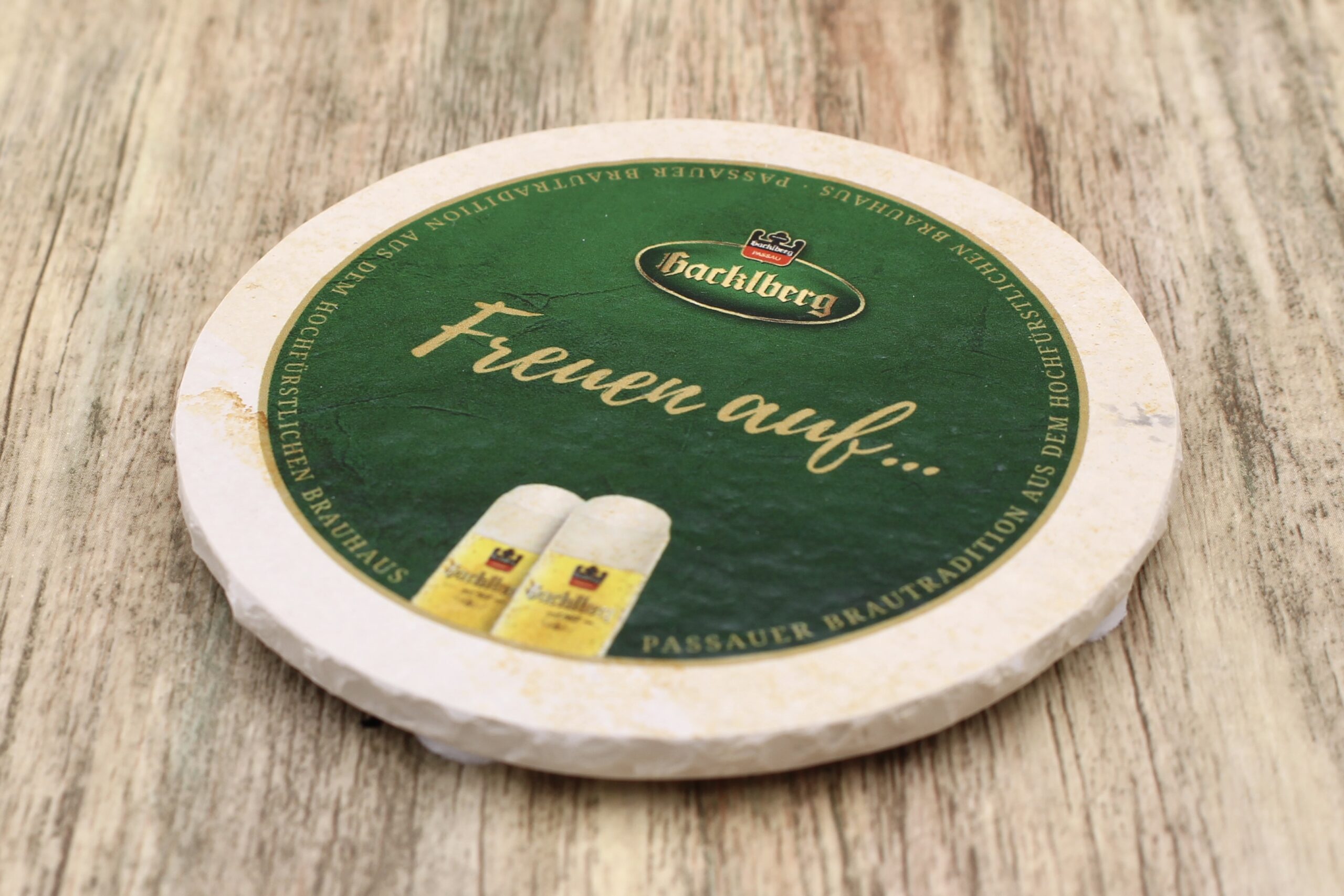 Bierdeckel aus Naturstein mit Logo der Brauerei Hacklberg aus Passau ✓ Dein Fützl: perfekt als Geschenk & Fanartikel & für Sammler ✓ Echt biologisch: Aus Solnhofer Naturstein handgemacht in Bayern ➨ Jetzt bestellen!