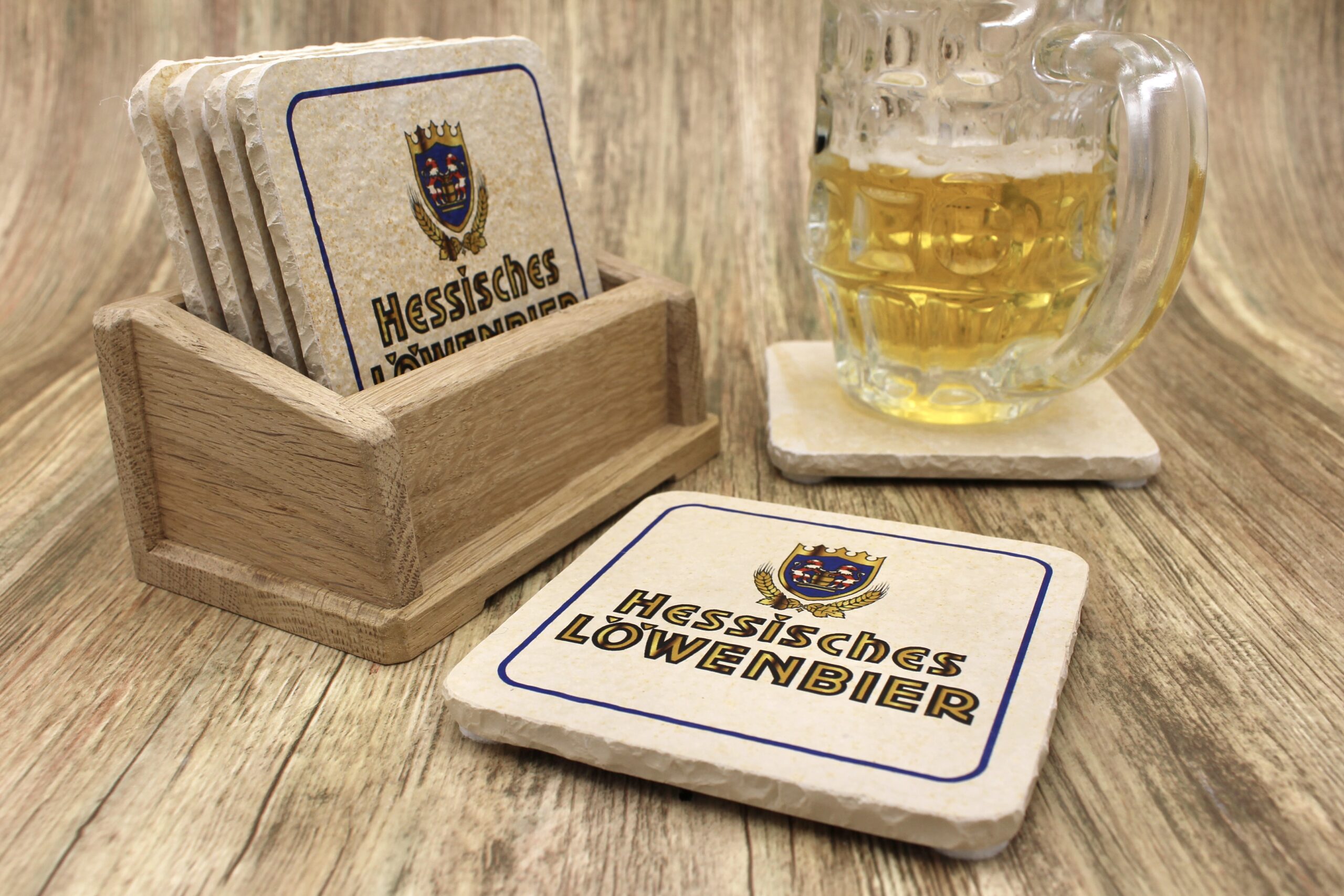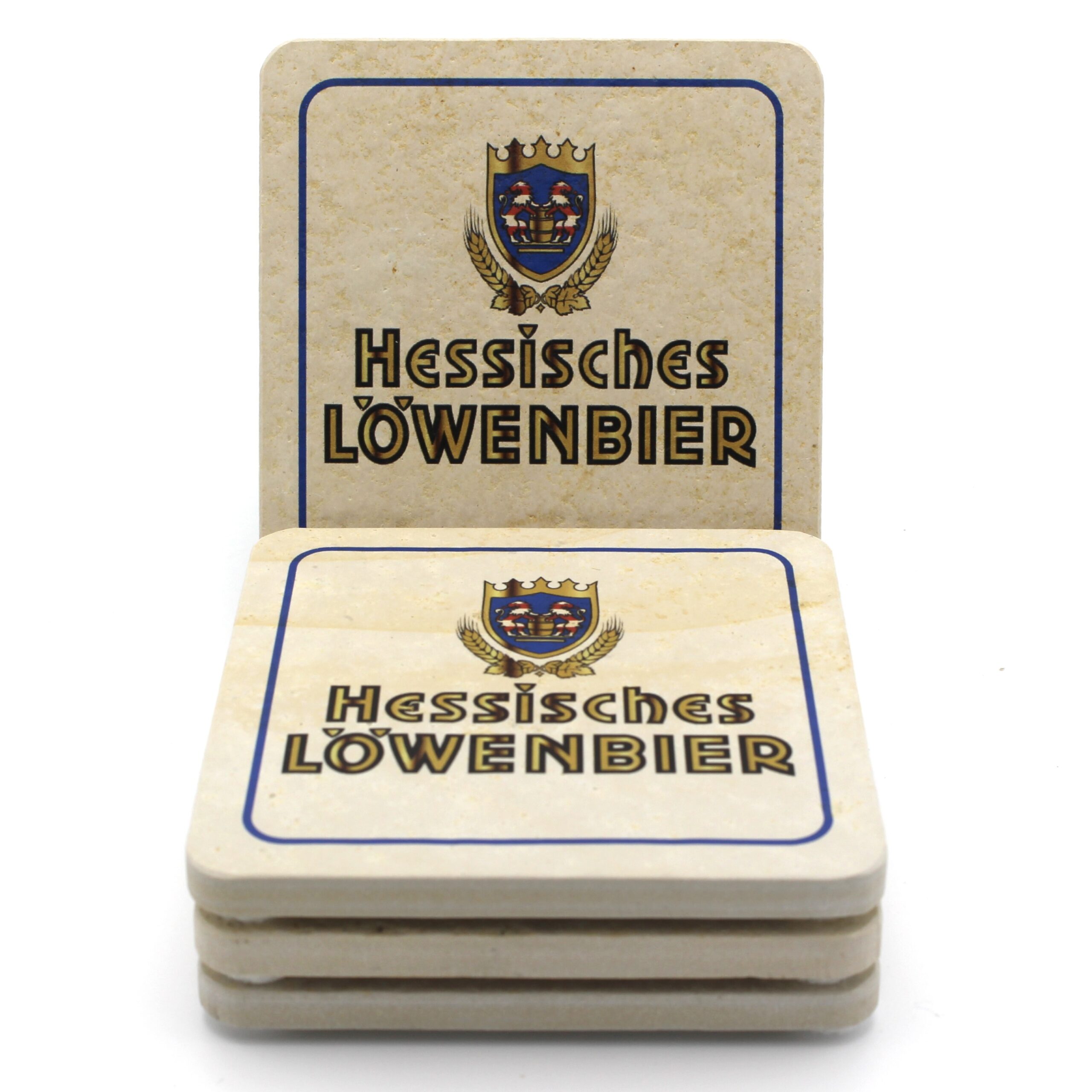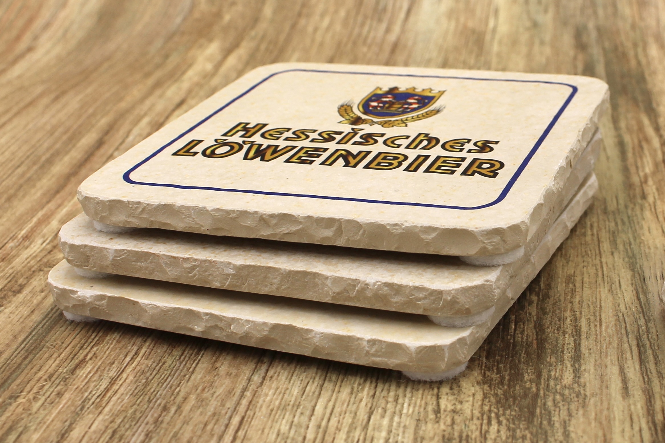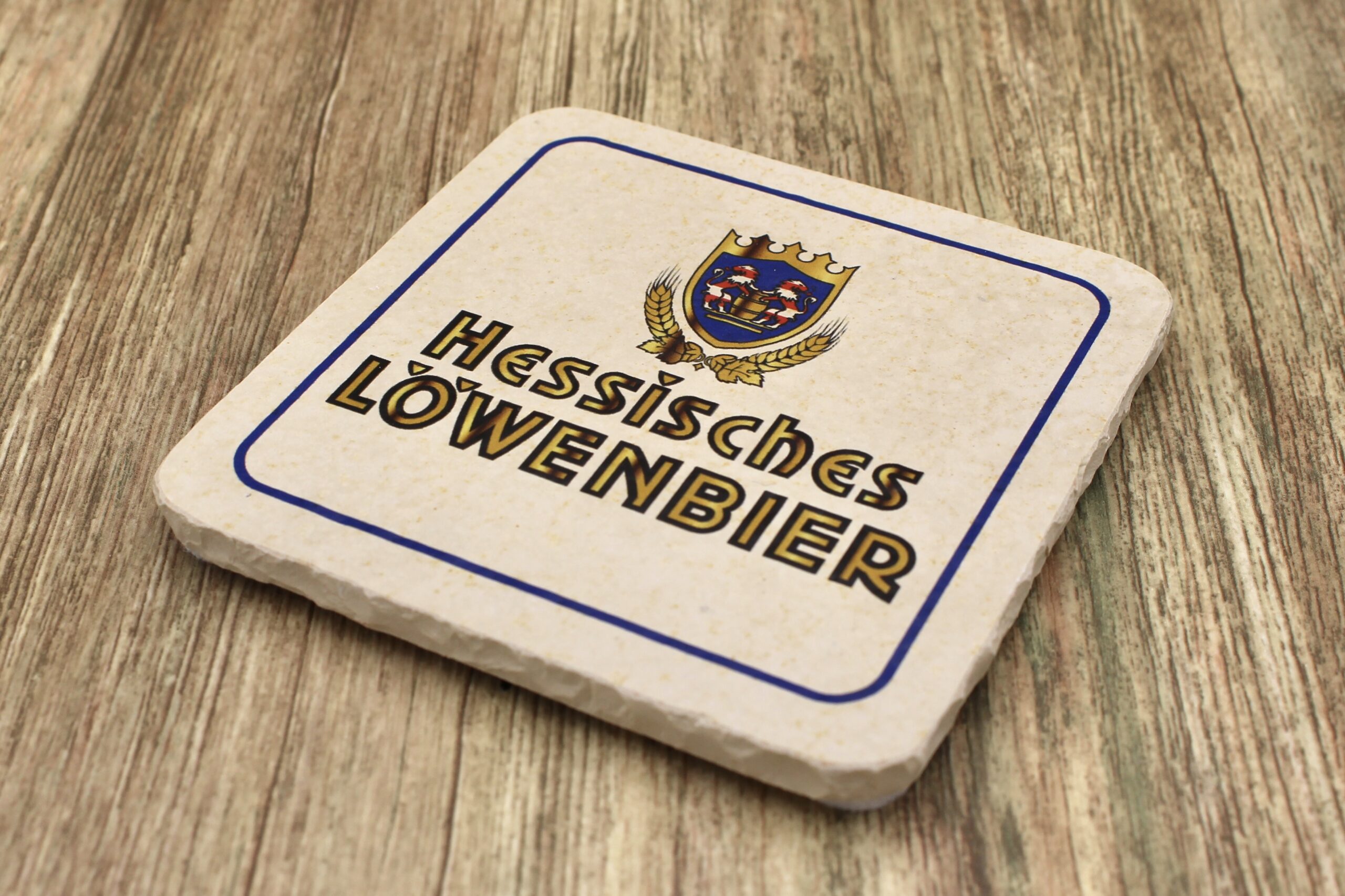 Bierdeckel aus Naturstein mit Logo des Hessischen Löwenbieres ✓ Dein Fützl: perfekt als Geschenk & Fanartikel & für Sammler ✓ Echt biologisch: Aus Solnhofer Naturstein handgemacht in Bayern ➨ Jetzt bestellen!