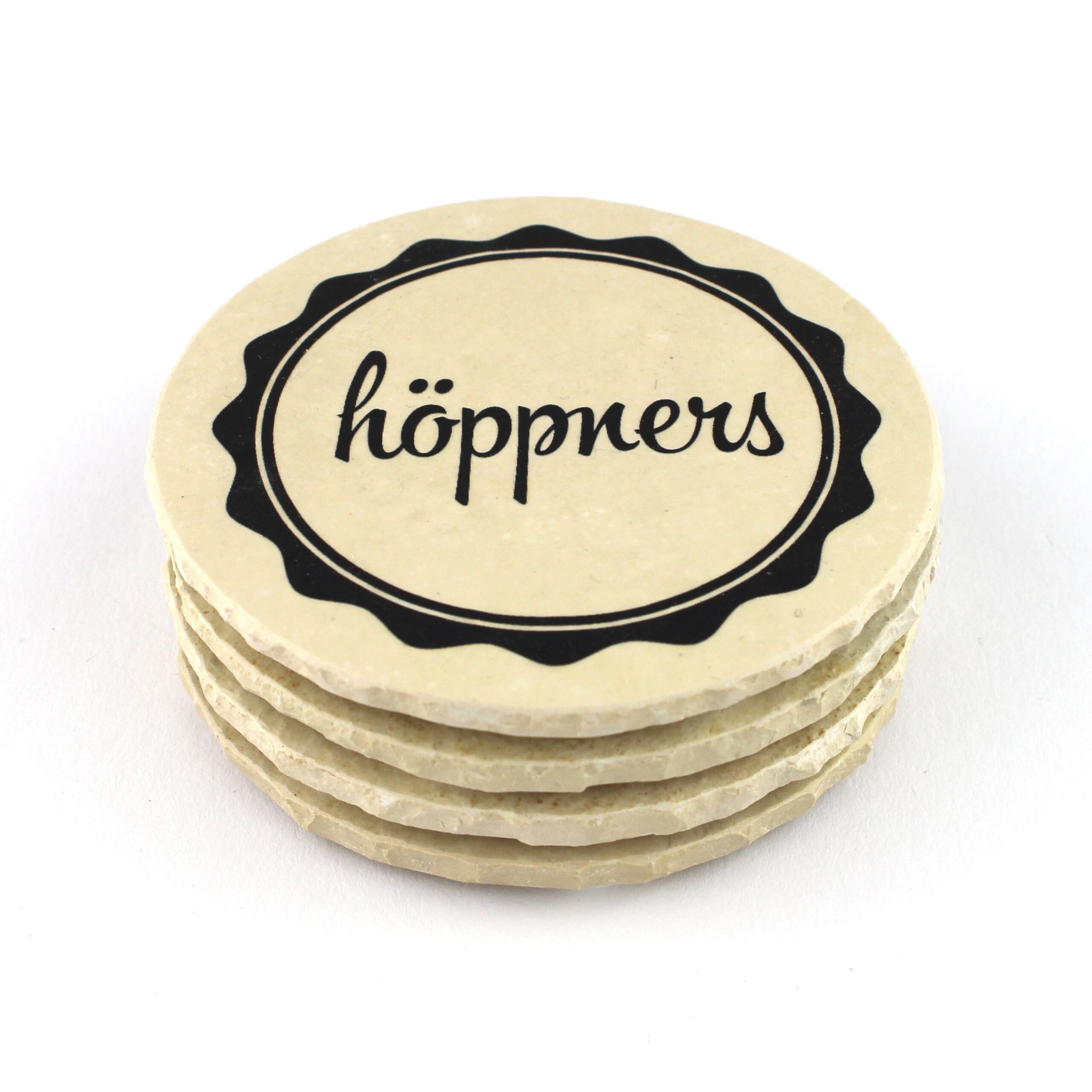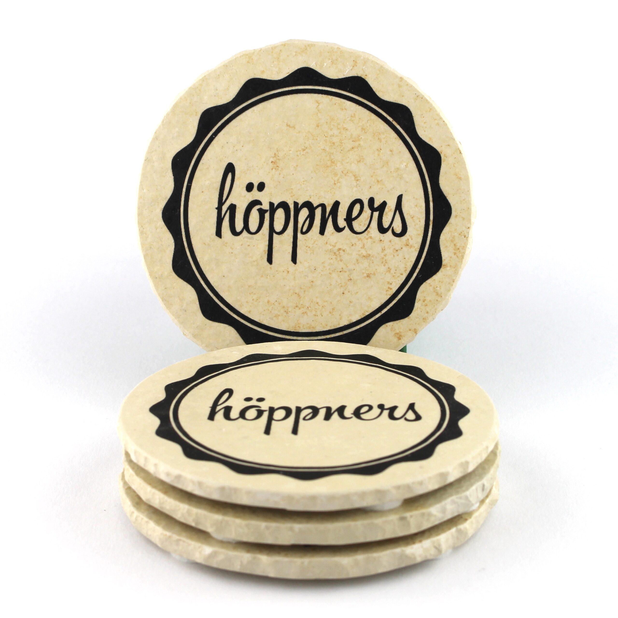 Höppners, Steinuntersetzer handgefertigt in Bayern, Natursteinuntersetzer aus Bayern, Regional hergestellte Steinbierdeckel, rein biologischer Solnhofer Naturstein, nachhaltiger Glasuntersetzer, multifunktionales Wohnaccessoire, praktisch beschichtet, daher gesundheitlich unbedenklich, Mit Filzgleitern auf der Unterseite ausgestattet um Kratzer auf Oberflächen zu vermeiden.