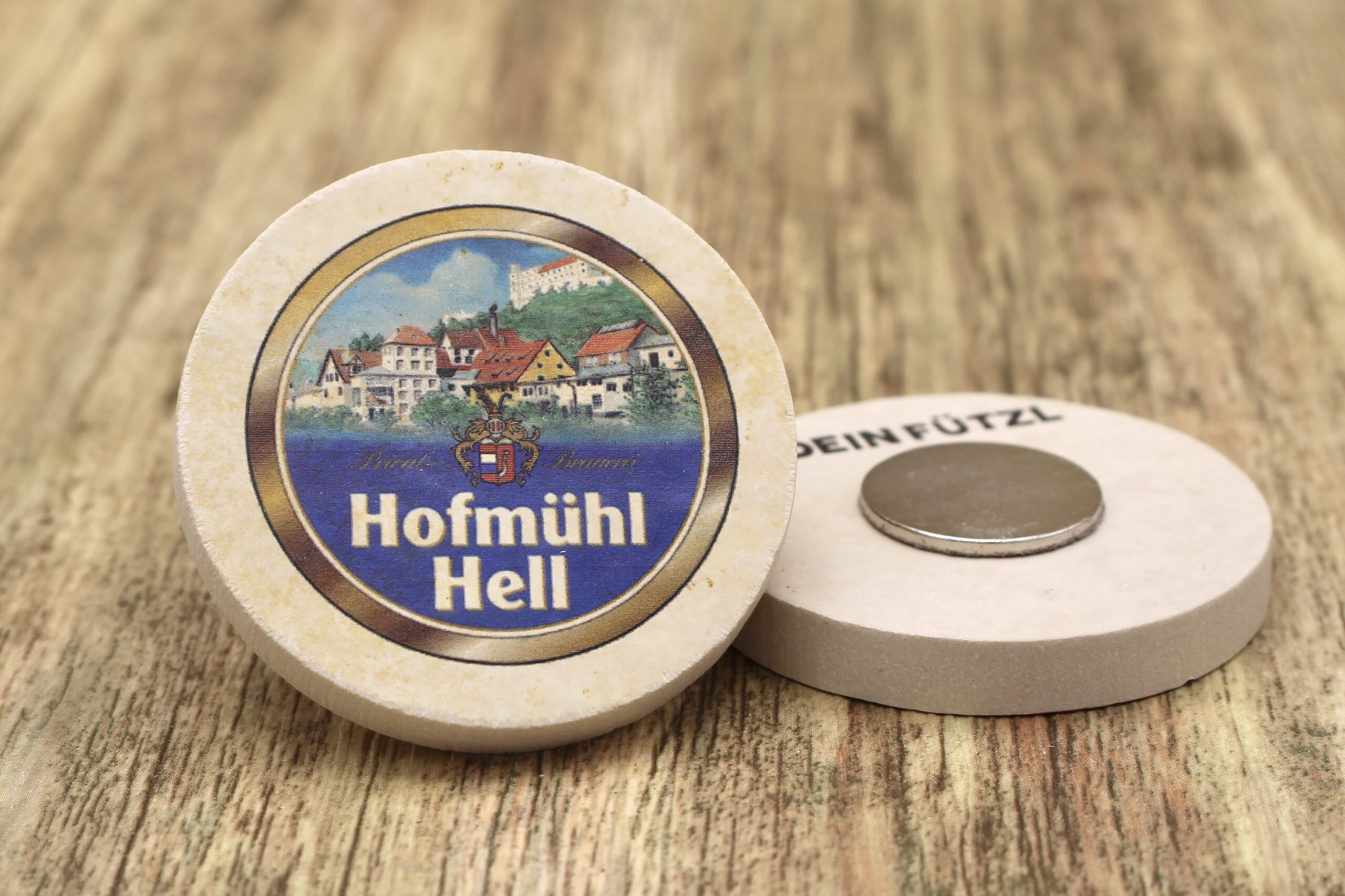 Magnet für den Kühlschrank aus Stein mit dem Logo der Brauerei Hofmühl ✓ Dein Fützl: perfekt als Geschenk & Fanartikel ✓ Echt nachhaltig: Aus Solnhofer Naturstein handgemacht in Bayern ➨ Jetzt bestellen!