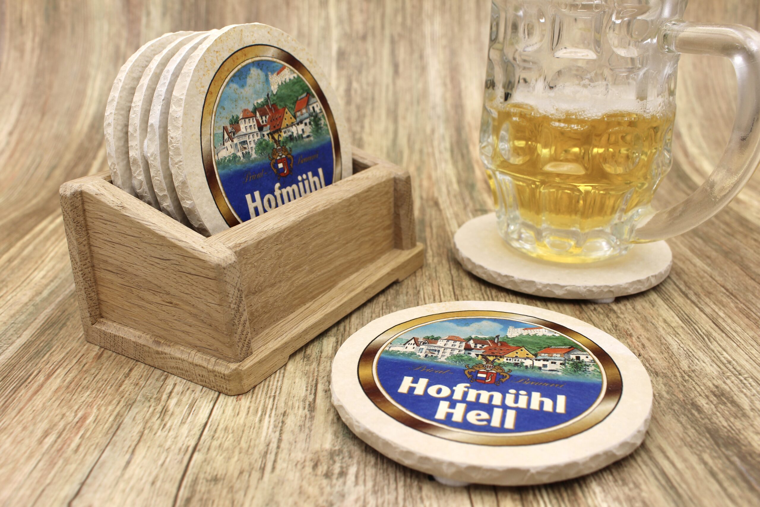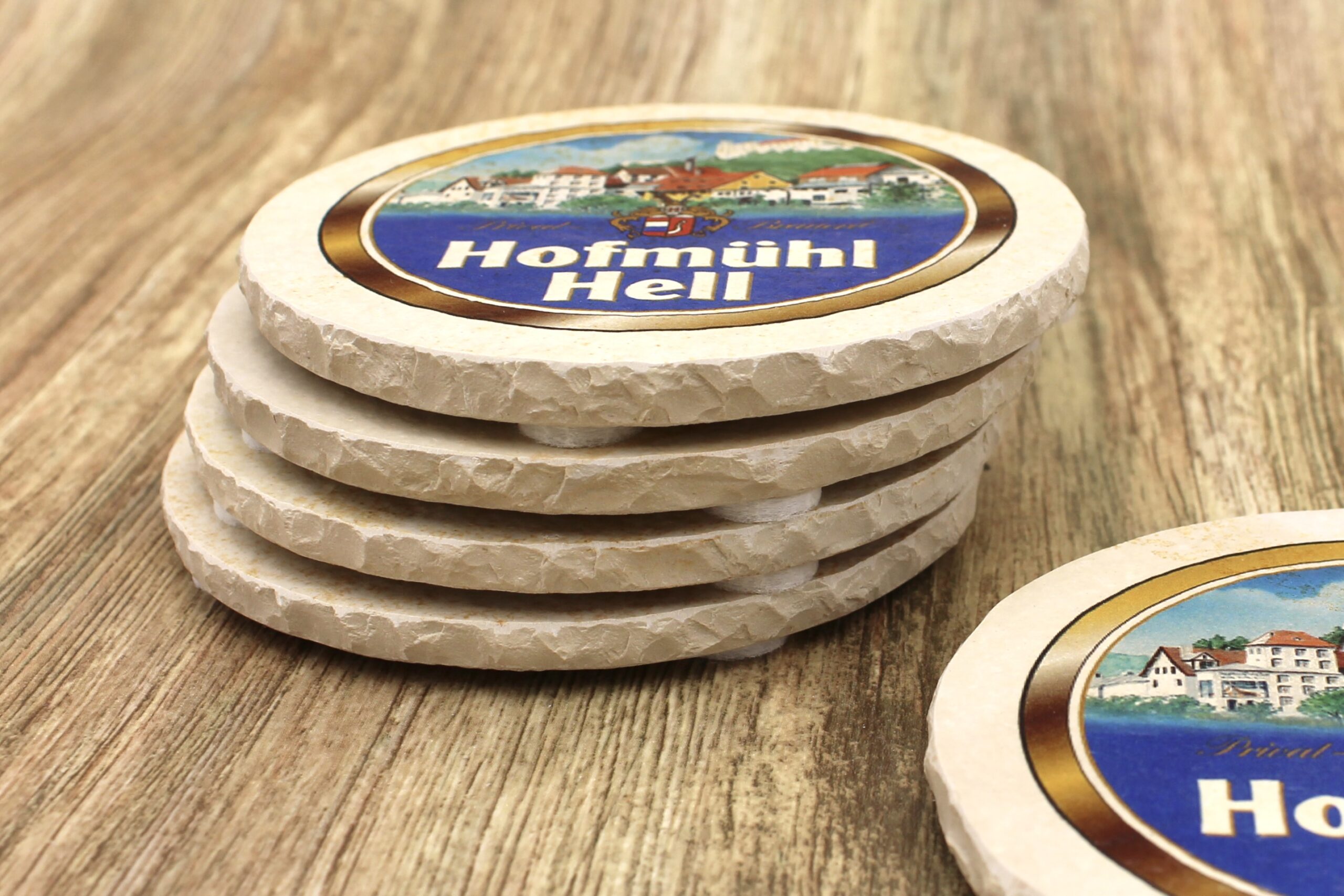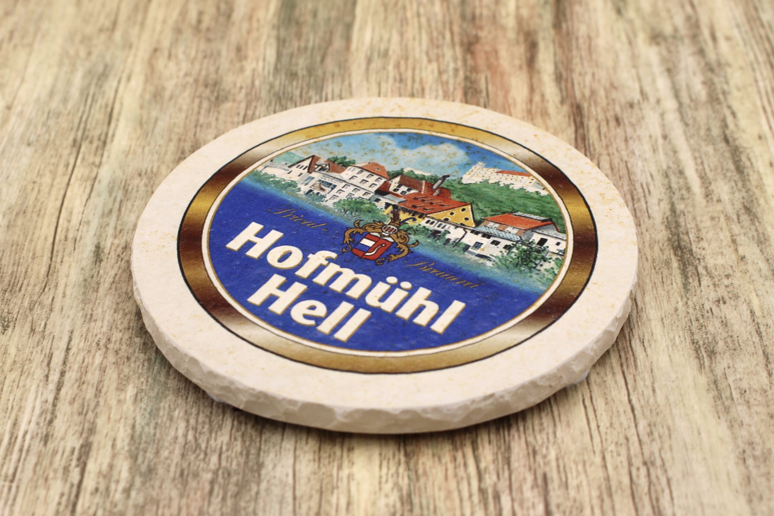 Bierdeckel aus Naturstein mit Logo der Brauerei Hofmühl aus Eichstaett ✓ Dein Fützl: perfekt als Geschenk & Fanartikel & für Sammler ✓ Echt biologisch: Aus Solnhofer Naturstein handgemacht in Bayern ➨ Jetzt bestellen!