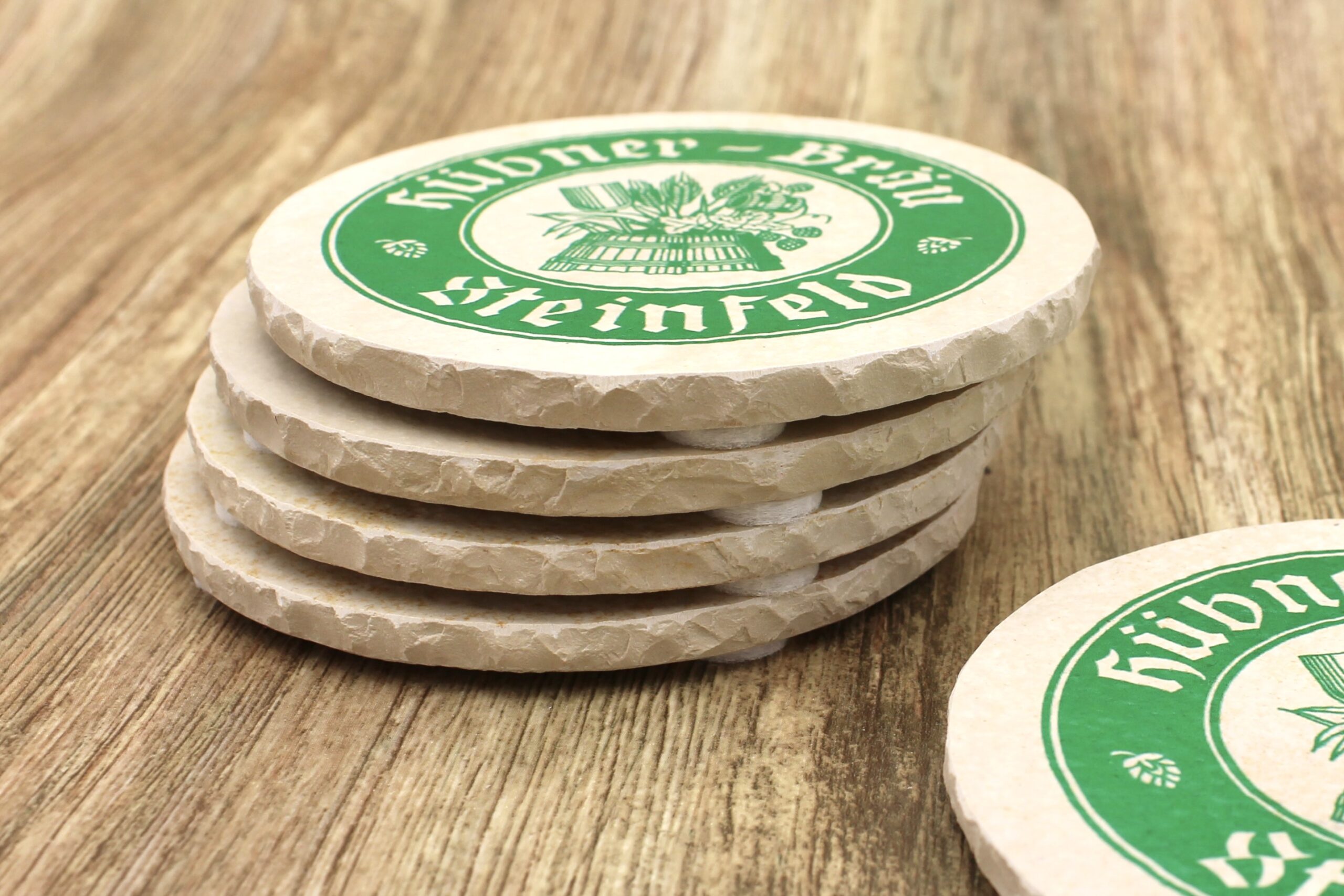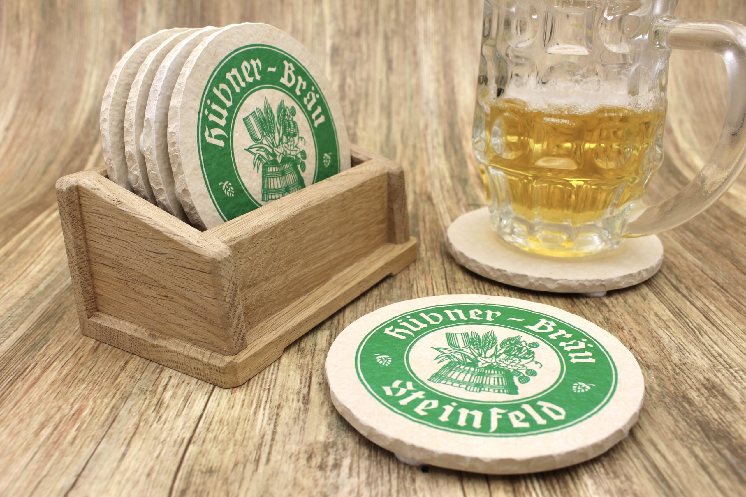 Bierdeckel aus Naturstein mit Logo der Brauerei Hübner aus Stadelhofenn ✓ Dein Fützl: perfekt als Geschenk & Fanartikel & für Sammler ✓ Echt biologisch: Aus Solnhofer Naturstein handgemacht in Bayern ➨ Jetzt bestellen!