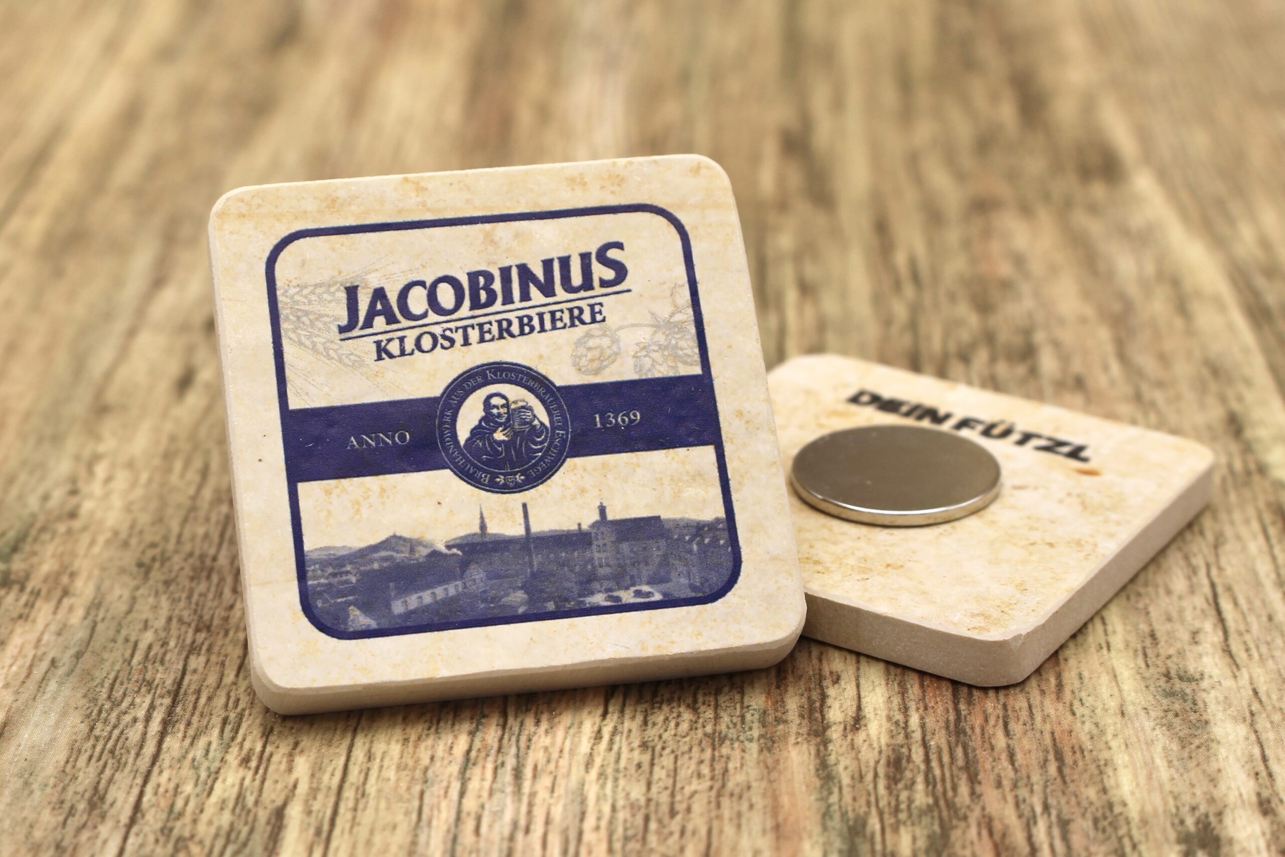 Magnet für den Kühlschrank aus Stein mit dem Logo des Jacobinus Klosterbiers ✓ Dein Fützl: perfekt als Geschenk & Fanartikel ✓ Echt nachhaltig: Aus Solnhofer Naturstein handgemacht in Bayern ➨ Jetzt bestellen!