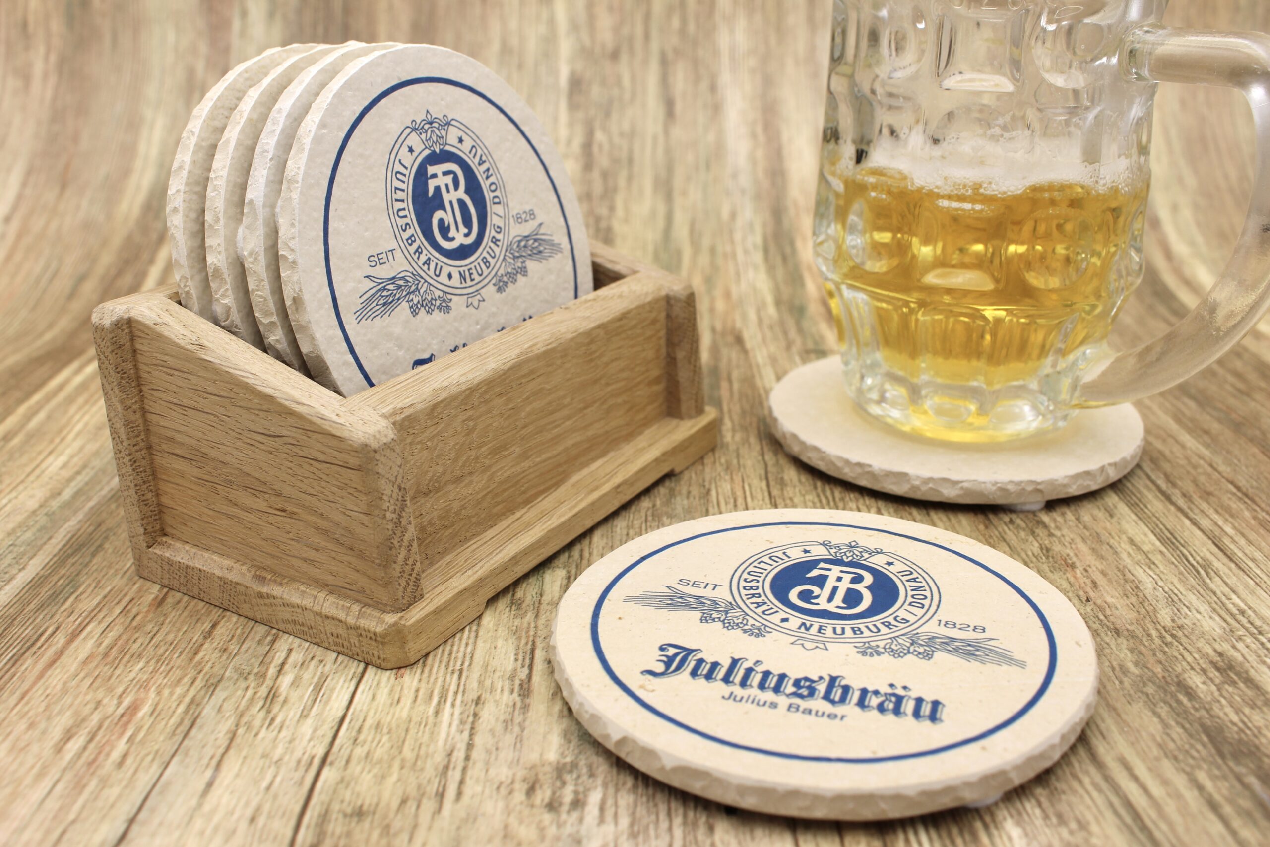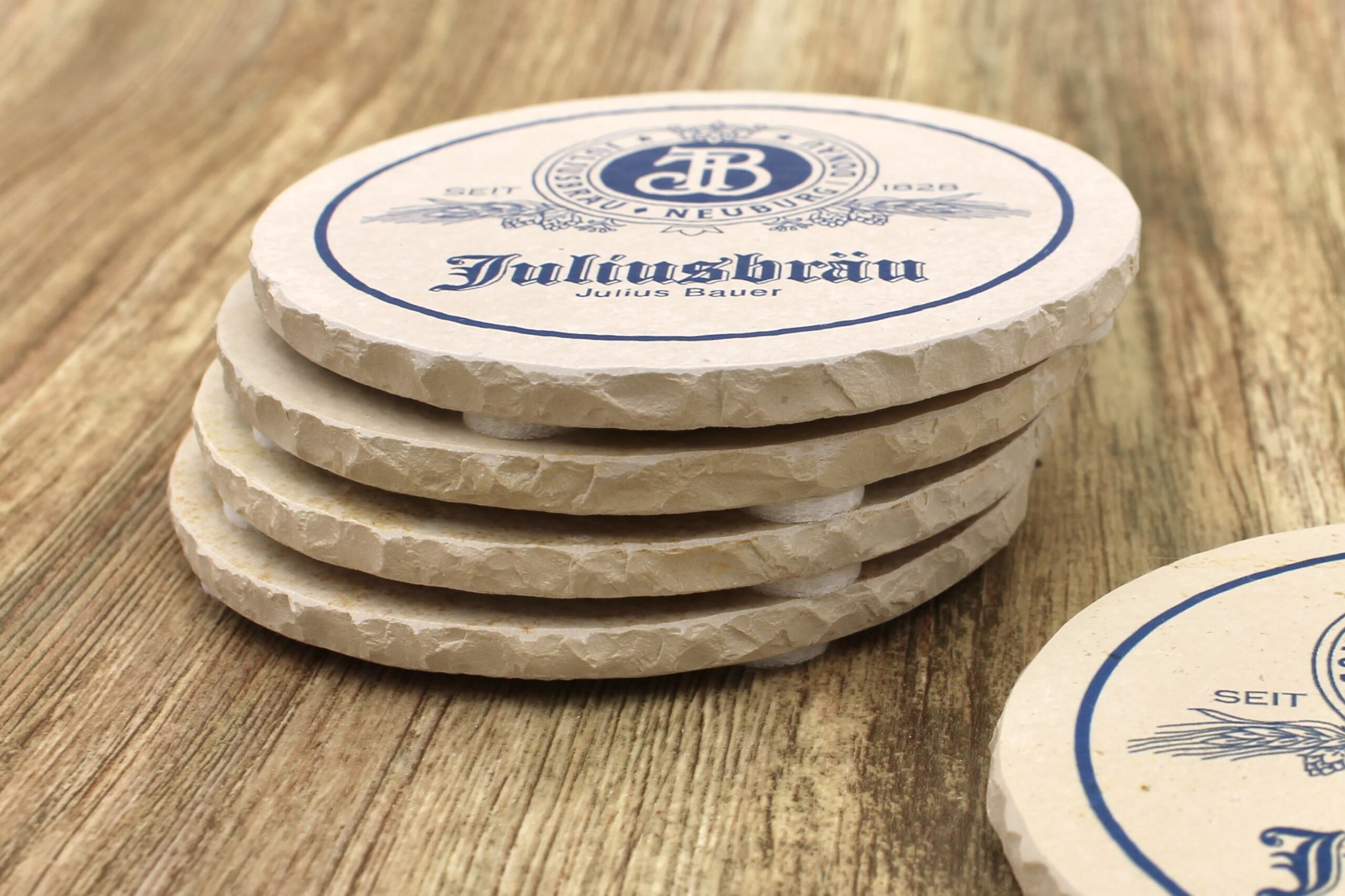 Bierdeckel aus Naturstein mit dem Logo von Juliusbräu aus Neuburg a.D. ✓ Dein Fützl: perfekt als Geschenk & Fanartikel & für Sammler ✓ Echt biologisch: Aus Solnhofer Naturstein handgemacht in Bayern ➨ Jetzt bestellen!