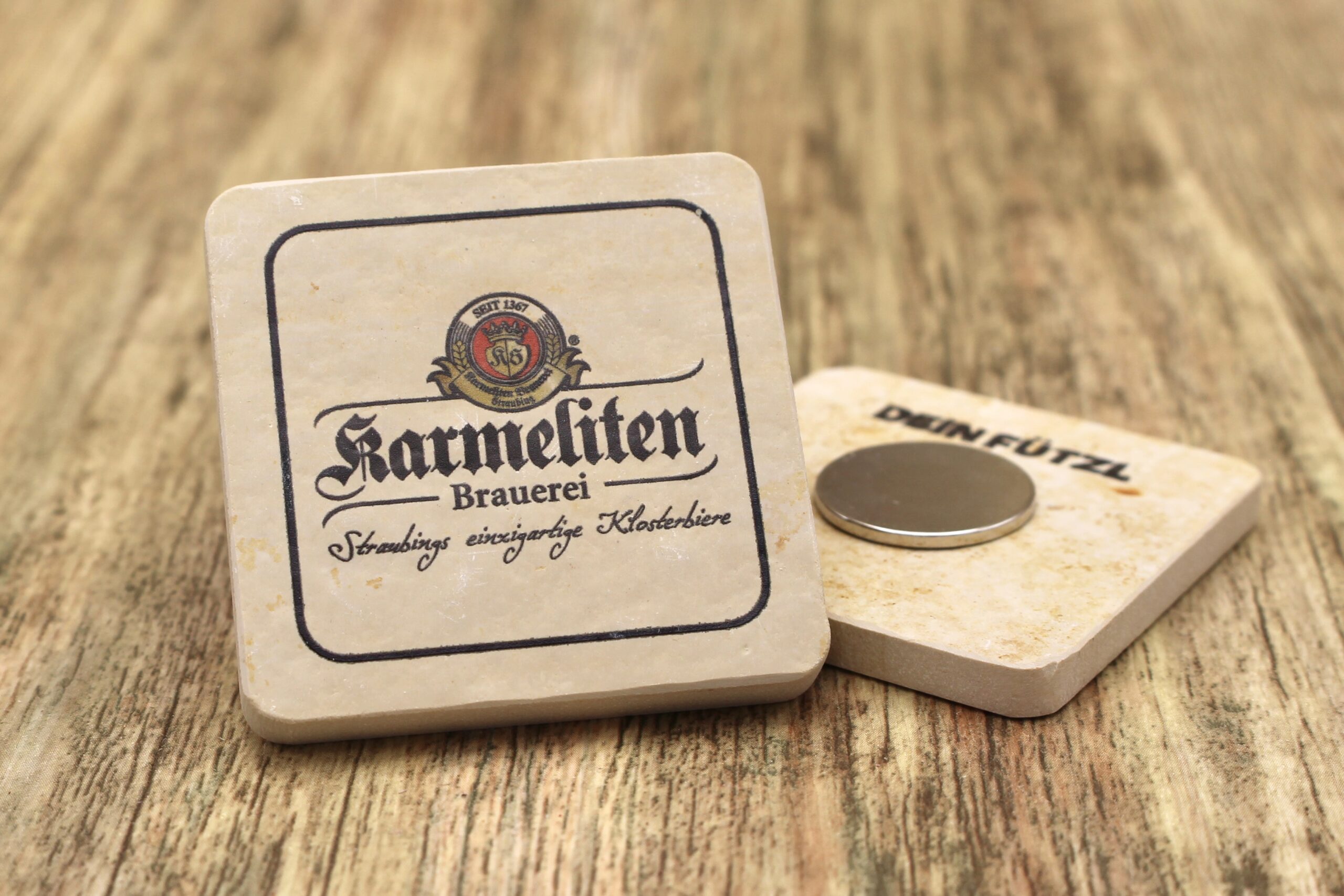 Magnet für den Kühlschrank aus Stein mit dem Logo der Karmeliten Brauerei ✓ Dein Fützl: perfekt als Geschenk & Fanartikel ✓ Echt nachhaltig: Aus Solnhofer Naturstein handgemacht in Bayern ➨ Jetzt bestellen!