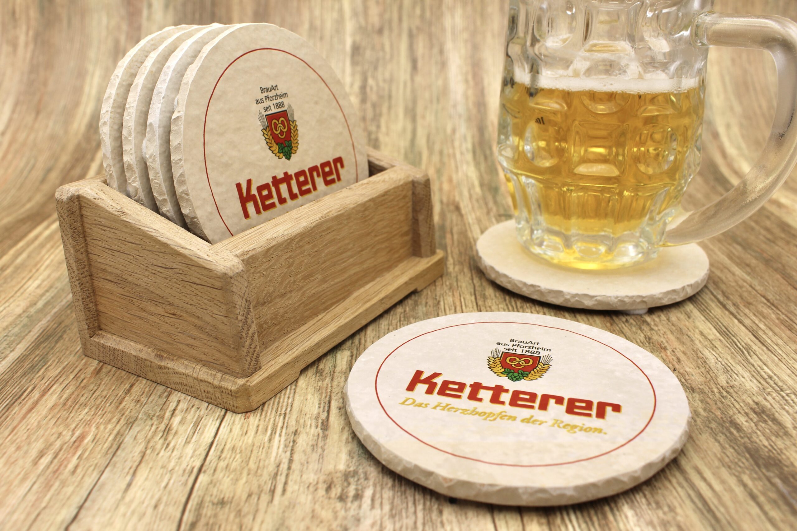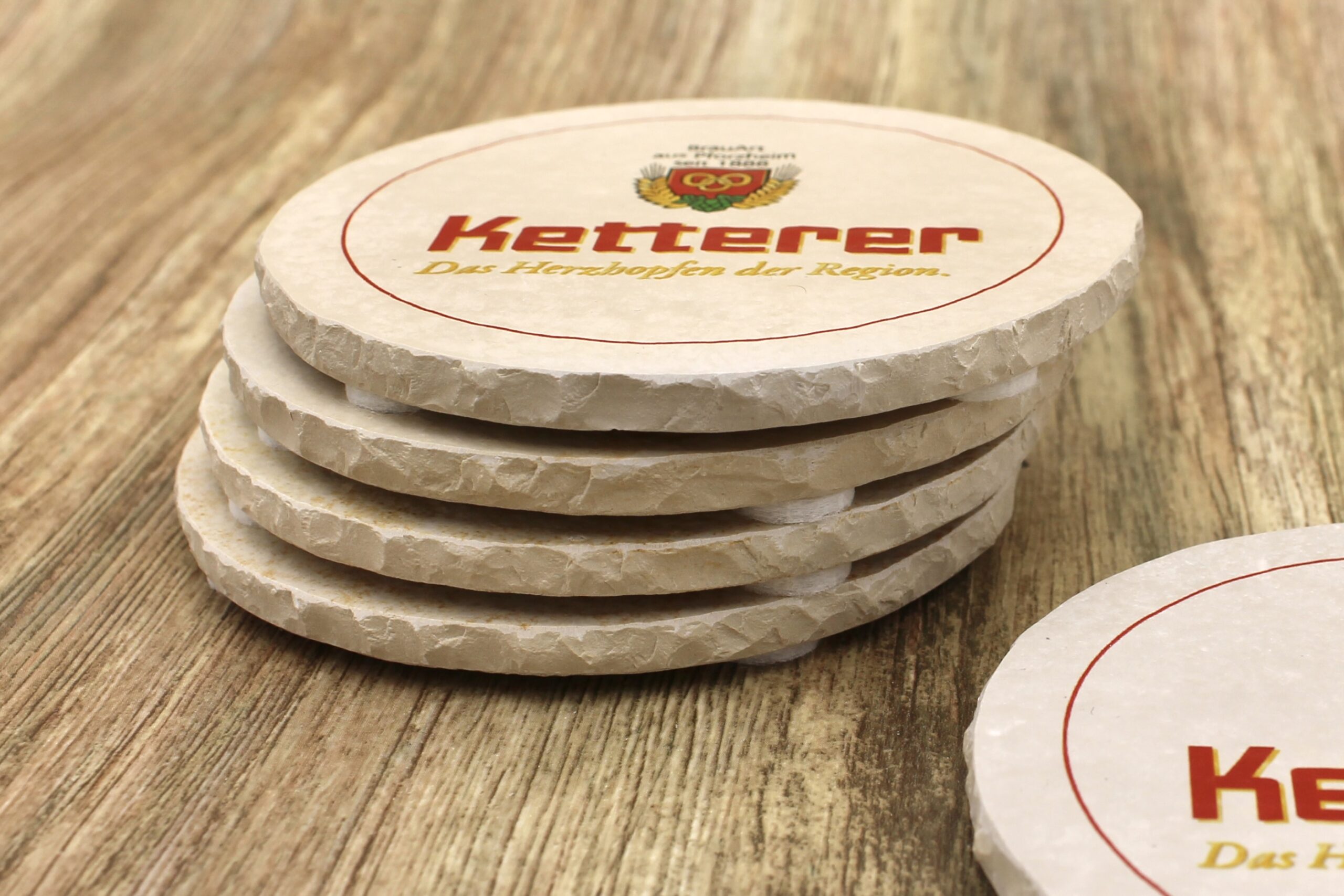 Bierdeckel aus Naturstein mit Logo der Brauerei Ketterer Pforzheim ✓ Dein Fützl: perfekt als Geschenk & Fanartikel & für Sammler ✓ Echt biologisch: Aus Solnhofer Naturstein handgemacht in Bayern ➨ Jetzt bestellen!