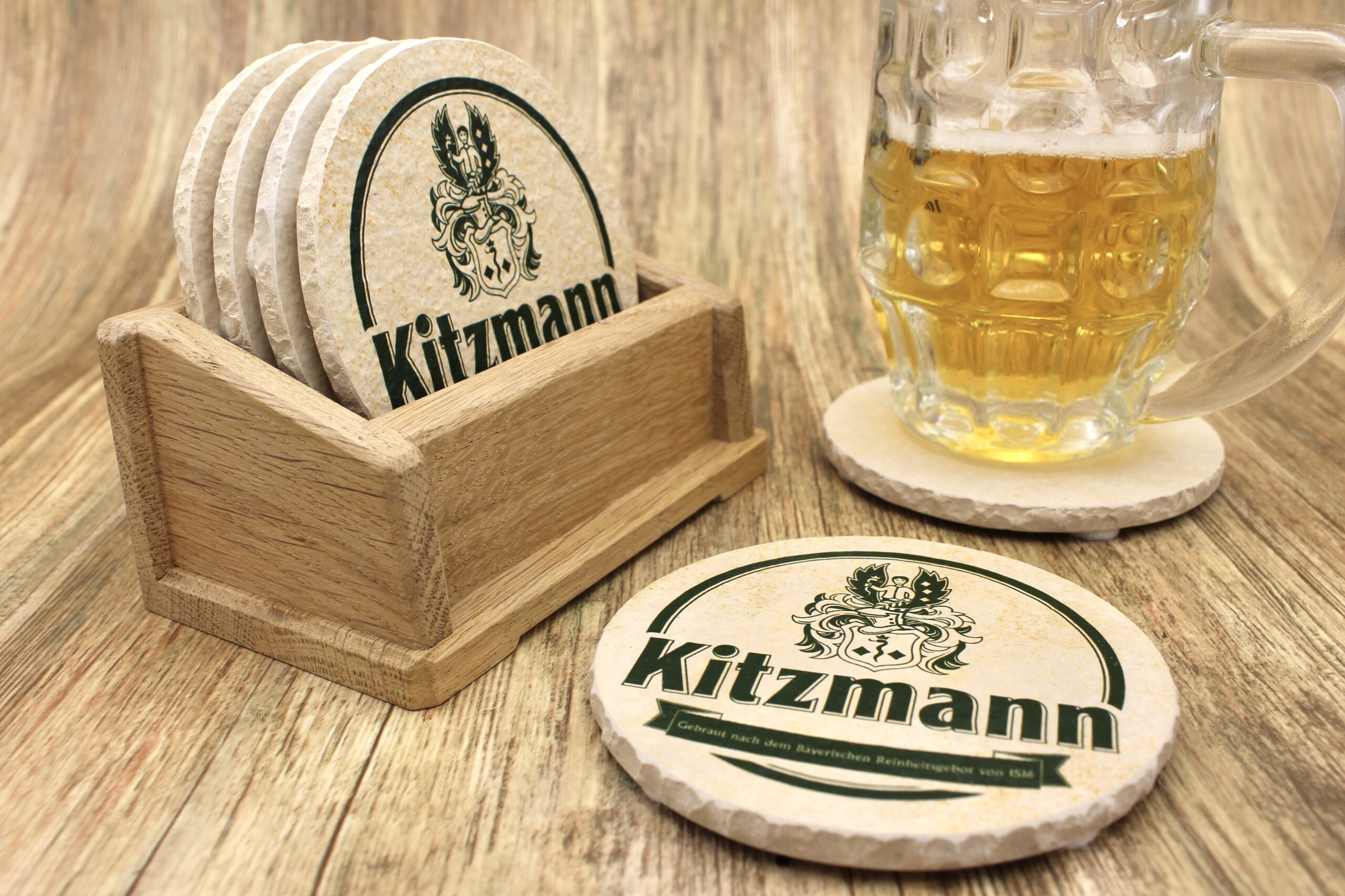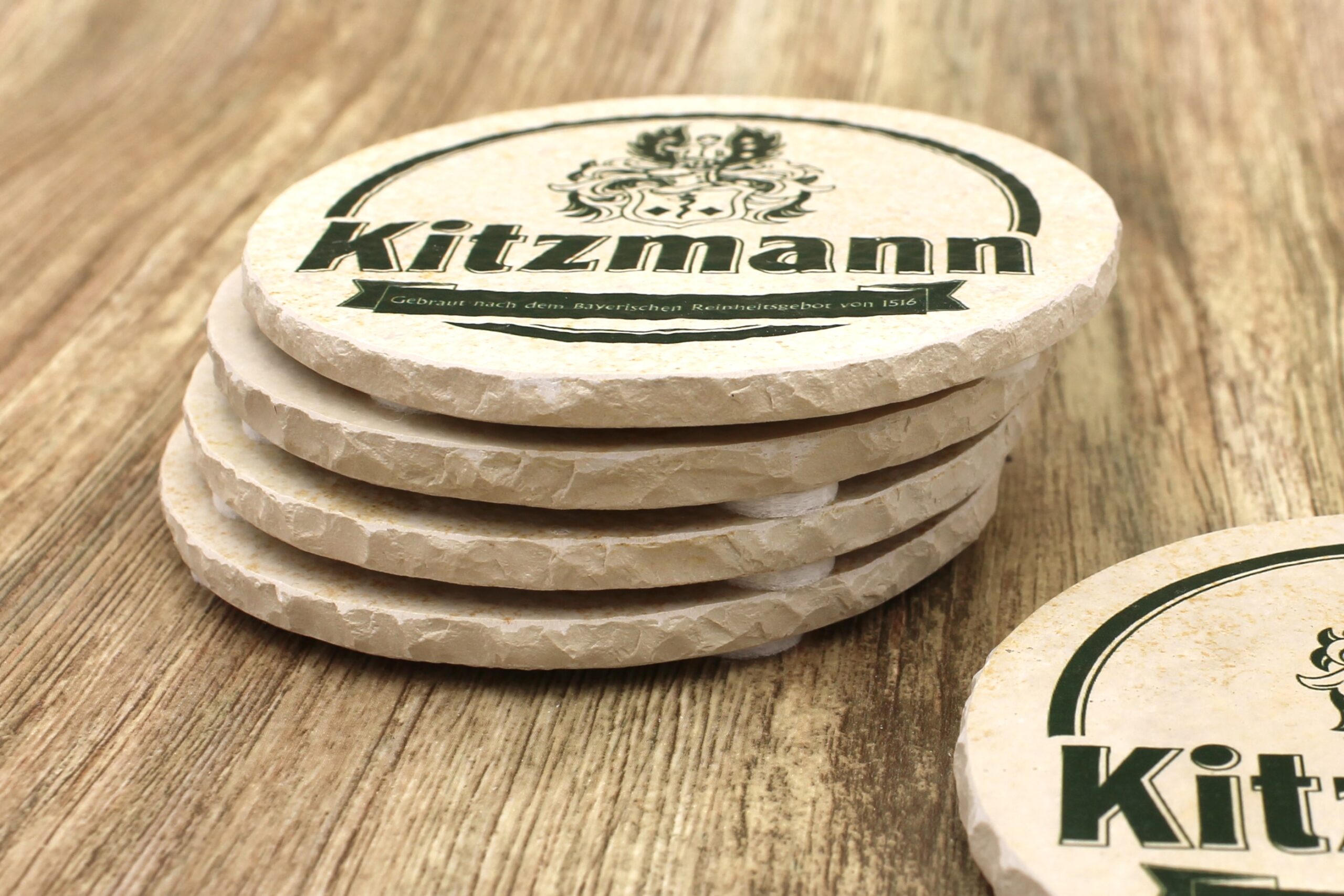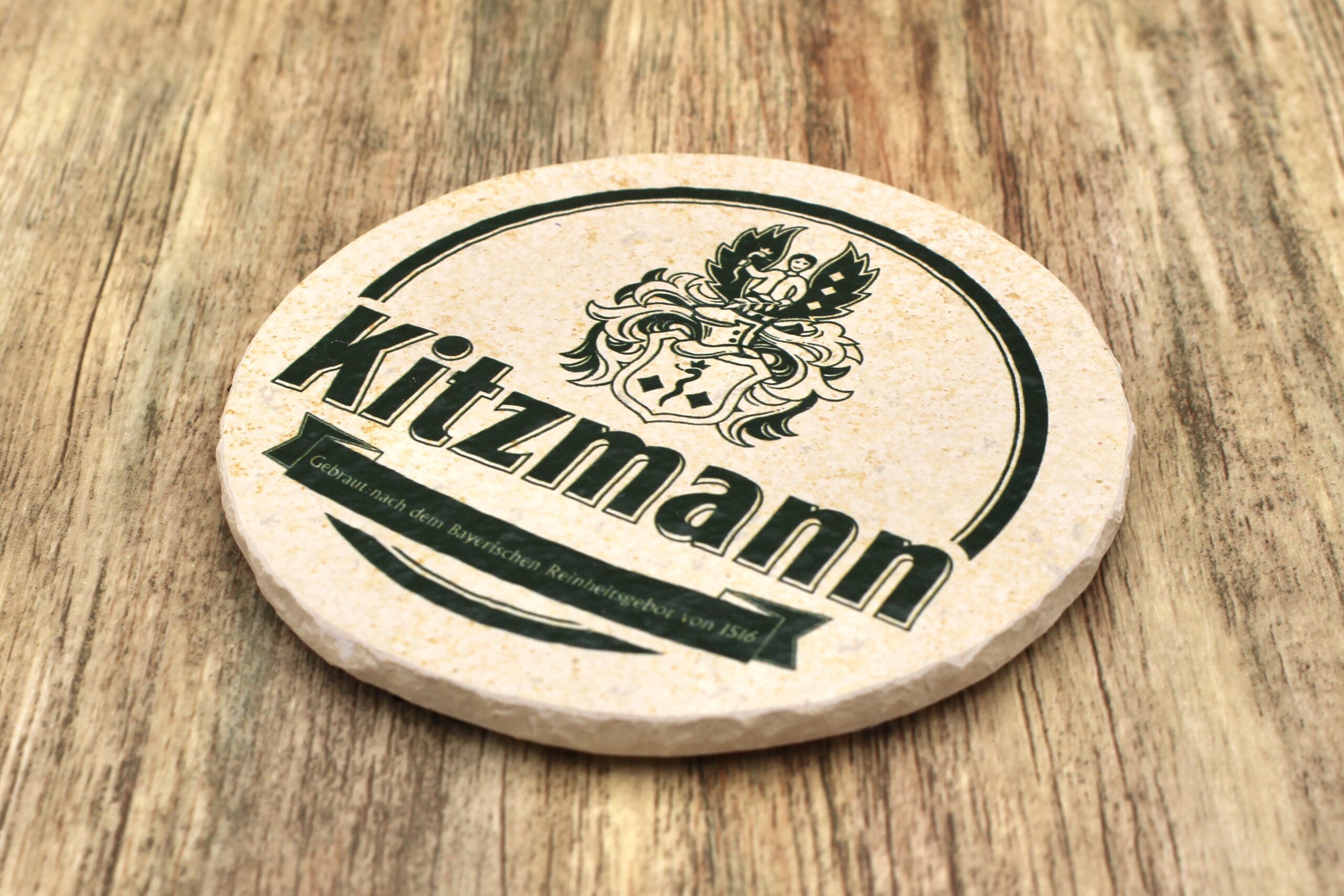 Bierdeckel aus Naturstein mit Logo des Kitzmann Biers aus Erlangen ✓ Dein Fützl: perfekt als Geschenk & Fanartikel & für Sammler ✓ Echt biologisch: Aus Solnhofer Naturstein handgemacht in Bayern ➨ Jetzt bestellen!
