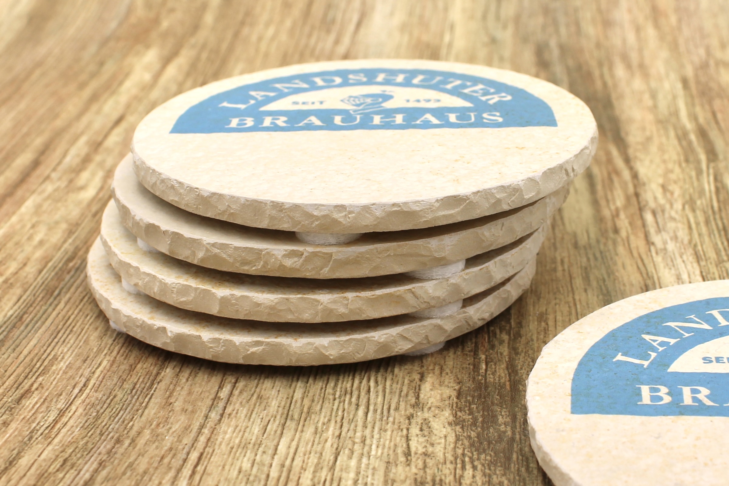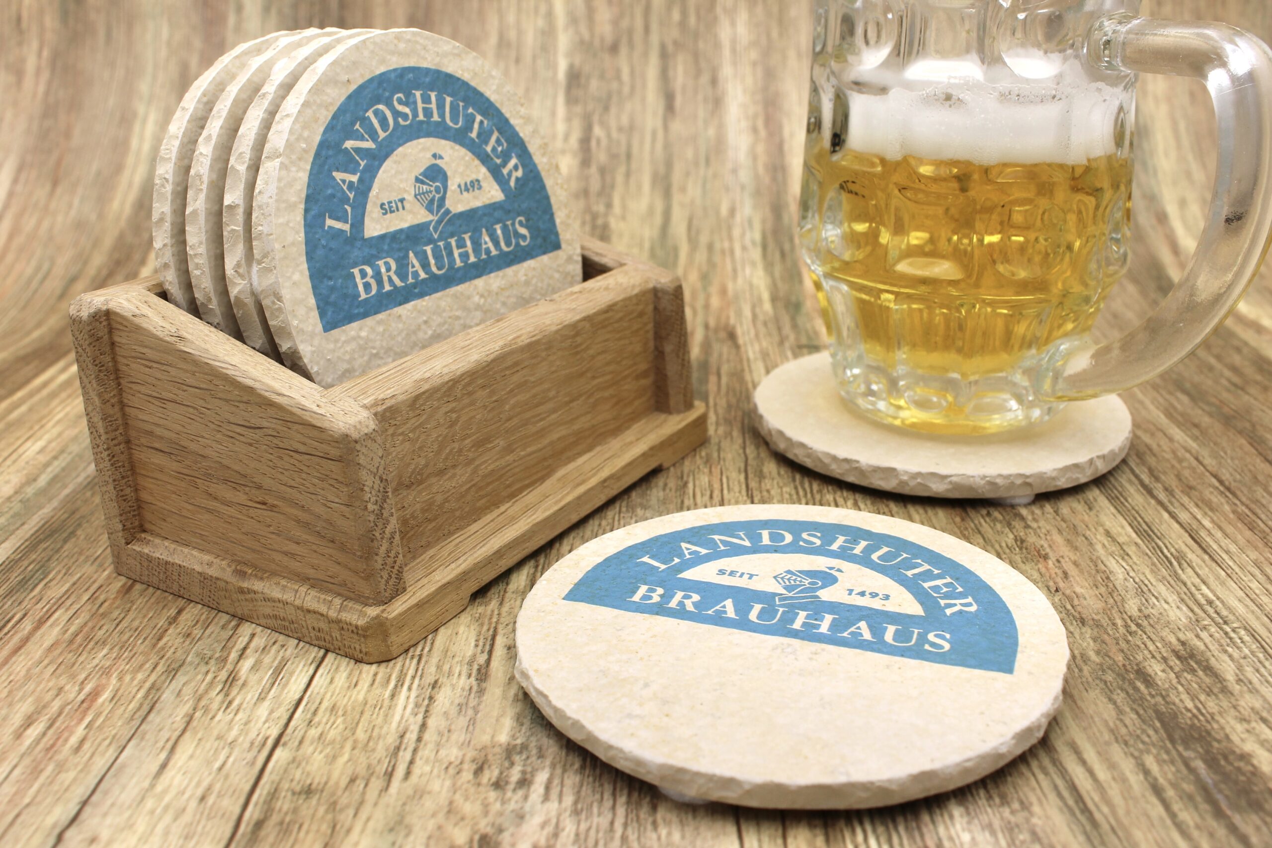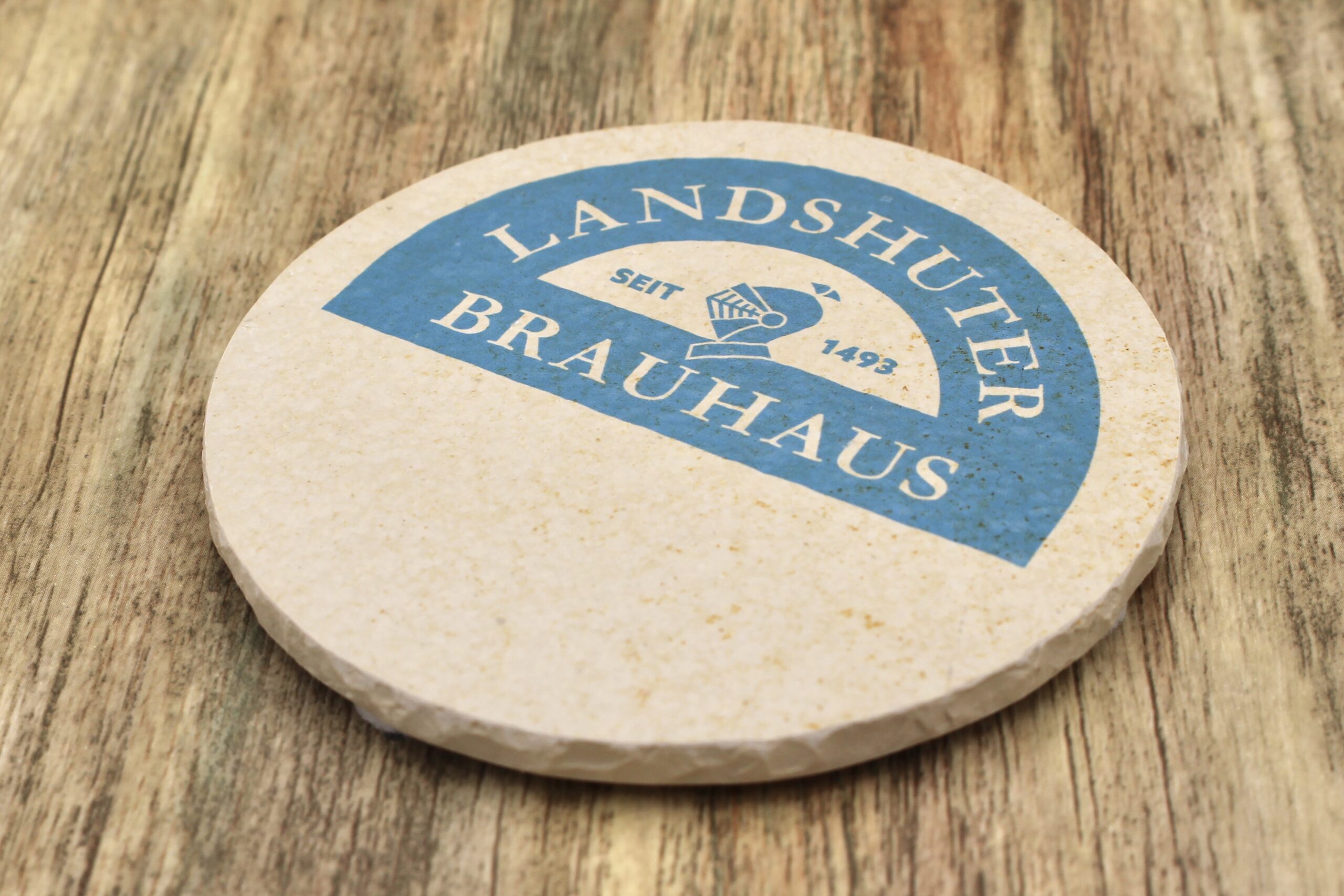 Bierdeckel aus Naturstein mit Logo des Landshuter Brauhauses ✓ Dein Fützl: perfekt als Geschenk & Fanartikel & für Sammler ✓ Echt biologisch: Aus Solnhofer Naturstein handgemacht in Bayern ➨ Jetzt bestellen!