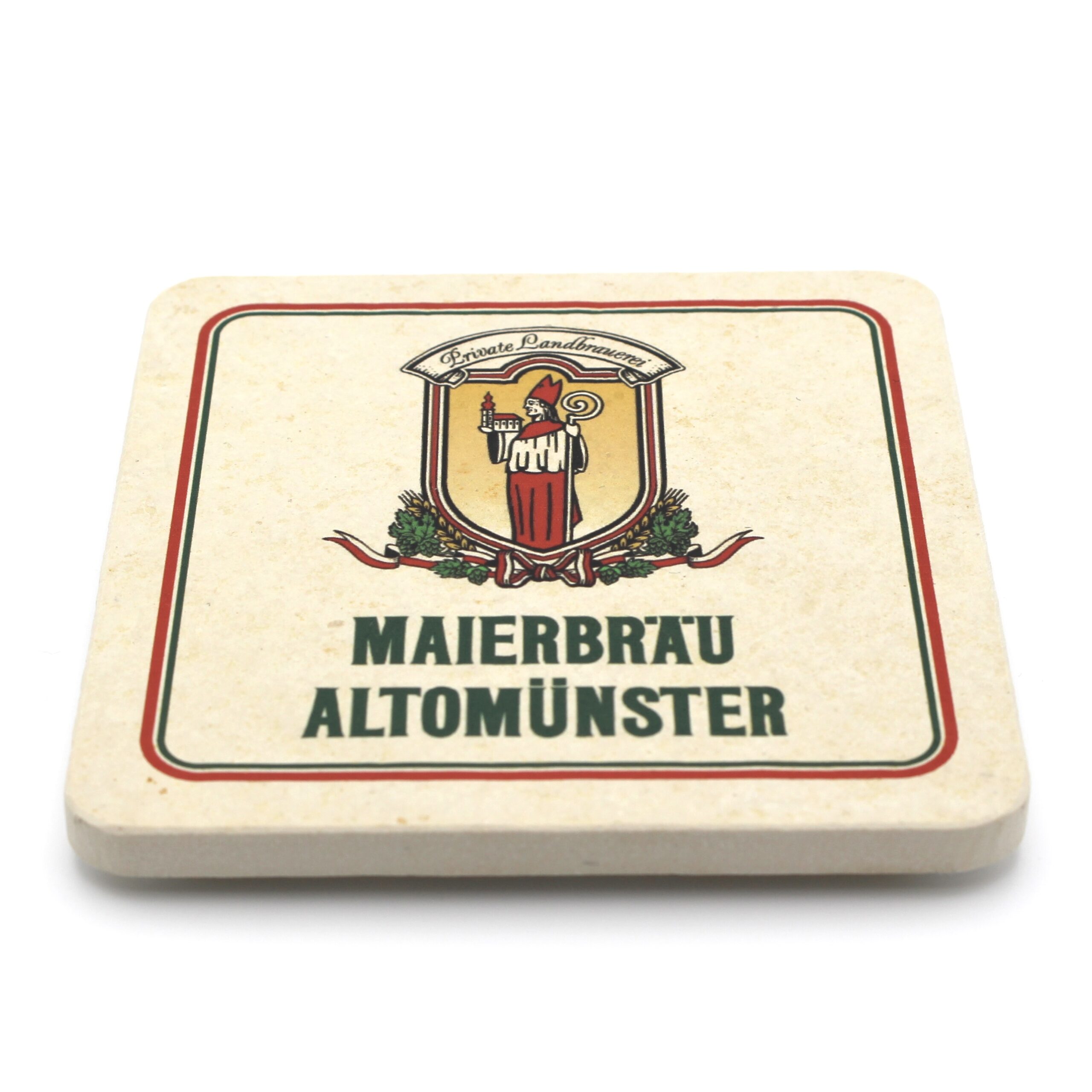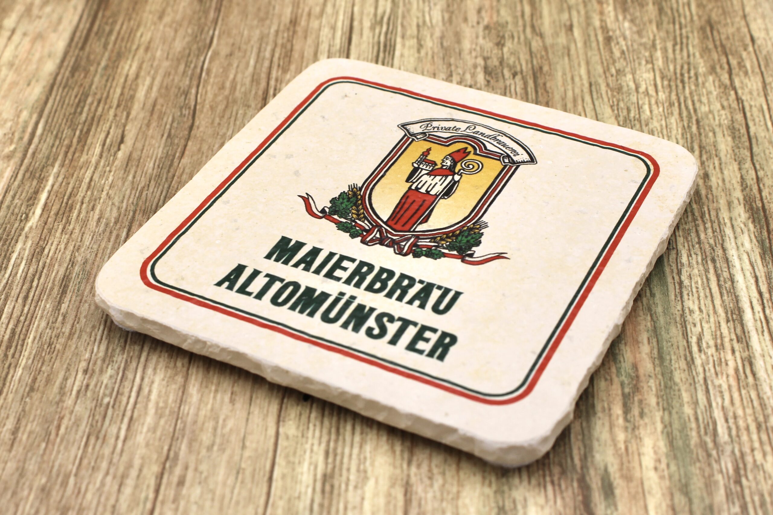 Bierdeckel aus Naturstein mit Logo der Brauerei Maierbräu in Altomünster ✓ Dein Fützl: perfekt als Geschenk & Fanartikel & für Sammler ✓ Echt biologisch: Aus Solnhofer Naturstein handgemacht in Bayern ➨ Jetzt bestellen!