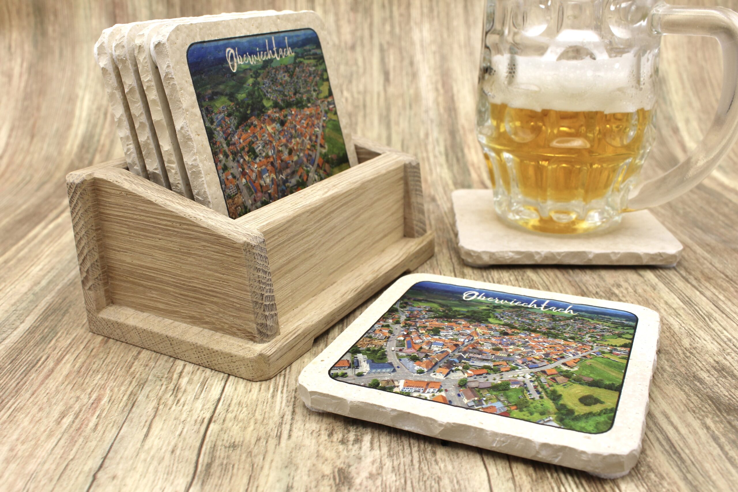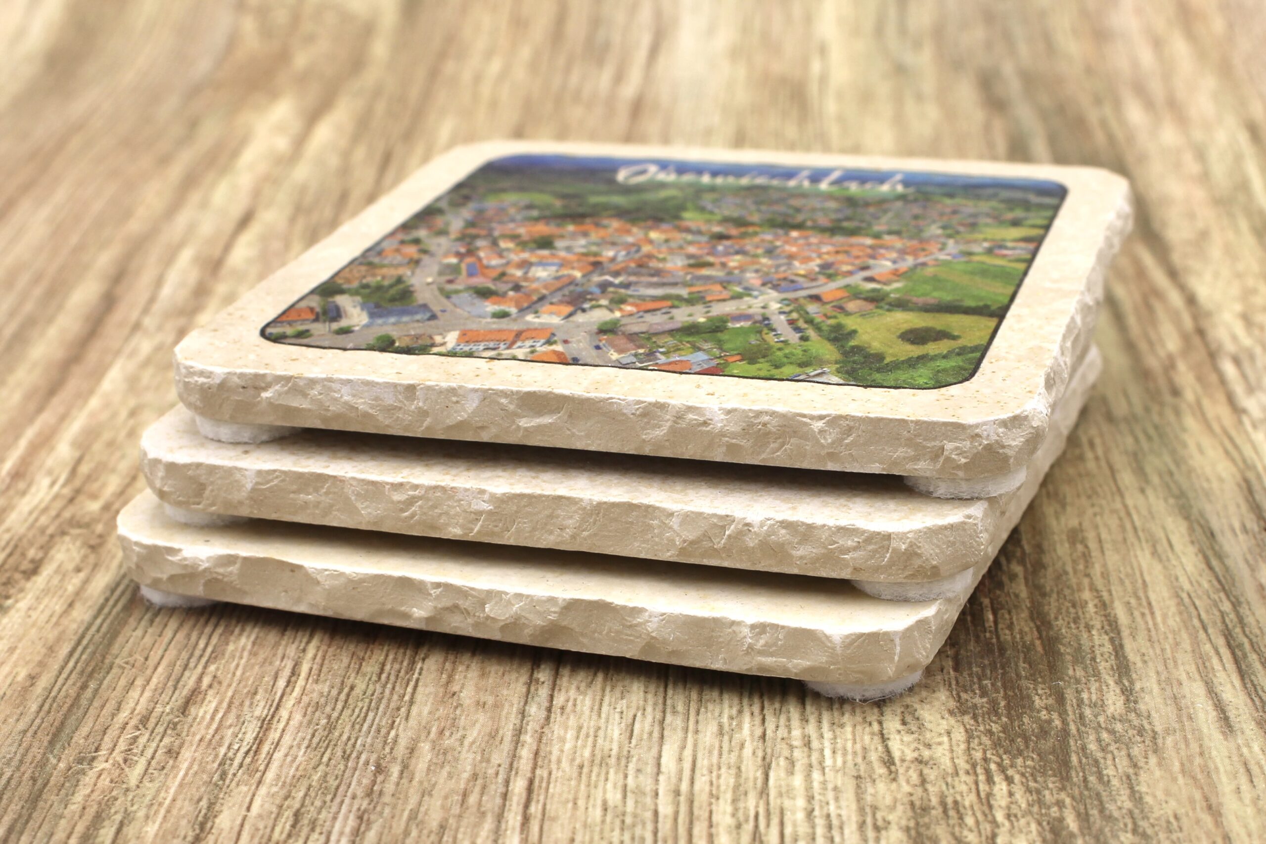 Untersetzer aus Naturstein mit dem Motiv Oberviechtach ✓ Dein Fützl: perfekt als Geschenk & Fanartikel & für Sammler ✓ Echt biologisch: Aus Solnhofer Naturstein handgemacht in Bayern ➨ Jetzt bestellen!