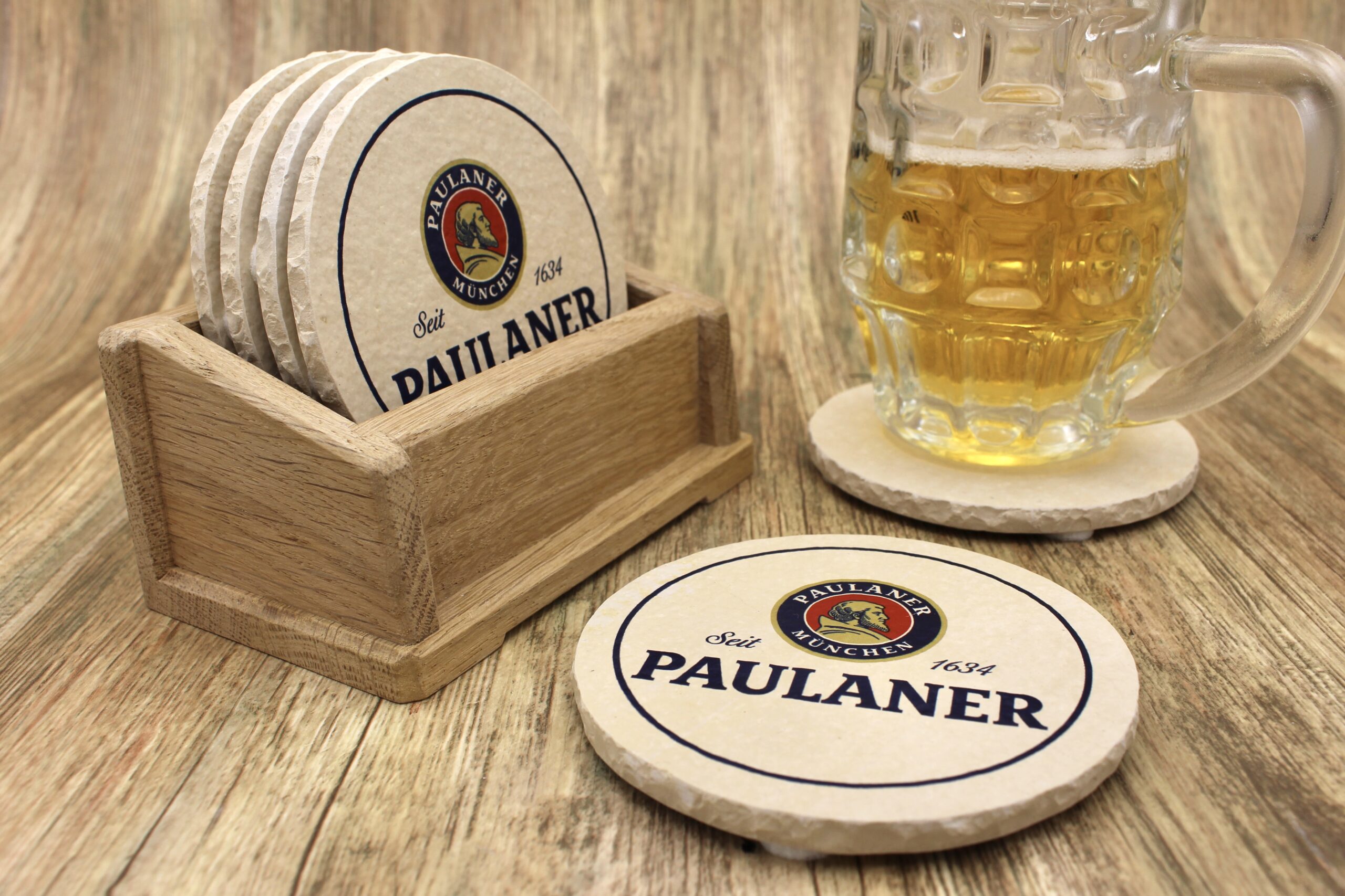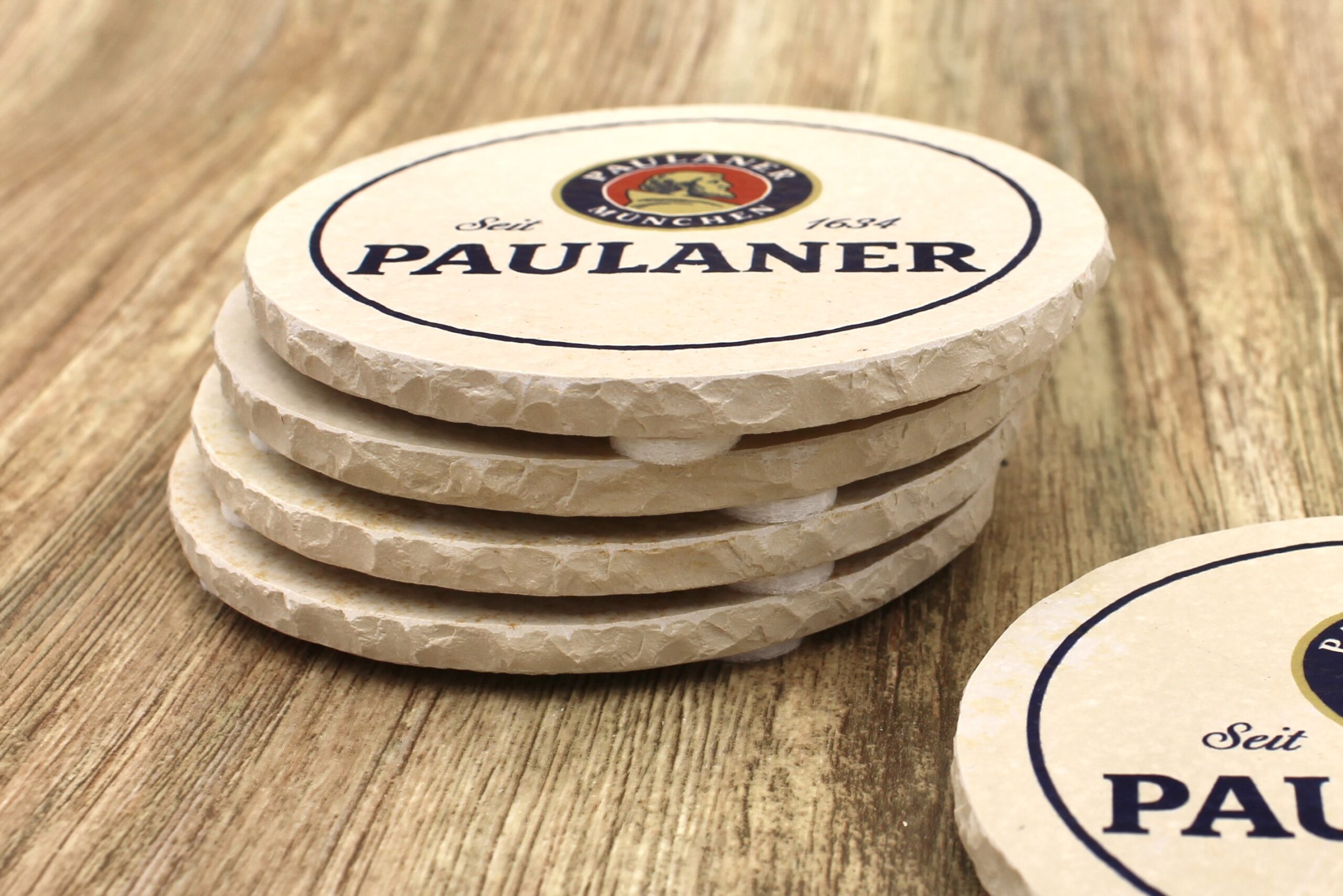 Bierdeckel aus Naturstein mit Logo von Paulaner aus München ✓ Dein Fützl: perfekt als Geschenk & Fanartikel & für Sammler ✓ Echt biologisch: Aus Solnhofer Naturstein handgemacht in Bayern ➨ Jetzt bestellen!