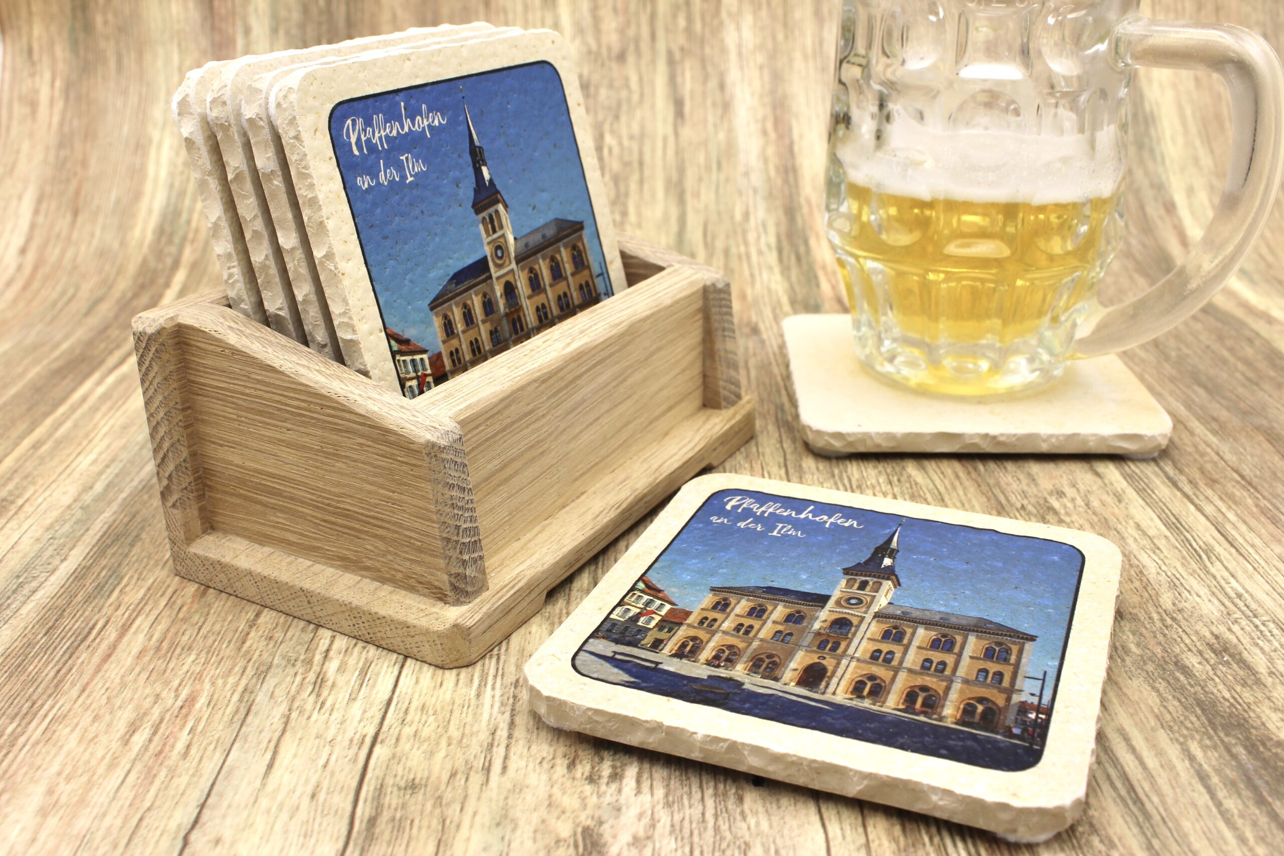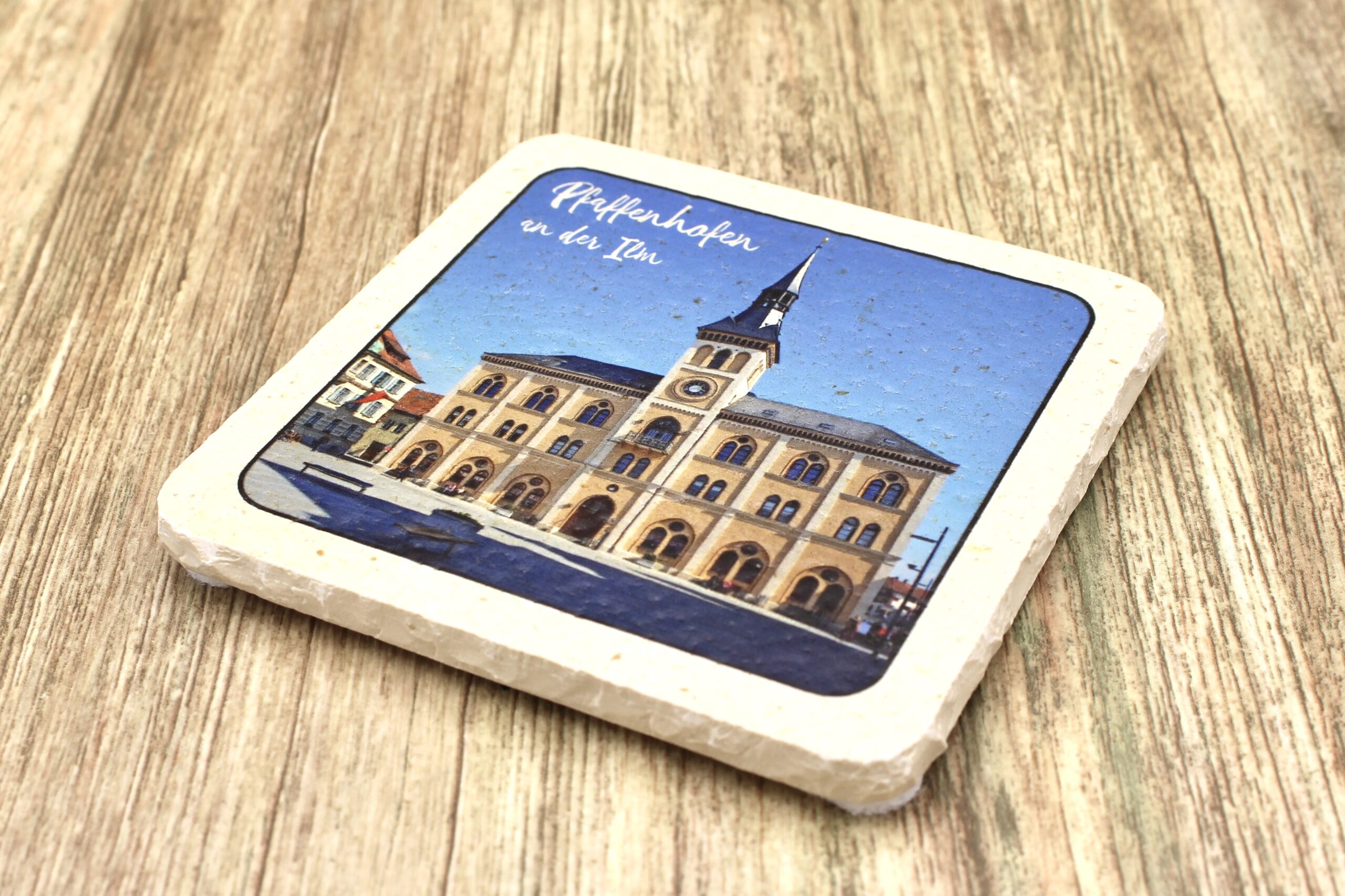 Untersetzer aus Naturstein mit dem Motiv Pfaffenhofen an der Ilm ✓ Dein Fützl: perfekt als Geschenk & Fanartikel & für Sammler ✓ Echt biologisch: Aus Solnhofer Naturstein handgemacht in Bayern ➨ Jetzt bestellen!
