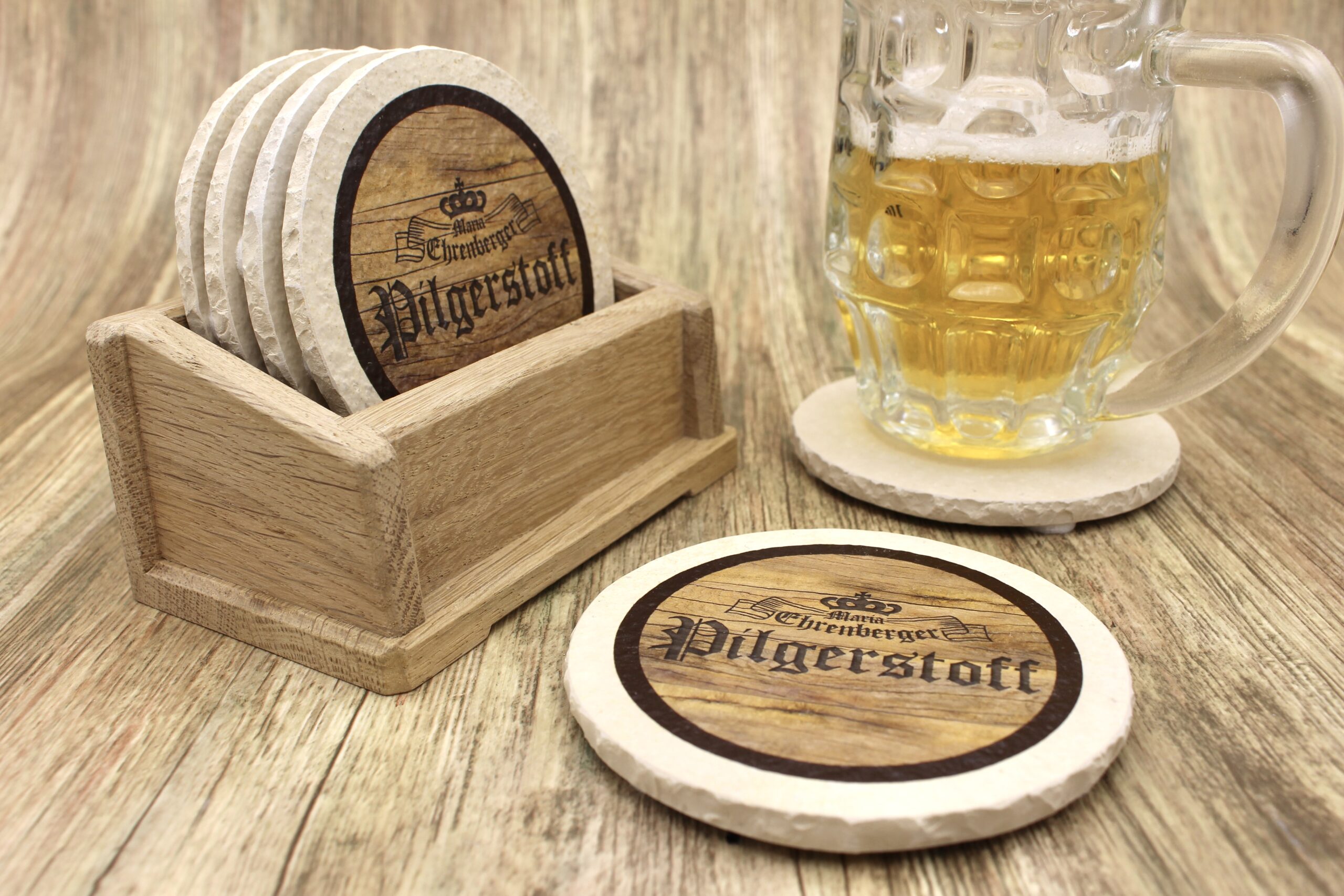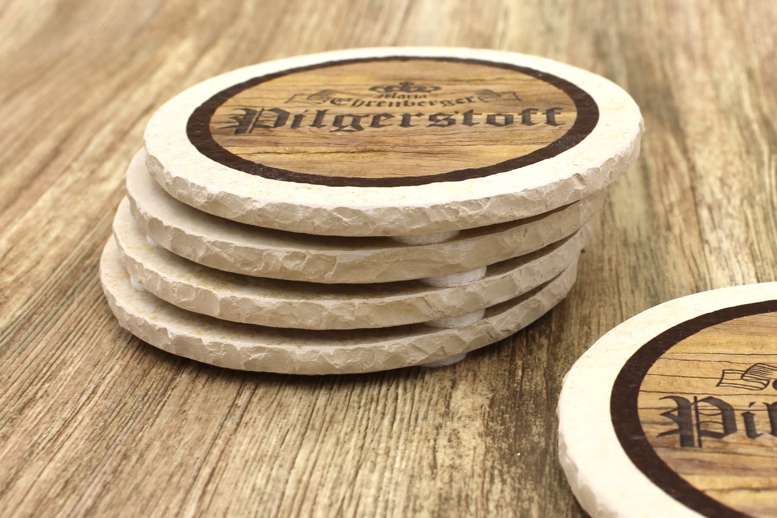 Bierdeckel aus Naturstein mit Logo des Pilgerstoff ✓ Dein Fützl: perfekt als Geschenk & Fanartikel & für Sammler ✓ Echt biologisch: Aus Solnhofer Naturstein handgemacht in Bayern ➨ Jetzt bestellen!