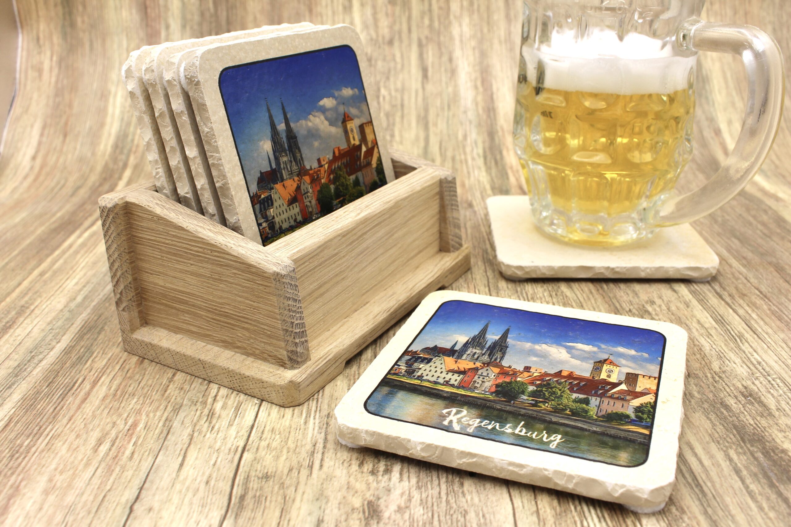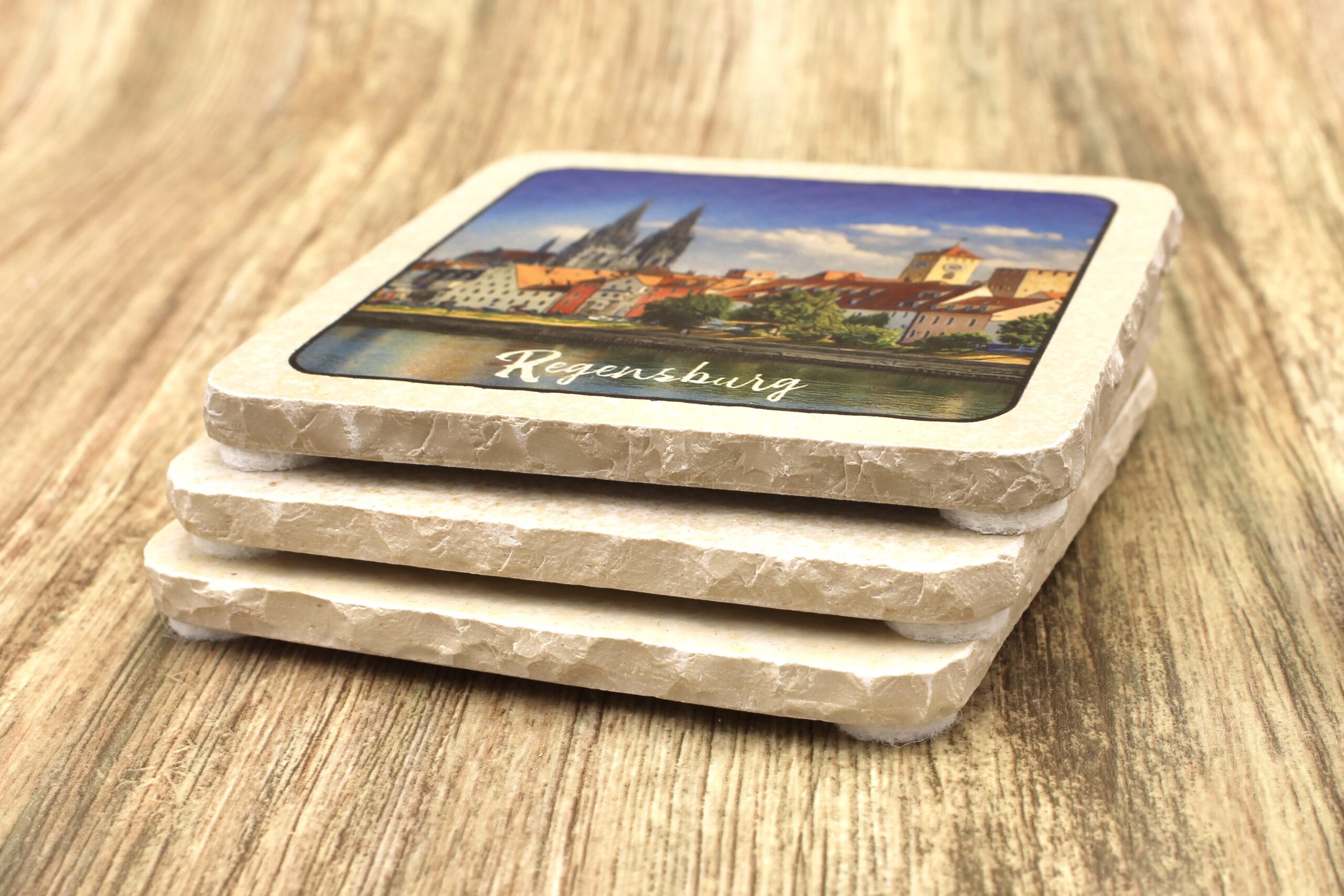 Untersetzer aus Naturstein mit dem Motiv Regensburg 1 ✓ Dein Fützl: perfekt als Geschenk & Fanartikel & für Sammler ✓ Echt biologisch: Aus Solnhofer Naturstein handgemacht in Bayern ➨ Jetzt bestellen!