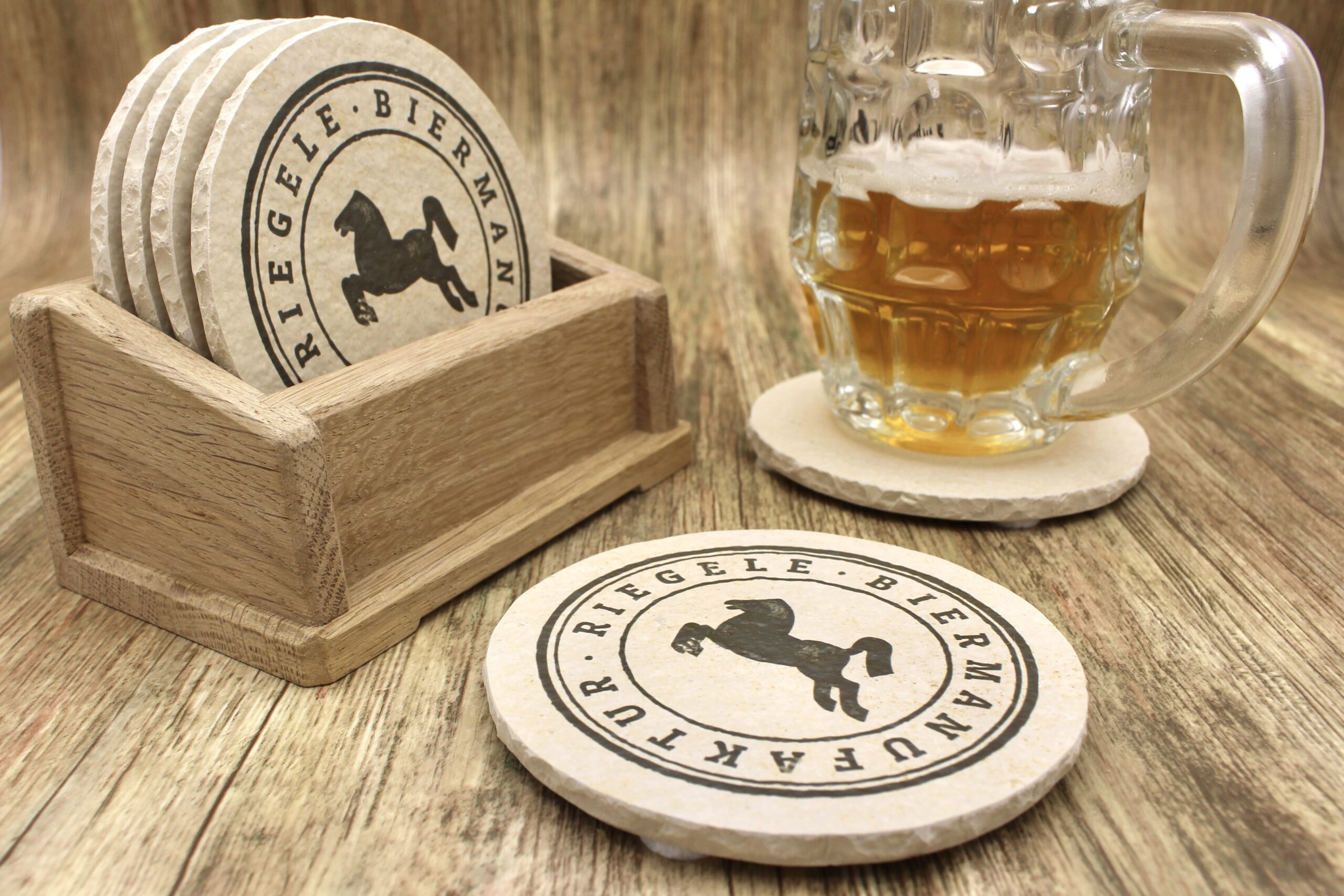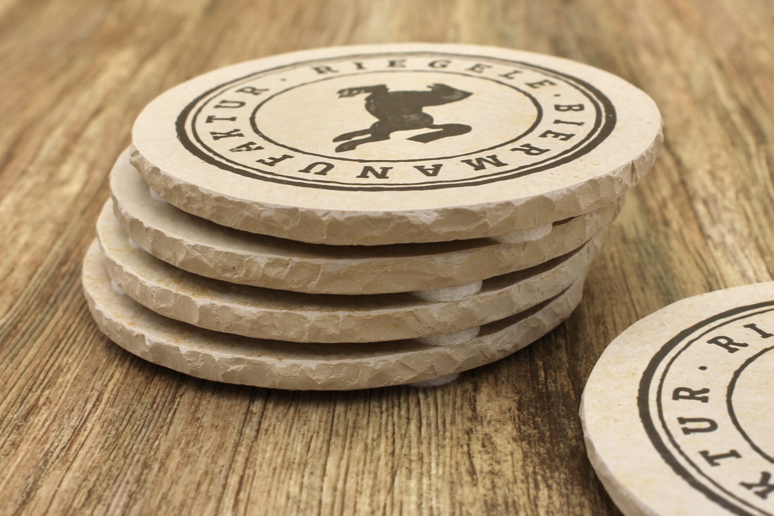 Bierdeckel aus Naturstein mit Logo der Brauerei Riegele in Augsburg ✓ Dein Fützl: perfekt als Geschenk & Fanartikel & für Sammler ✓ Echt biologisch: Aus Solnhofer Naturstein handgemacht in Bayern ➨ Jetzt bestellen!