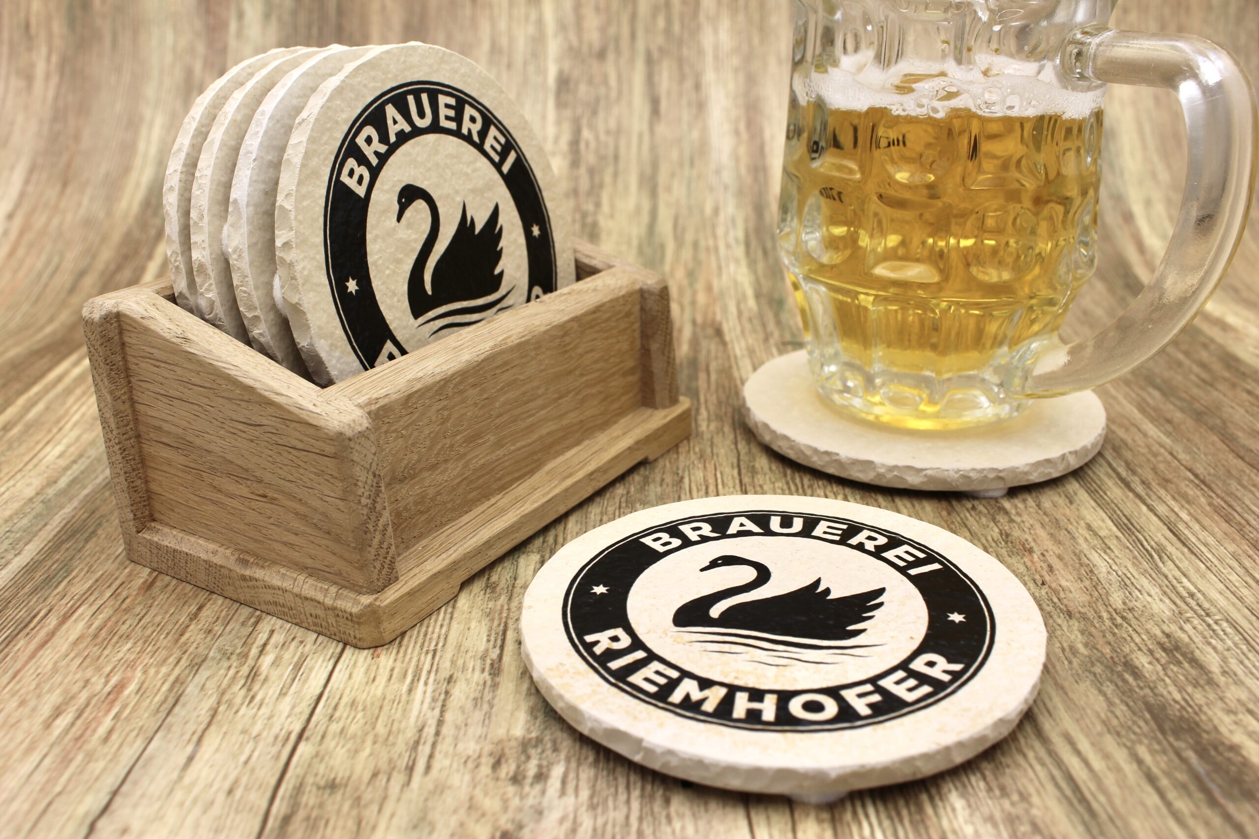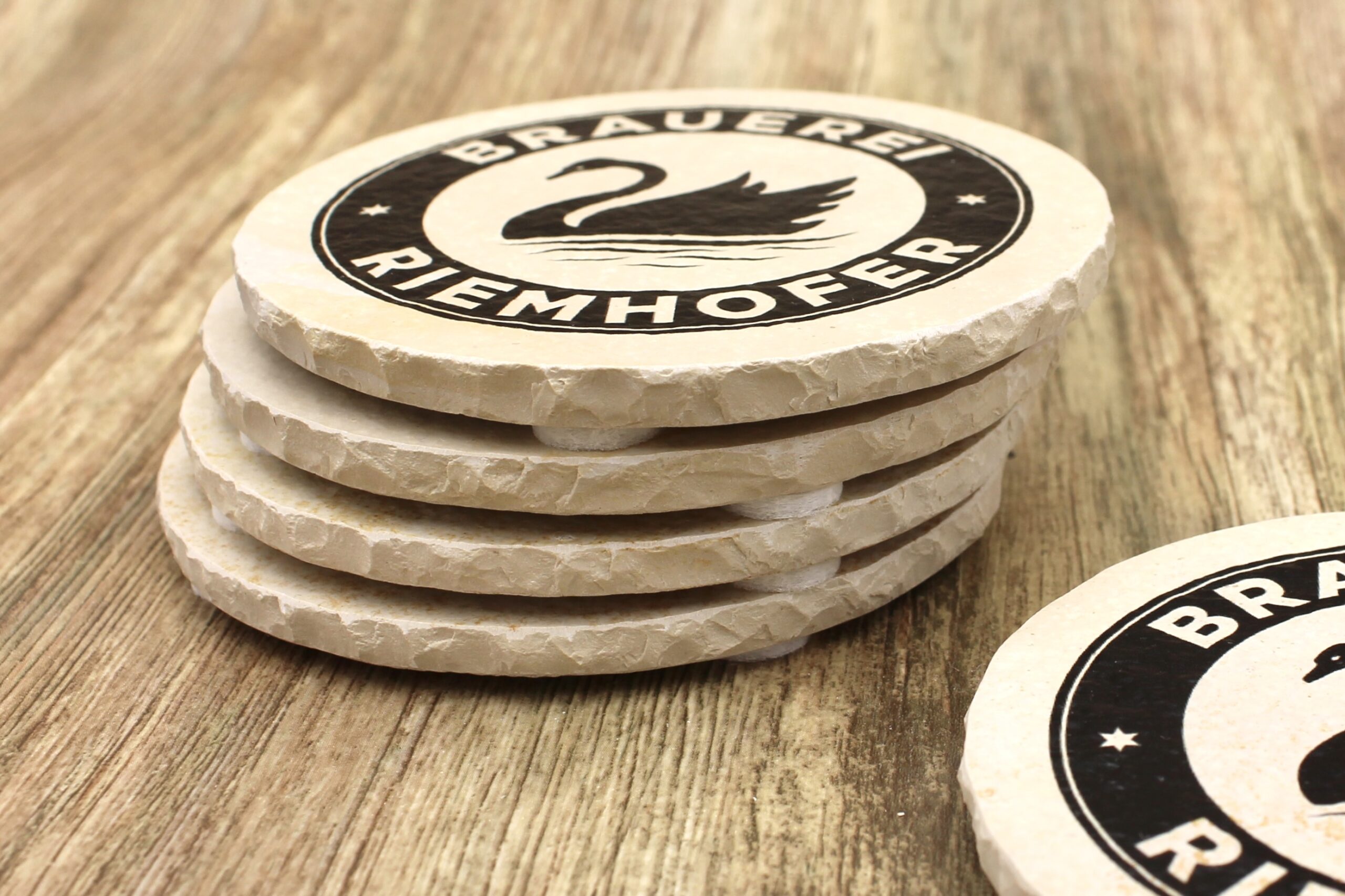 Bierdeckel aus Naturstein mit Logo der Brauerei Riemhofer in Riedenburg ✓ Dein Fützl: perfekt als Geschenk & Fanartikel & für Sammler ✓ Echt biologisch: Aus Solnhofer Naturstein handgemacht in Bayern ➨ Jetzt bestellen!