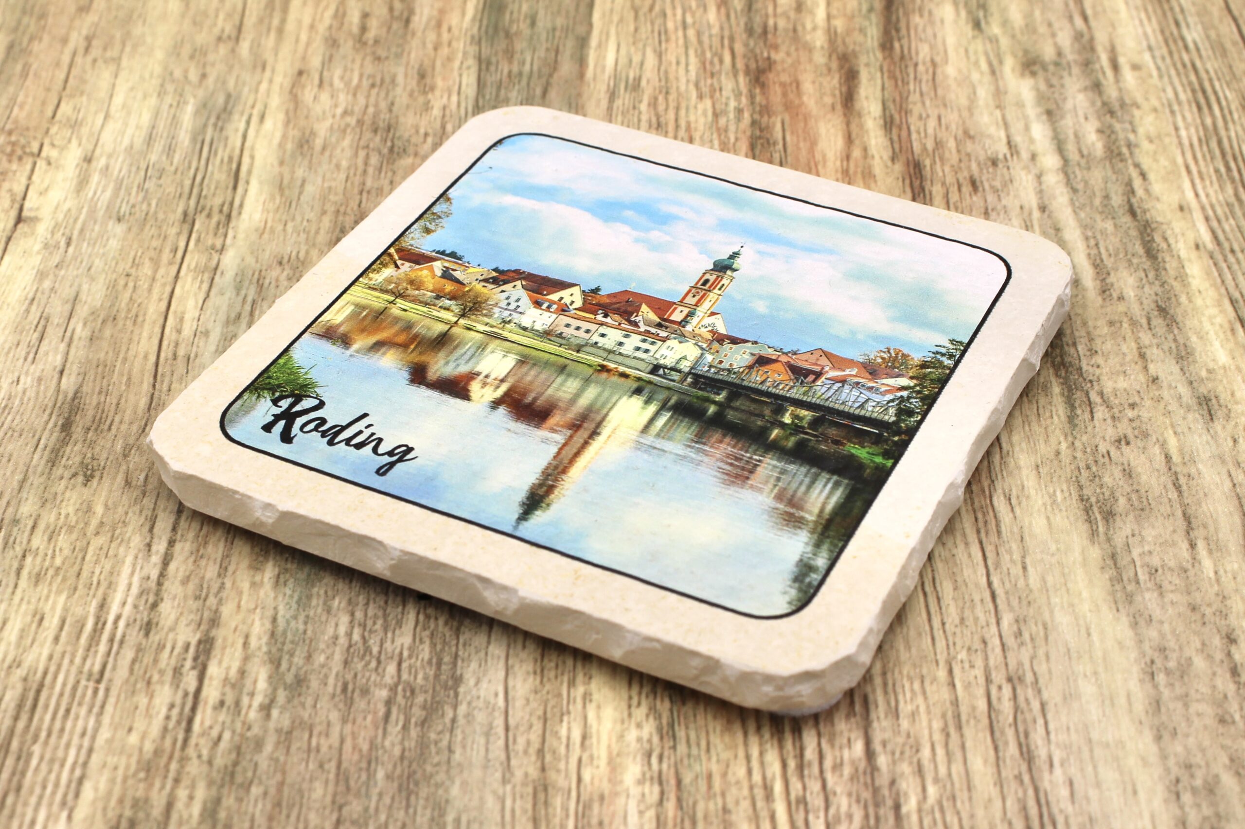 Untersetzer aus Naturstein mit dem Motiv Roding ✓ Dein Fützl: perfekt als Geschenk & Fanartikel & für Sammler ✓ Echt biologisch: Aus Solnhofer Naturstein handgemacht in Bayern ➨ Jetzt bestellen!