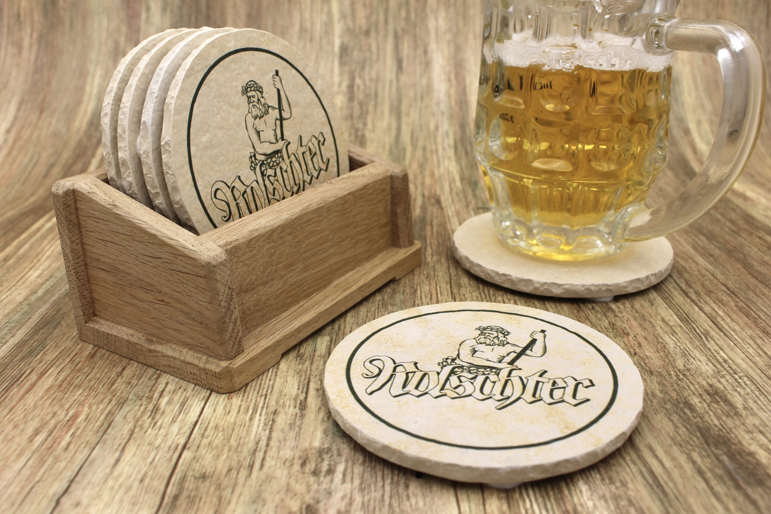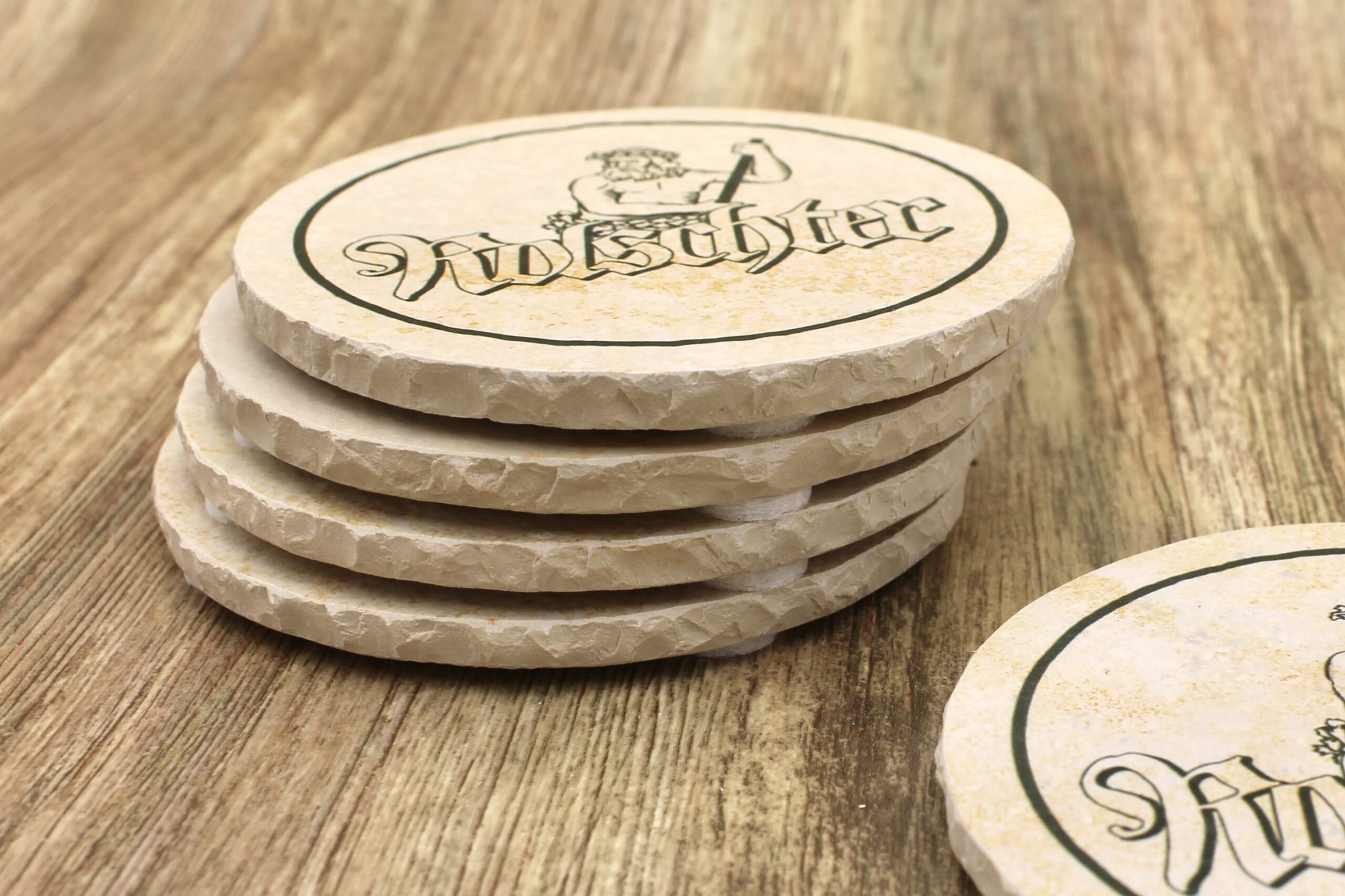Bierdeckel aus Naturstein mit Logo des Rolschter Brauhauses in Rudolstadt ✓ Dein Fützl: perfekt als Geschenk & Fanartikel & für Sammler ✓ Echt biologisch: Aus Solnhofer Naturstein handgemacht in Bayern ➨ Jetzt bestellen!