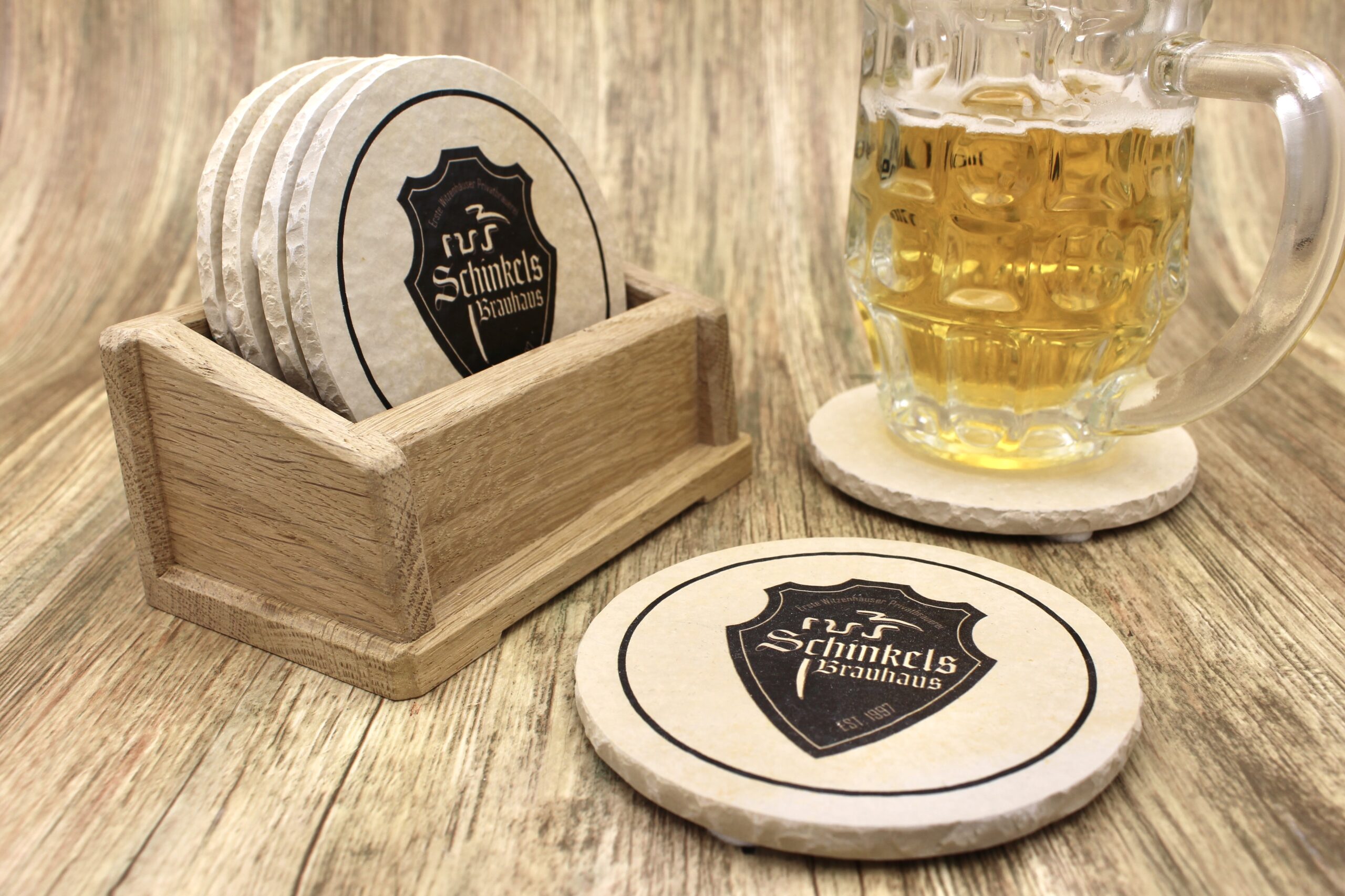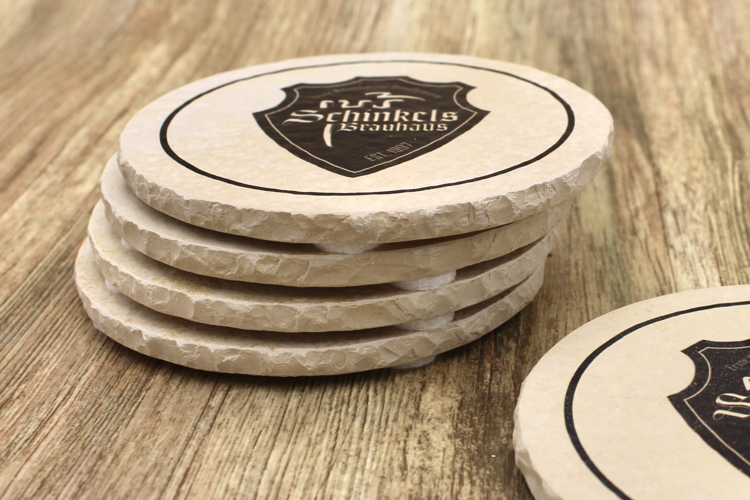 Bierdeckel aus Naturstein mit Logo von Schinkels Brauhaus aus Witzenhausen ✓ Dein Fützl: perfekt als Geschenk & Fanartikel & für Sammler ✓ Echt biologisch: Aus Solnhofer Naturstein handgemacht in Bayern ➨ Jetzt bestellen!