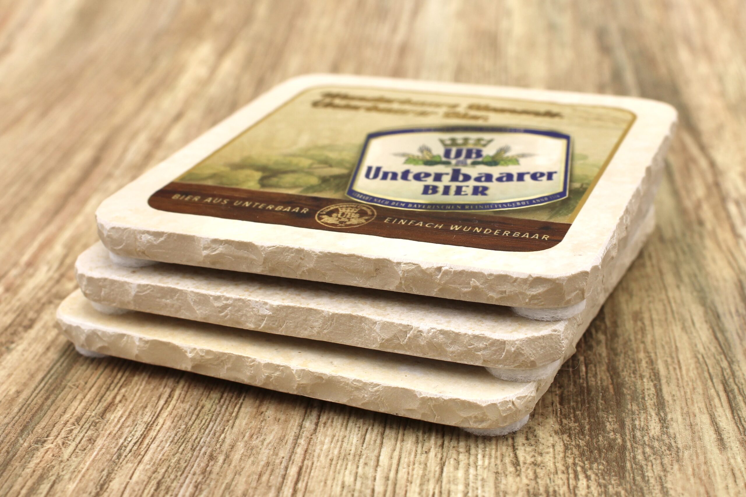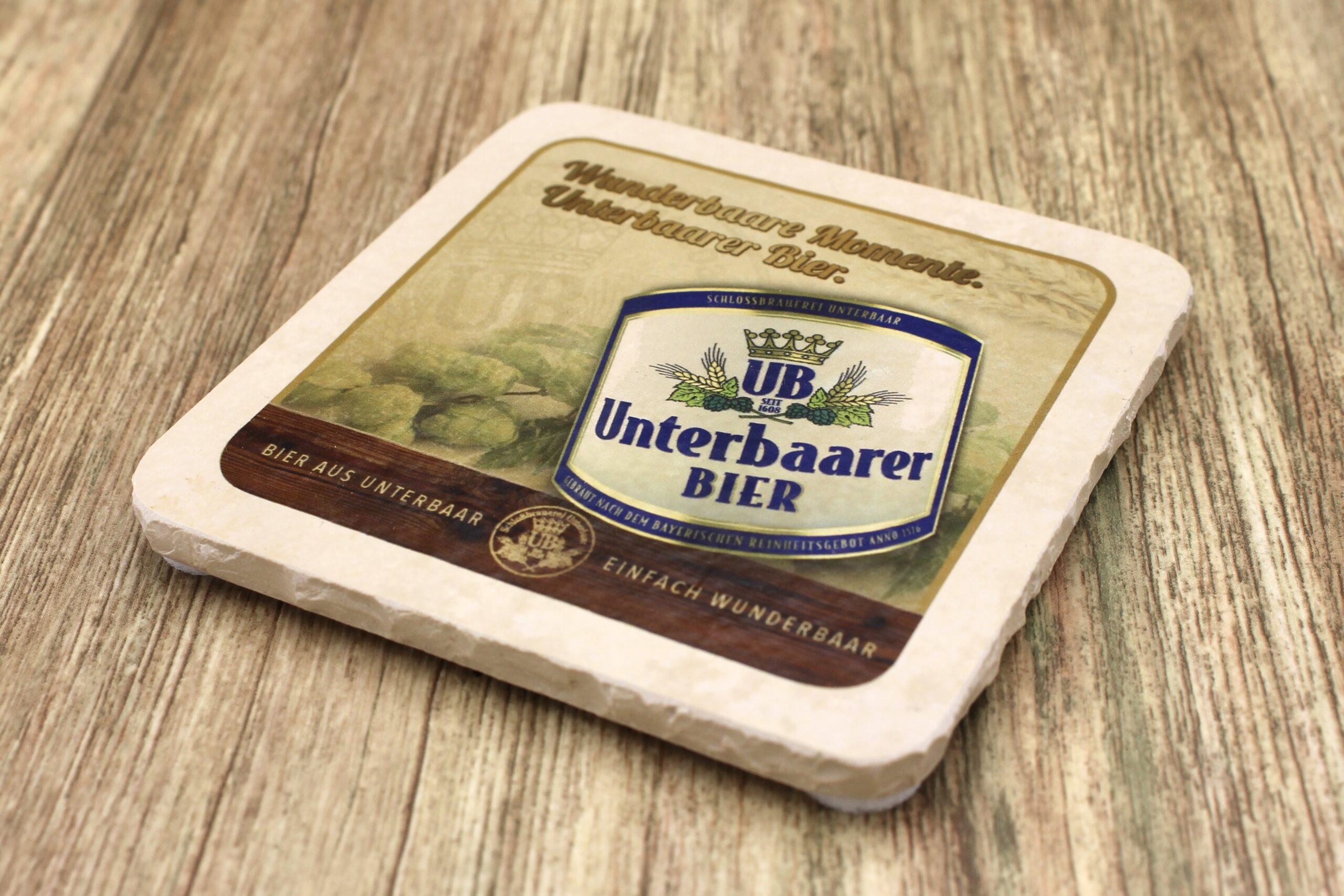 Bierdeckel aus Naturstein mit Logo der Schlossbrauerei aus Unterbaar ✓ Dein Fützl: perfekt als Geschenk & Fanartikel & für Sammler ✓ Echt biologisch: Aus Solnhofer Naturstein handgemacht in Bayern ➨ Jetzt bestellen!