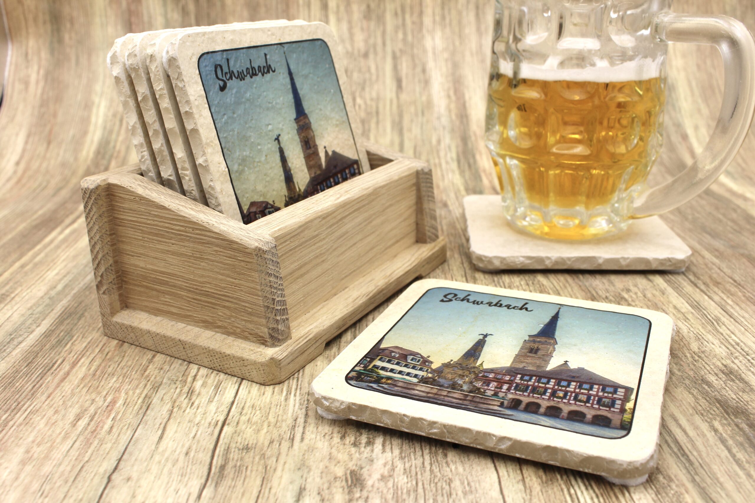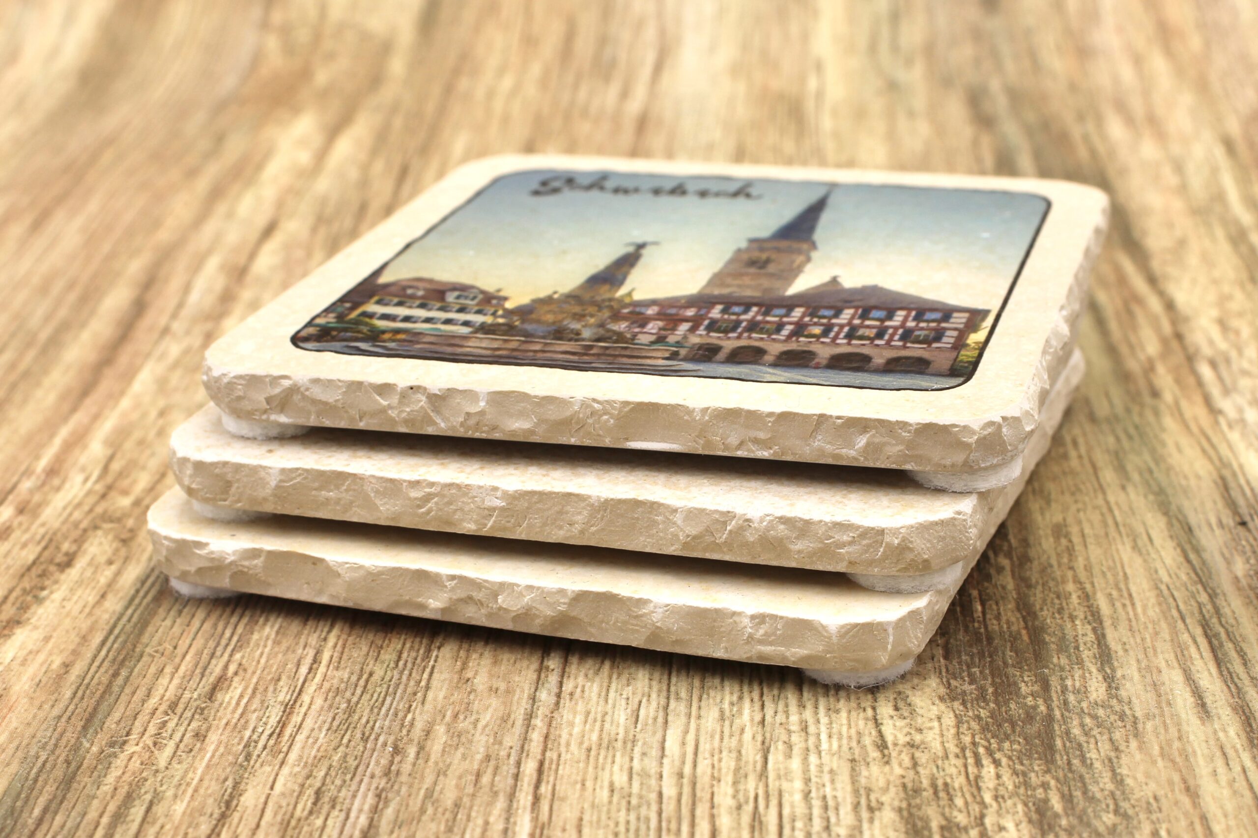 Untersetzer aus Naturstein mit dem Motiv Schwabach ✓ Dein Fützl: perfekt als Geschenk & Fanartikel & für Sammler ✓ Echt biologisch: Aus Solnhofer Naturstein handgemacht in Bayern ➨ Jetzt bestellen!