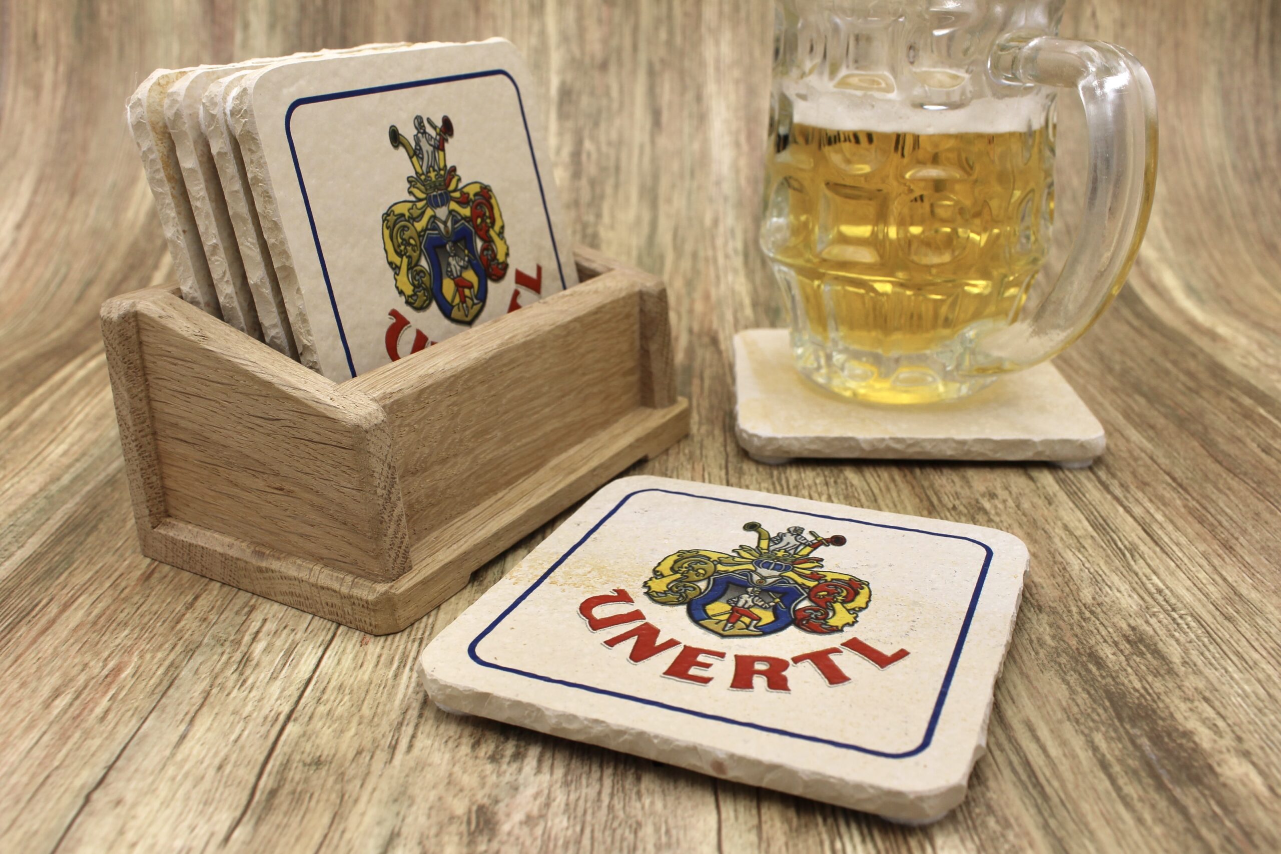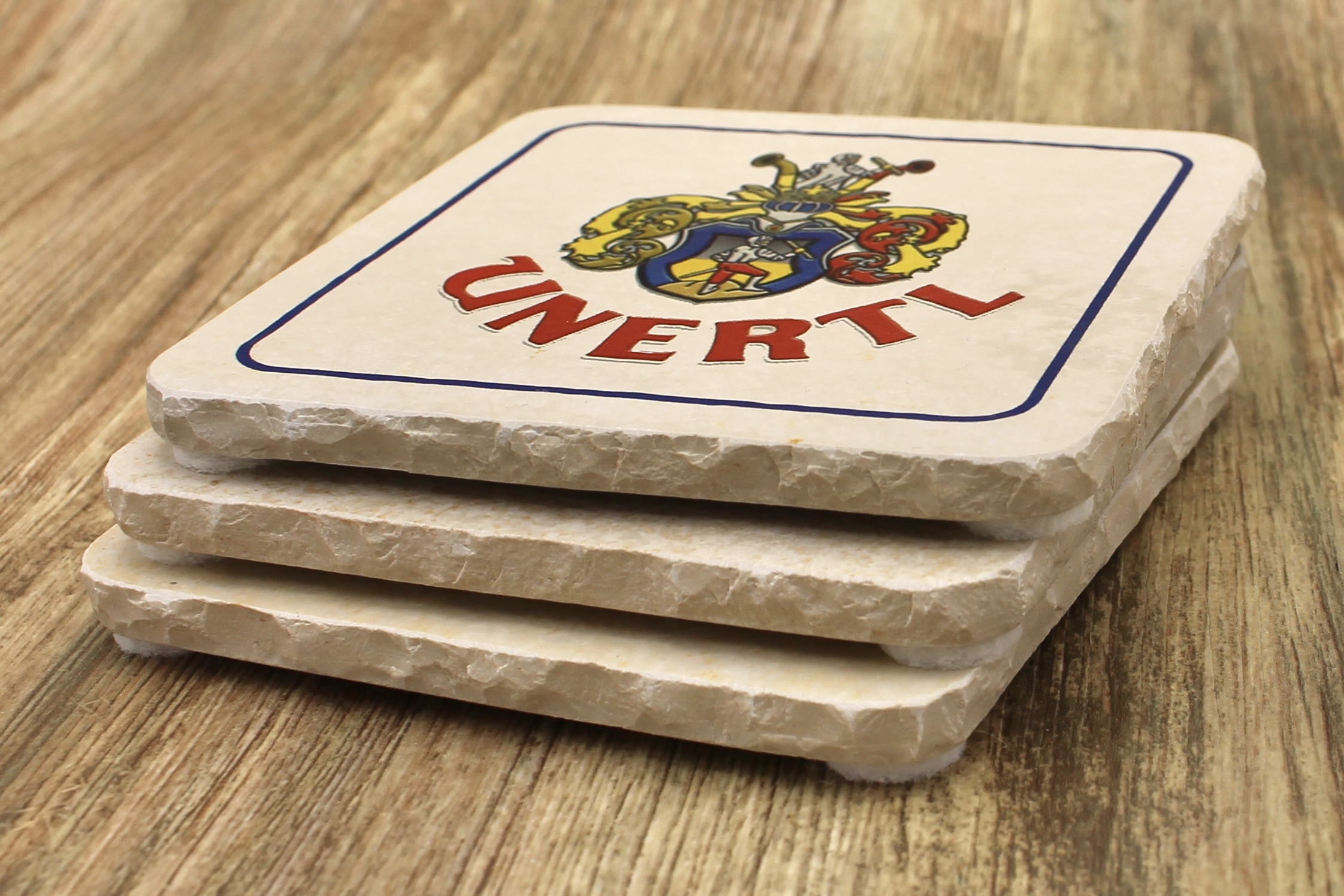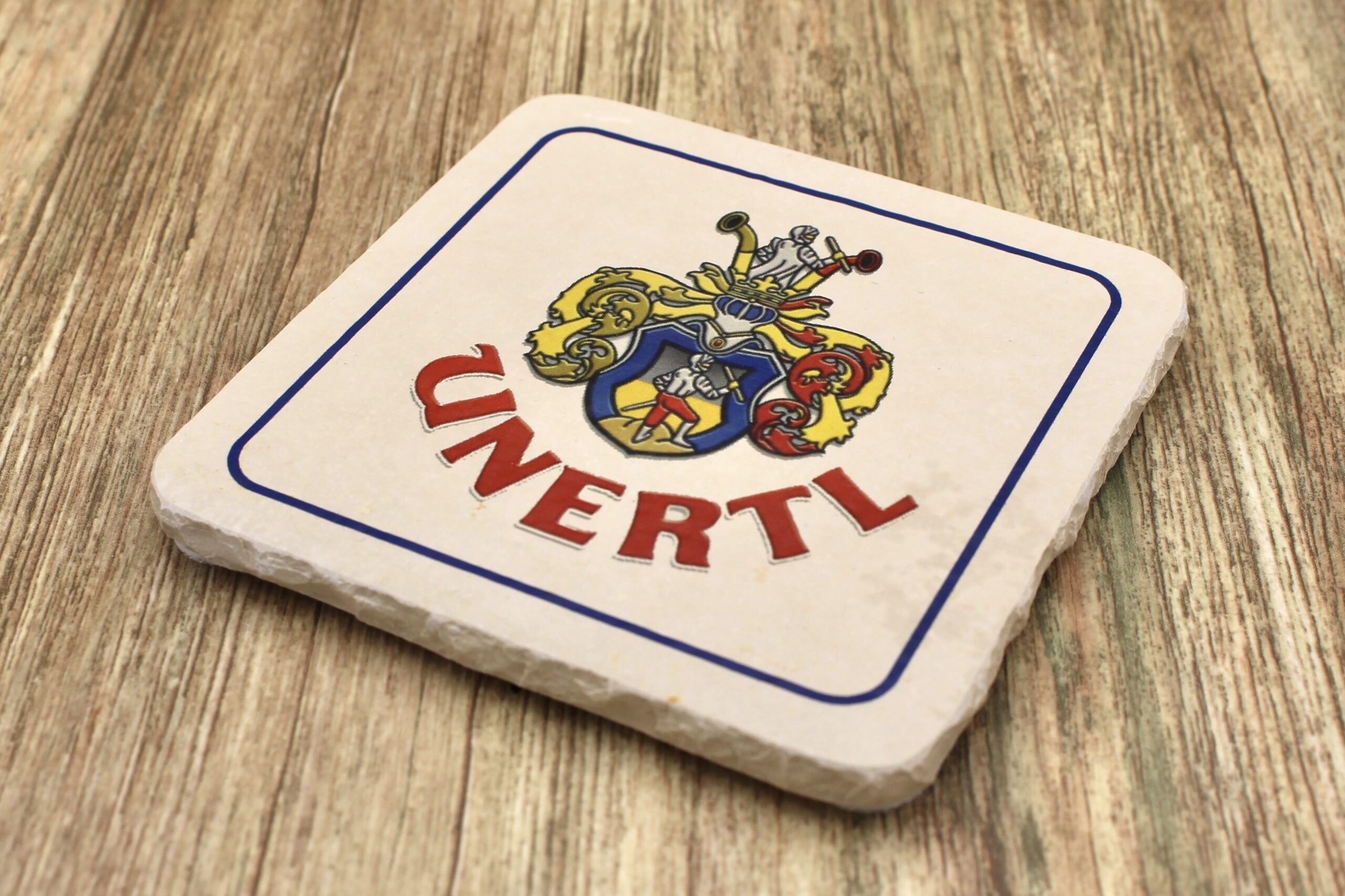 Bierdeckel aus Naturstein mit Logo der Brauerei Unertl in Mühldorf ✓ Dein Fützl: perfekt als Geschenk & Fanartikel & für Sammler ✓ Echt biologisch: Aus Solnhofer Naturstein handgemacht in Bayern ➨ Jetzt bestellen!