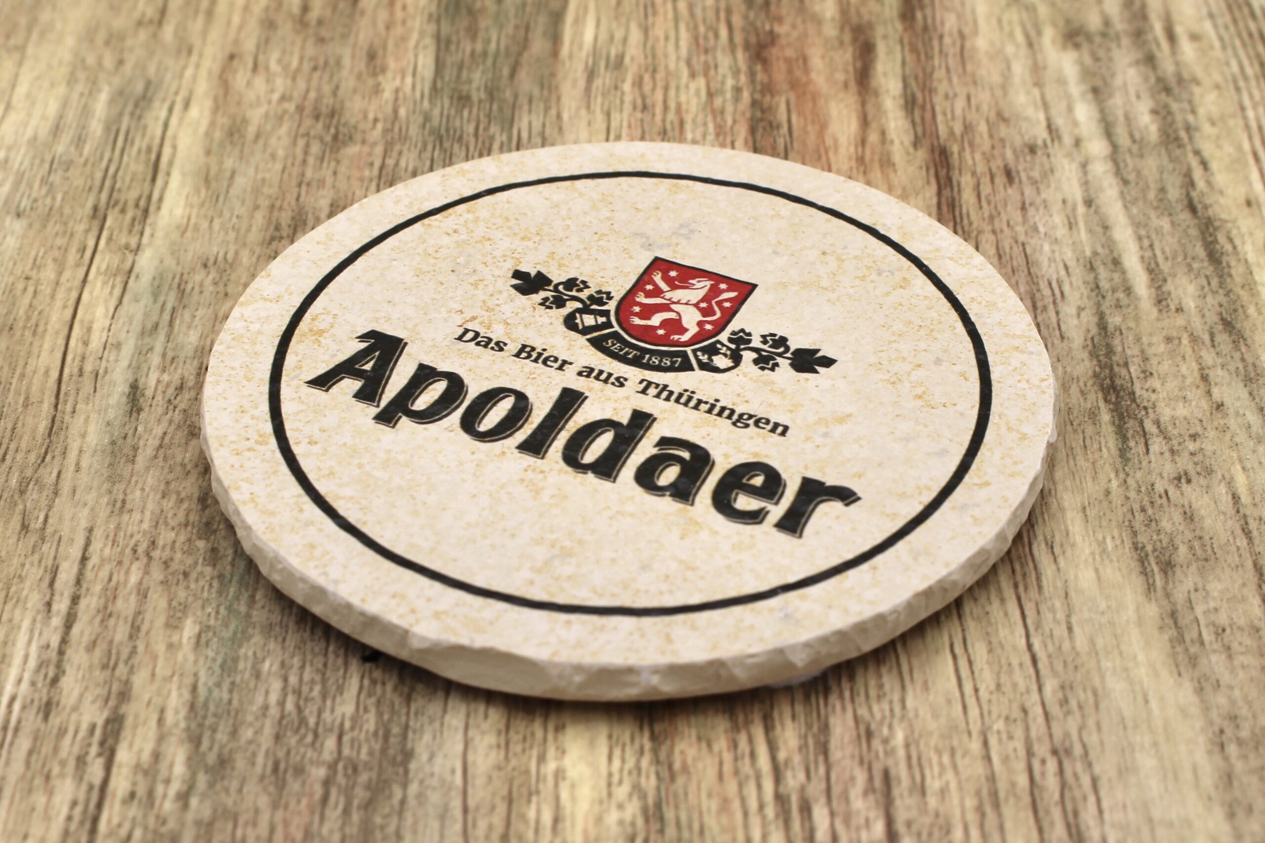 Bierdeckel aus Naturstein mit Logo der Vereinsbrauerei Apolda ✓ Dein Fützl: perfekt als Geschenk & Fanartikel & für Sammler ✓ Echt biologisch: Aus Solnhofer Naturstein handgemacht in Bayern ➨ Jetzt bestellen!