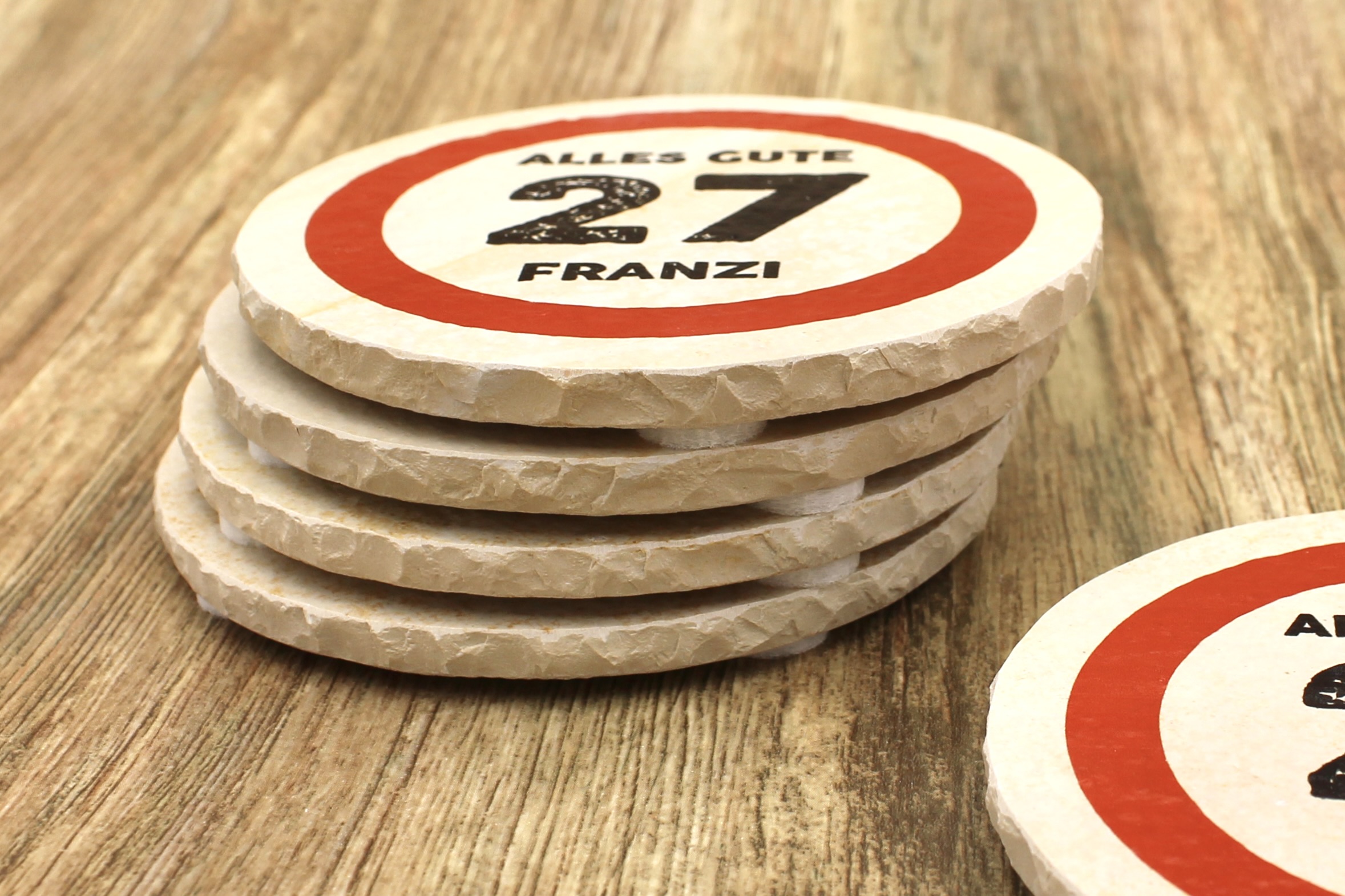 Untersetzer aus Naturstein mit dem Motiv „Geburtstags Verkehrsschild“ ✓ Dein Fützl: perfekt als Geschenk & Fanartikel & für Sammler ✓ Echt biologisch: Aus Solnhofer Naturstein handgemacht in Bayern ➨ Jetzt bestellen!