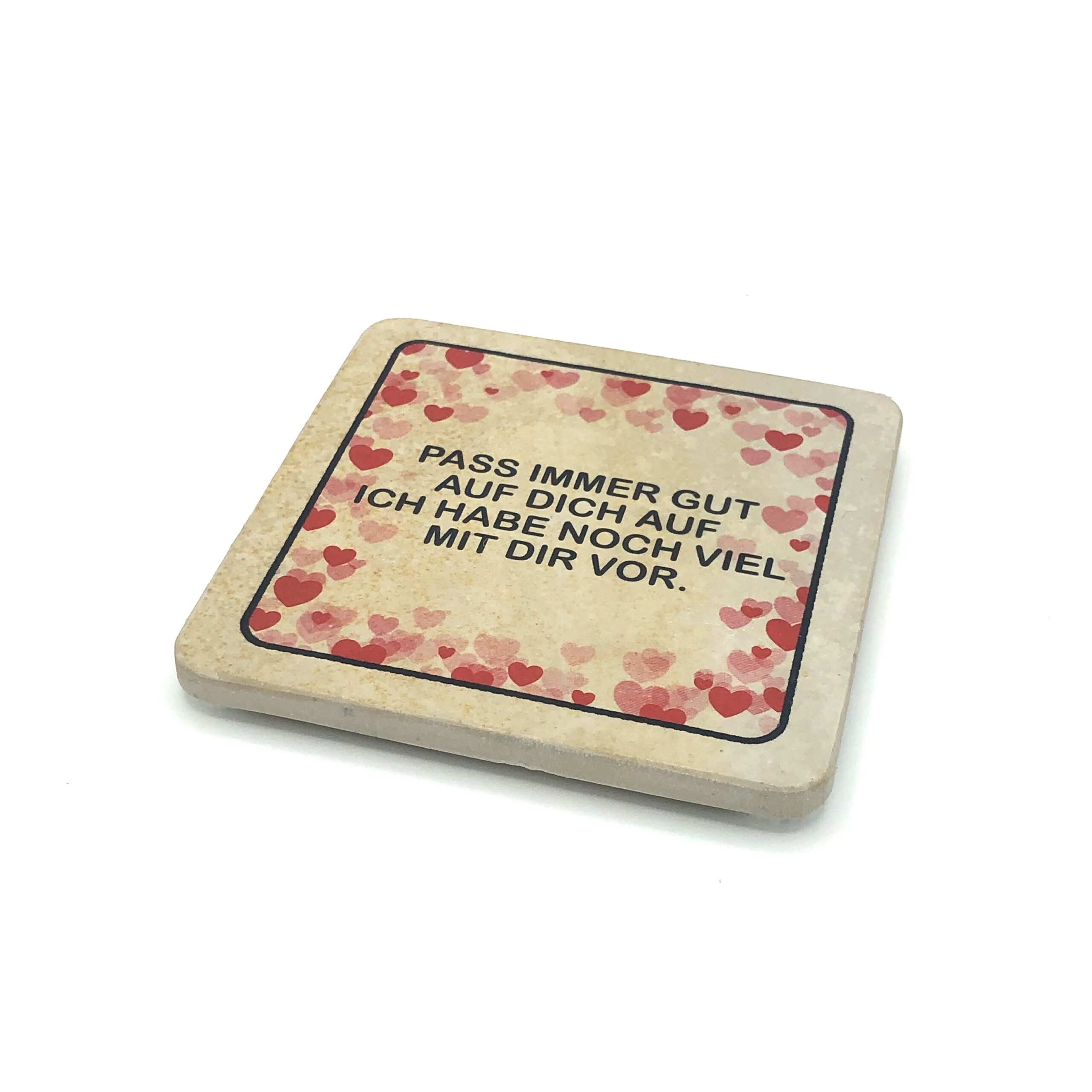 Fanartikel Steinuntersetzer handgefertigt in Bayern, Natursteinuntersetzer aus Bayern, Regional hergestellte Steinbierdeckel, rein biologischer Solnhofer Naturstein, nachhaltiger Glasuntersetzer, multifunktionales Wohnaccessoire, praktisch beschichtet, daher gesundheitlich unbedenklich, Mit Filzgleitern auf der Unterseite ausgestattet um Kratzer auf Oberflächen zu vermeiden. Alternative zu Bierdeckel Valentinstag